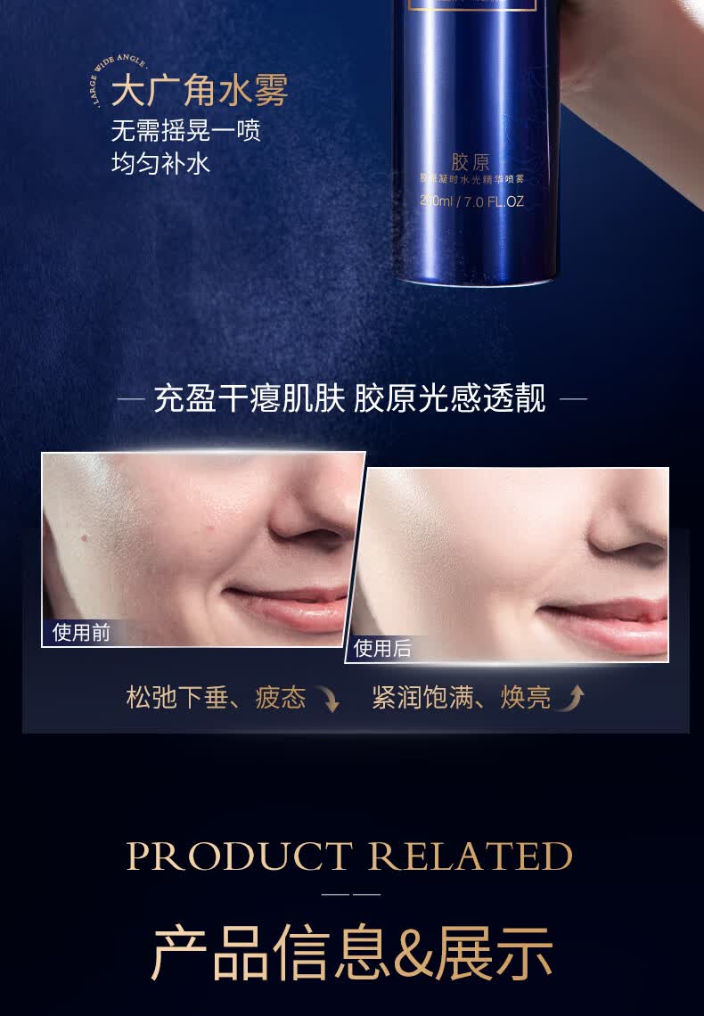 梦希蓝胶原补水精华喷雾细纹抗皱紧致抗衰老护肤品保湿爽肤水喷雾男女士 1瓶【升级款】 200ml 深度补水99.9