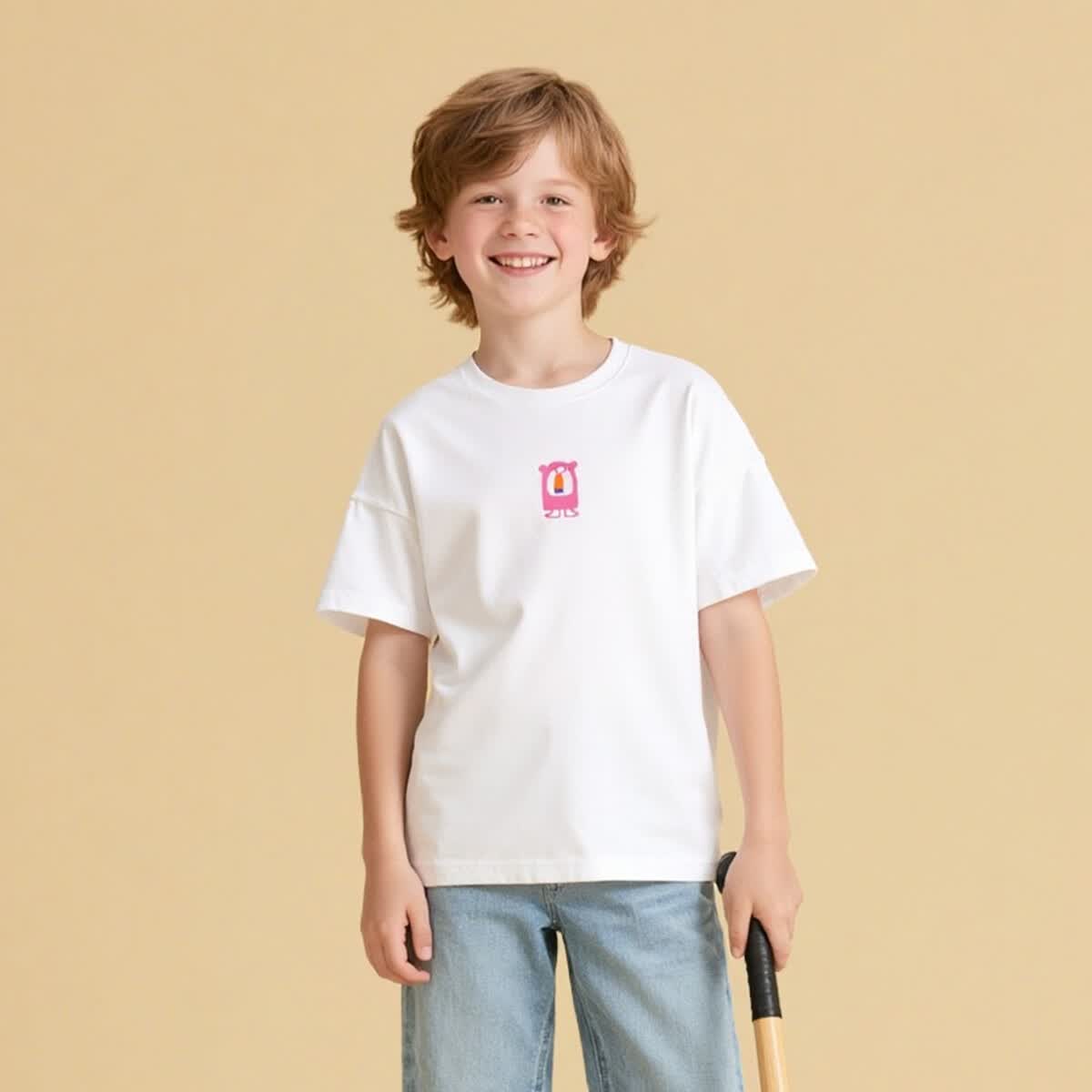 马骑顿(MQD)童装男女同款短袖T恤夏季儿童潮酷短袖T恤 白色 本白 120
