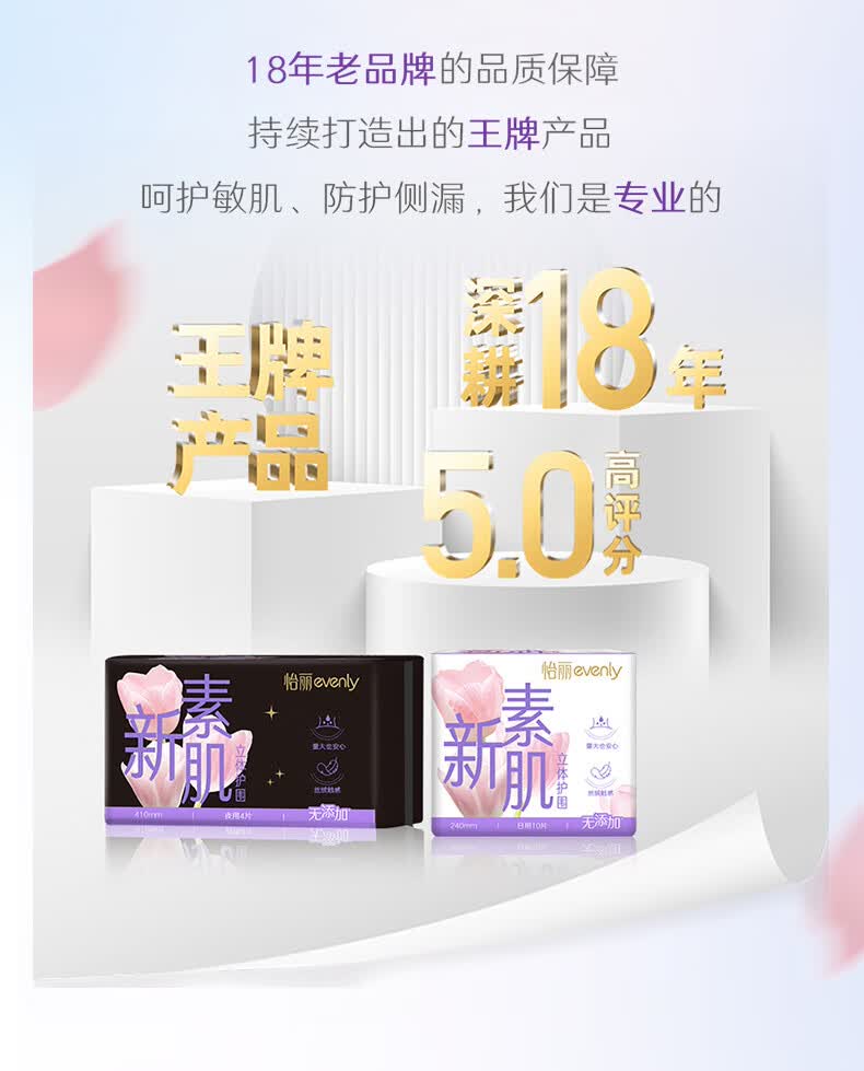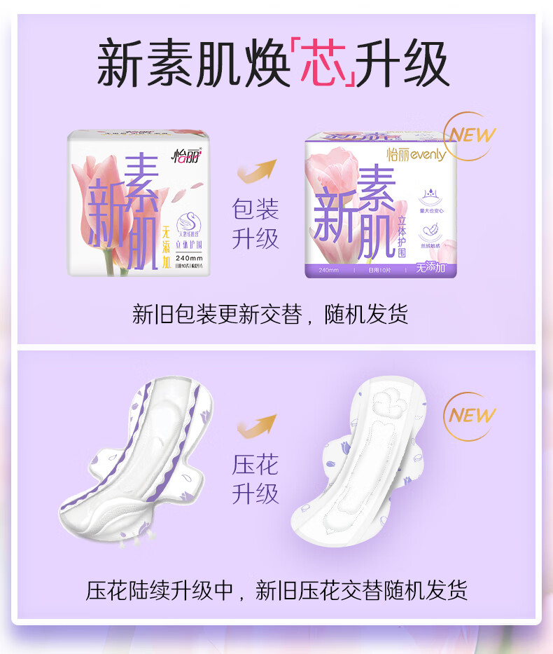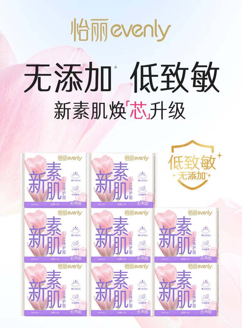 怡丽医护级卫生巾套装棉柔整箱日用组合240mm80片京东自营姨妈巾