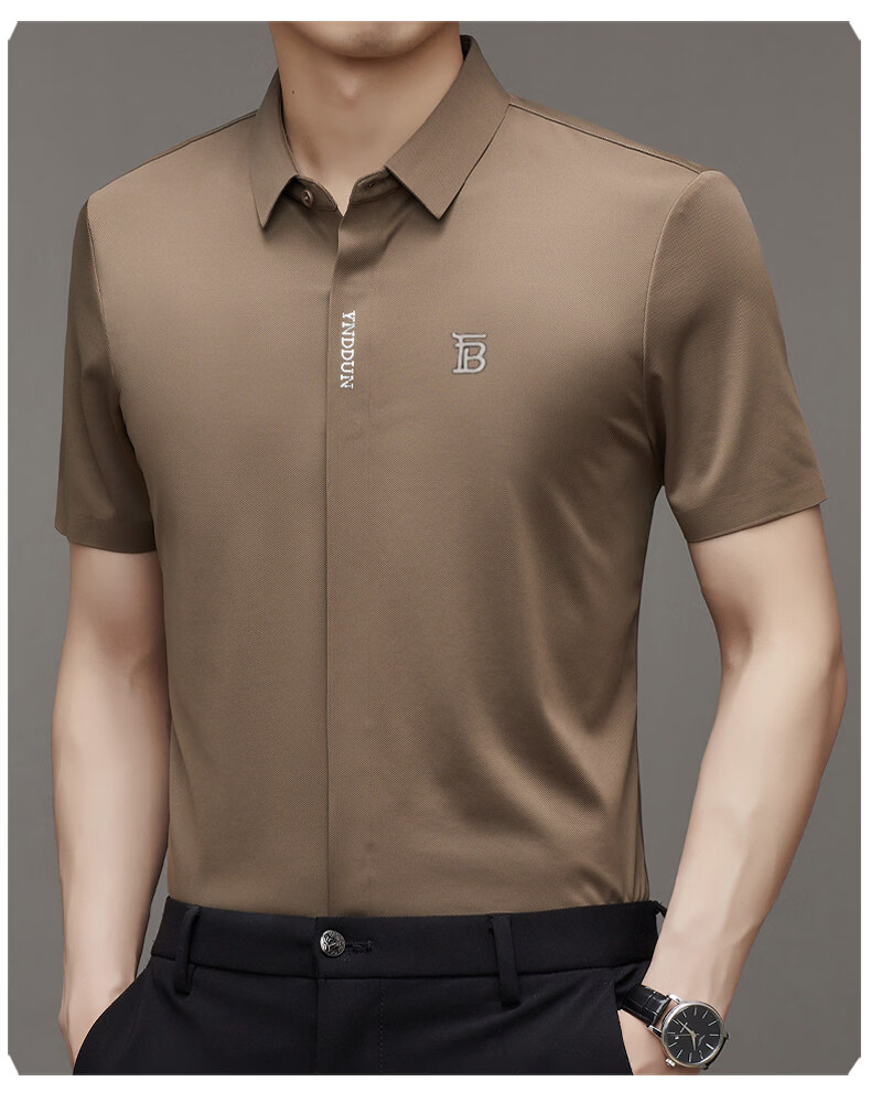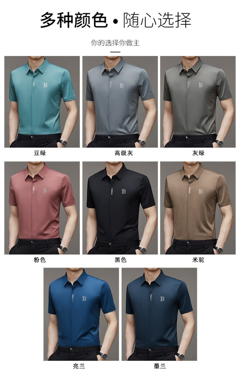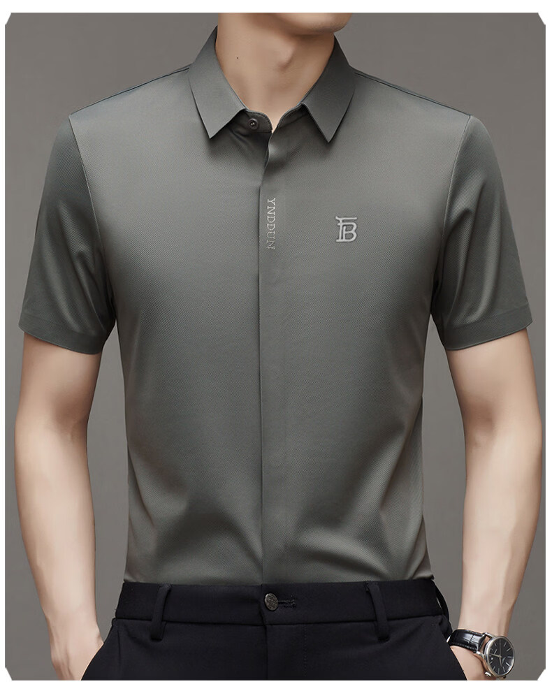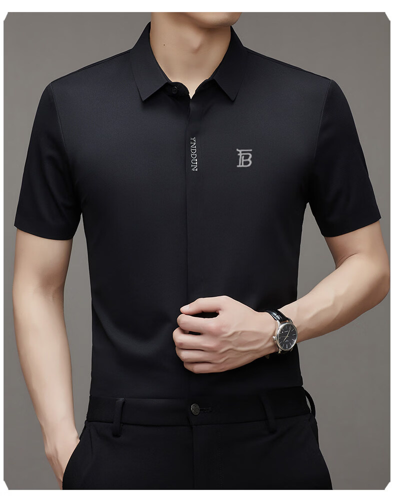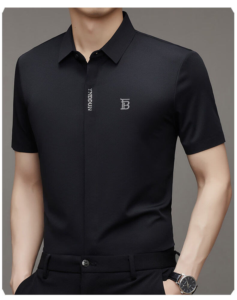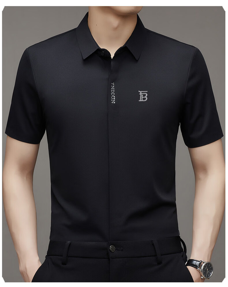 B PRORSUM巴宝莉正品高端短袖衬衫男士夏季桑蚕丝感商务休闲免烫衬衣男刺绣 十大奢侈品男装黑色 M 165__建议体重100-119斤