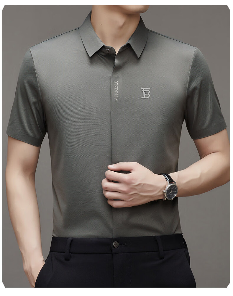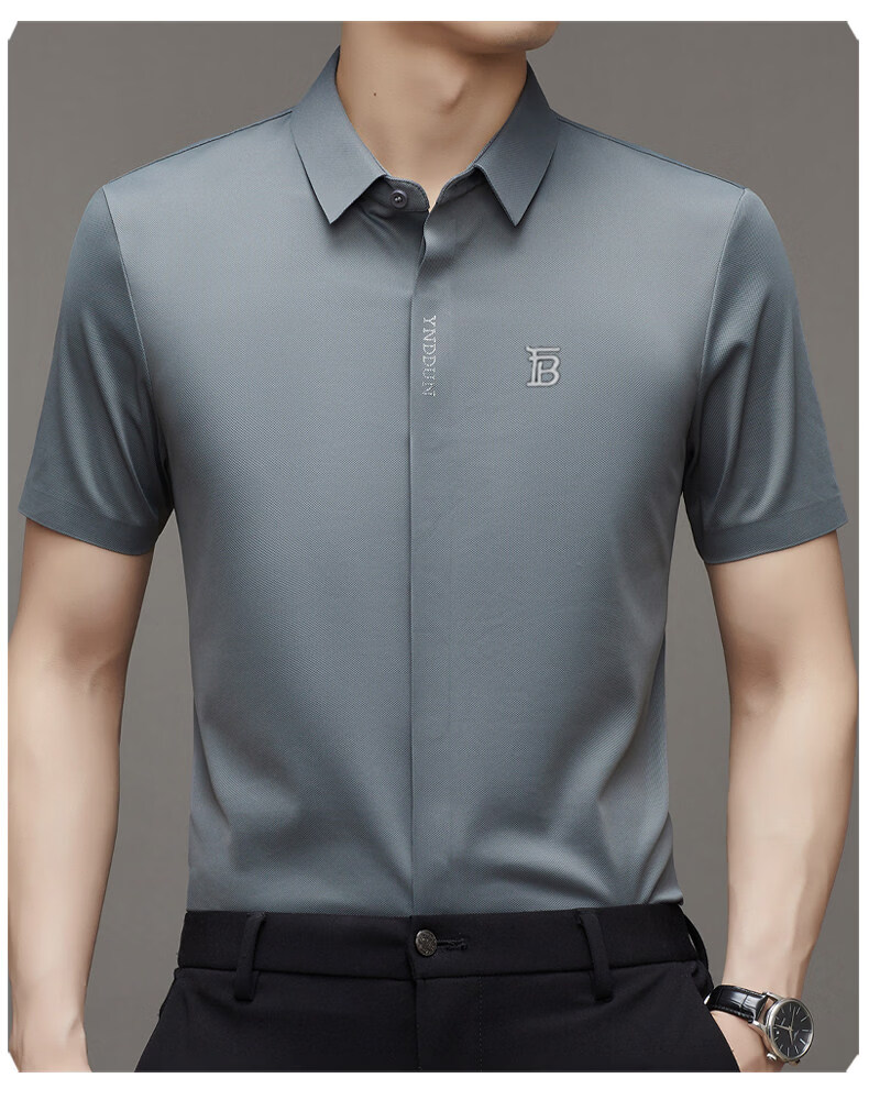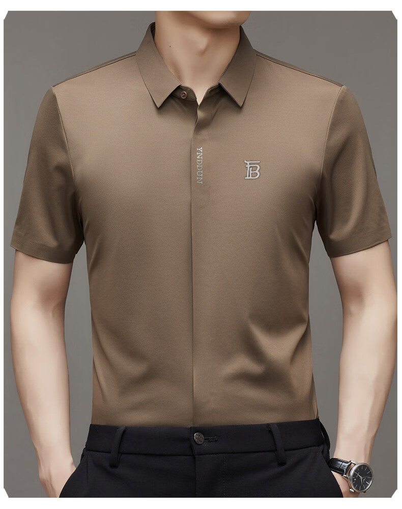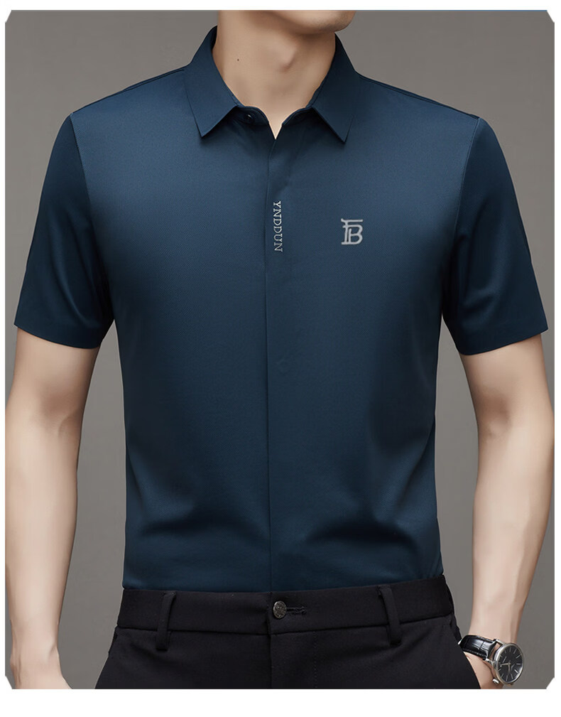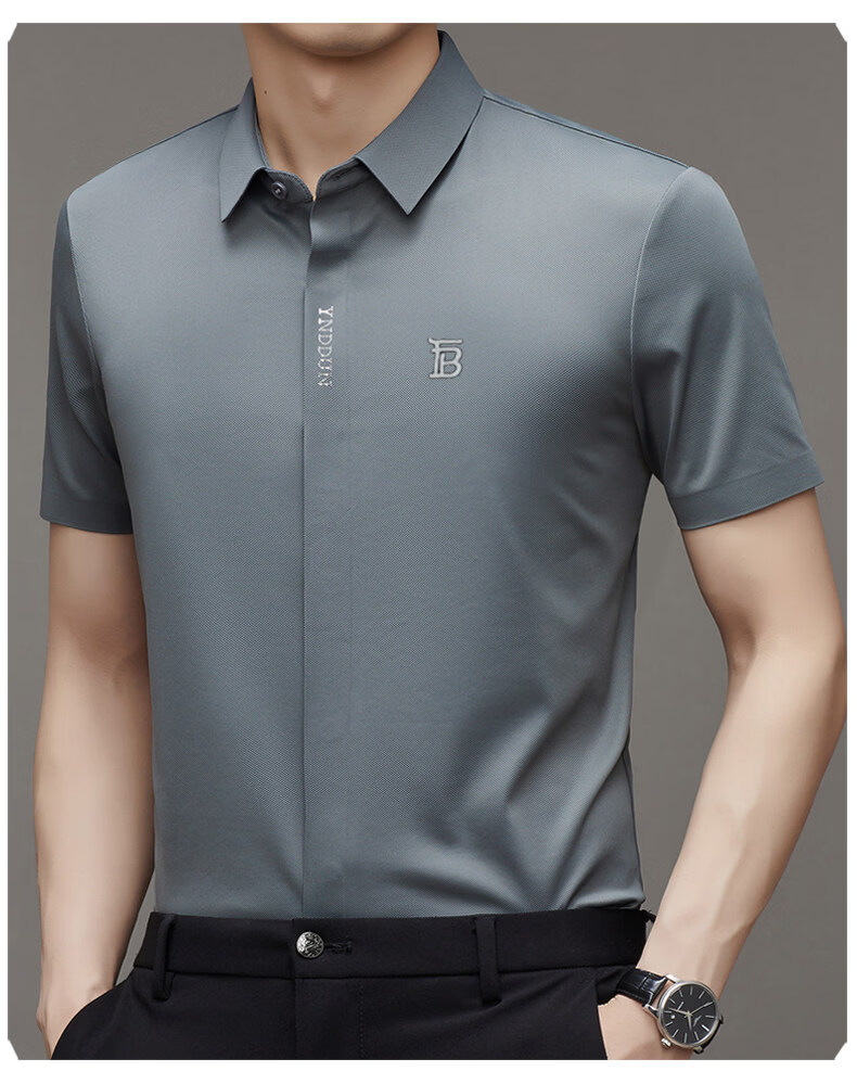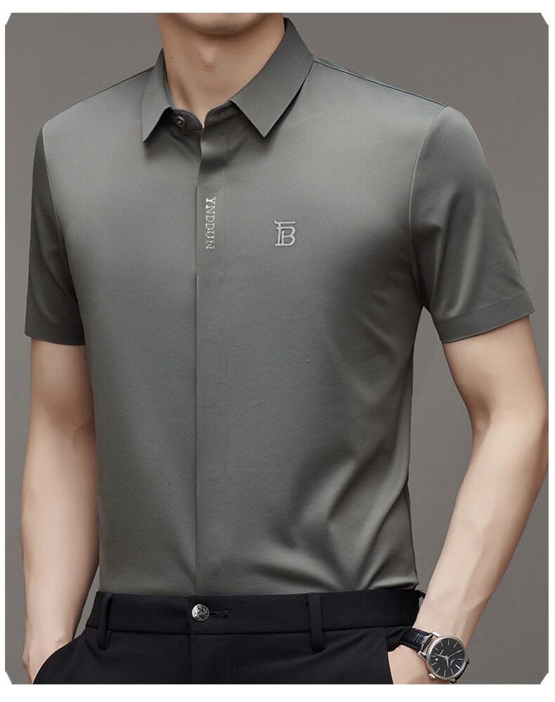 B PRORSUM巴宝莉正品高端短袖衬衫男士夏季桑蚕丝感商务休闲免烫衬衣男刺绣 十大奢侈品男装黑色 M 165__建议体重100-119斤