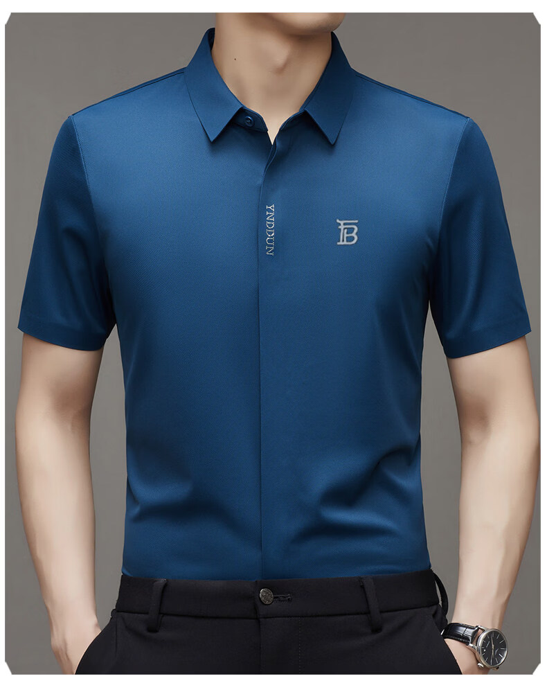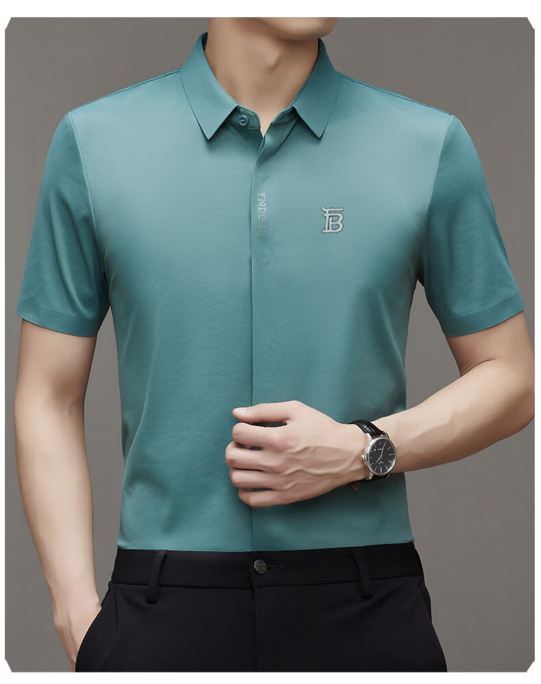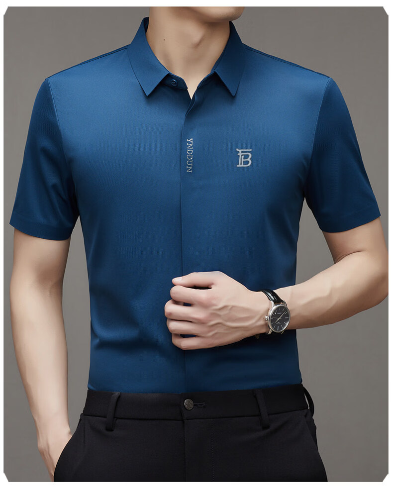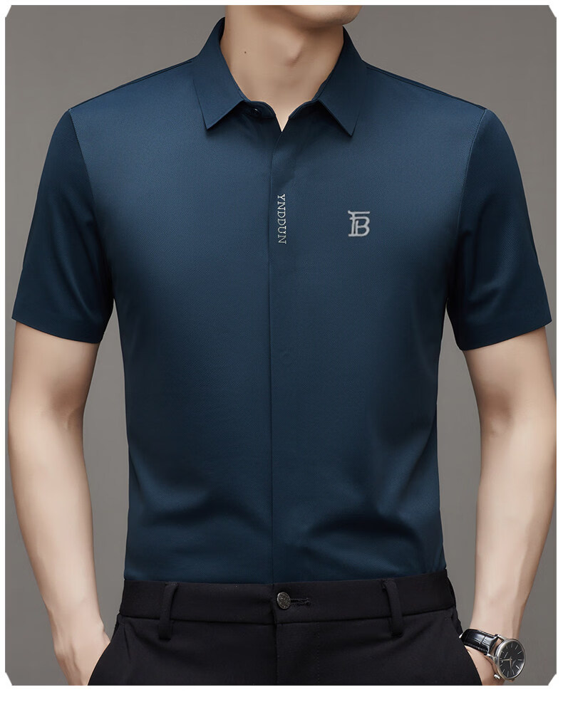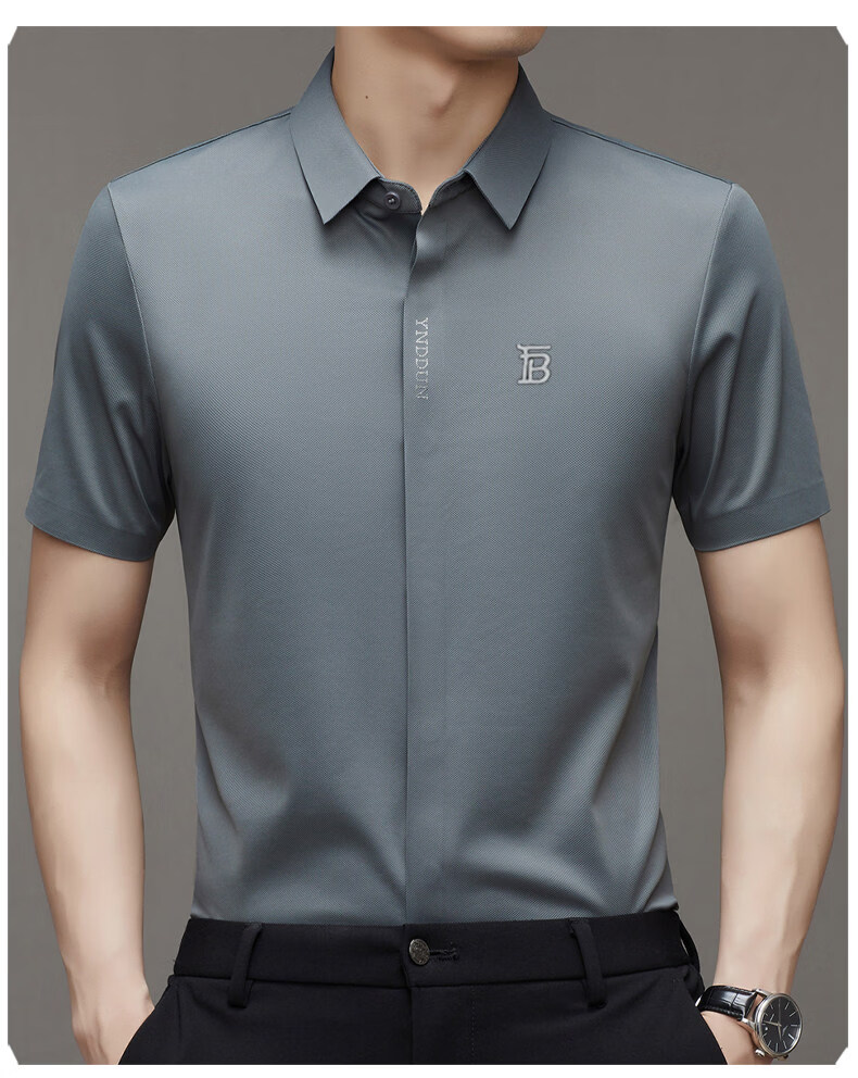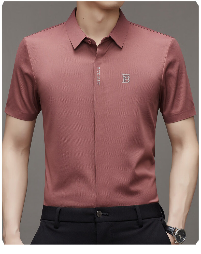 B PRORSUM巴宝莉正品高端短袖衬衫男士夏季桑蚕丝感商务休闲免烫衬衣男刺绣 十大奢侈品男装黑色 M 165__建议体重100-119斤