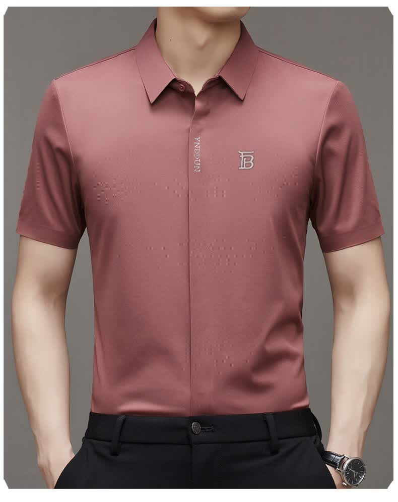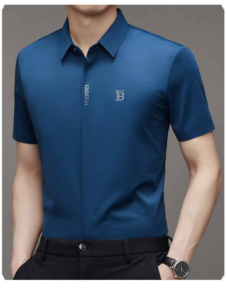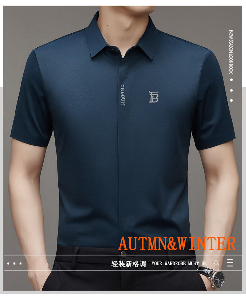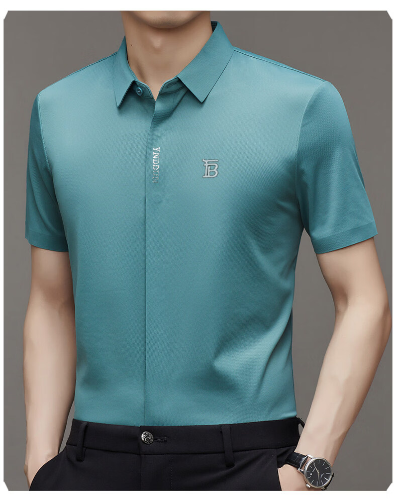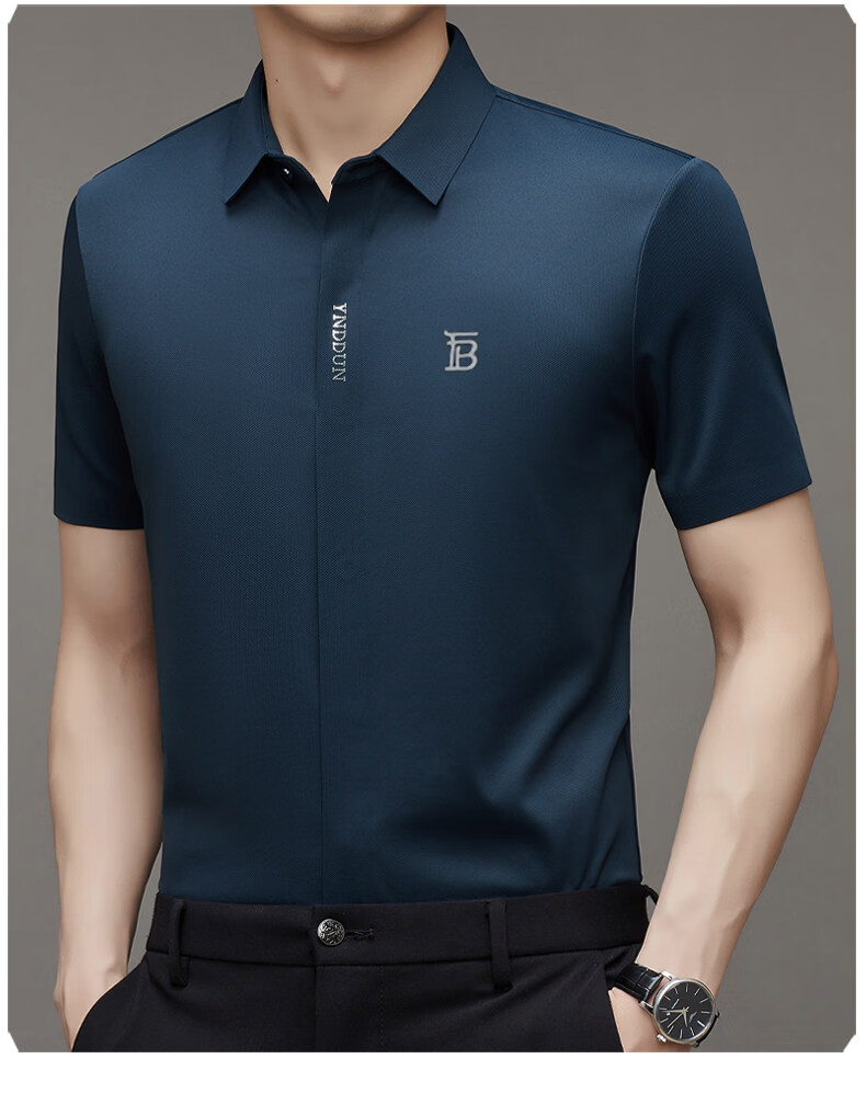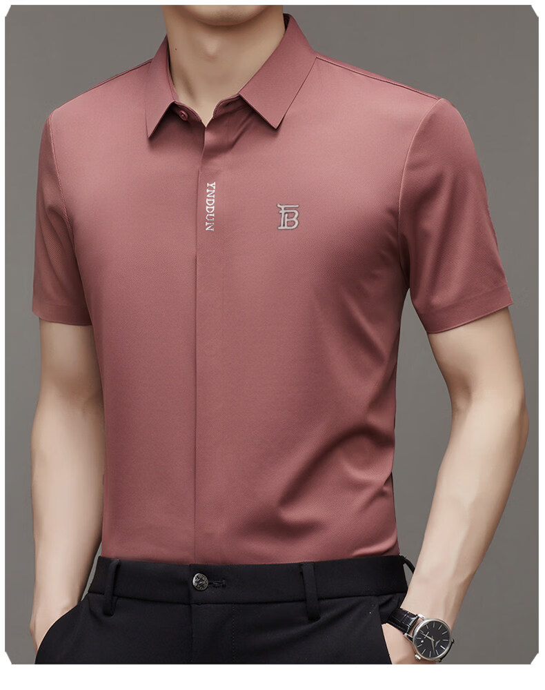 B PRORSUM巴宝莉正品高端短袖衬衫男士夏季桑蚕丝感商务休闲免烫衬衣男刺绣 十大奢侈品男装黑色 M 165__建议体重100-119斤