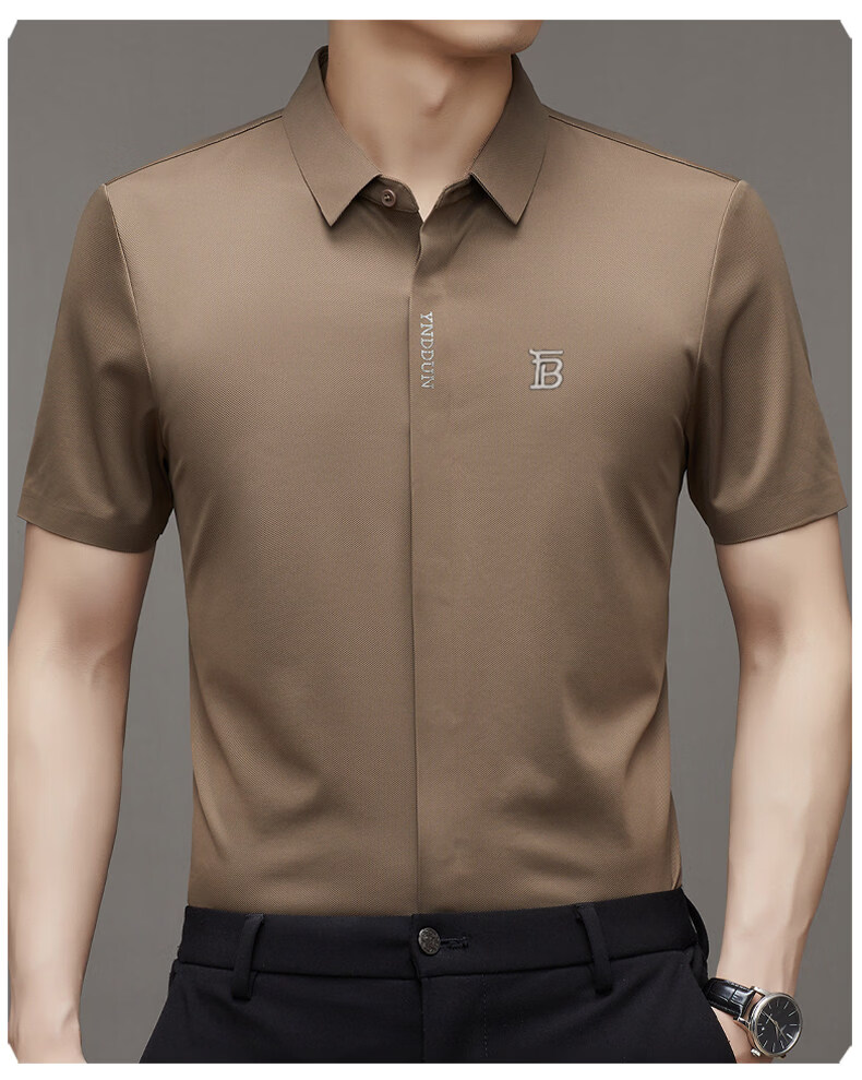 FEAE官方品牌纯棉100%短袖t恤男2026春夏款刺绣冰丝高端商务休闲上衣 咖啡色 厚款 【宽松落肩大码款】-官方正品 4XL 码【建议170-185斤】