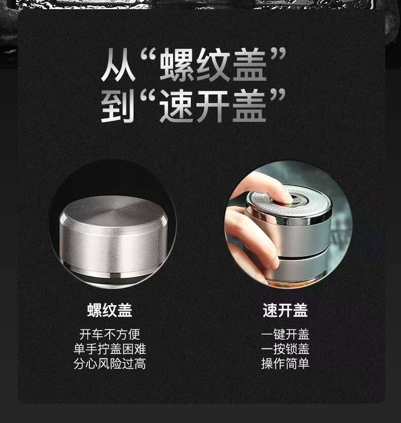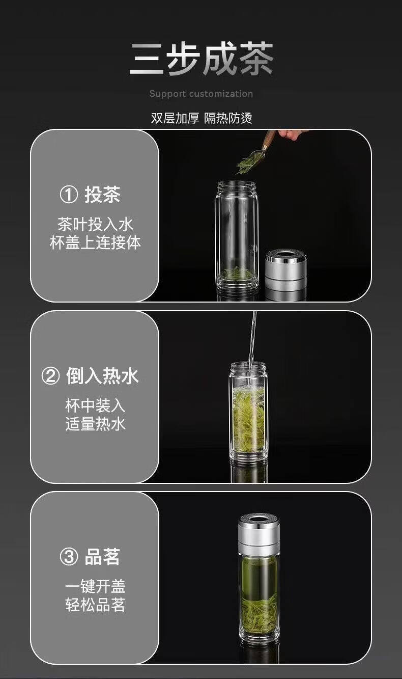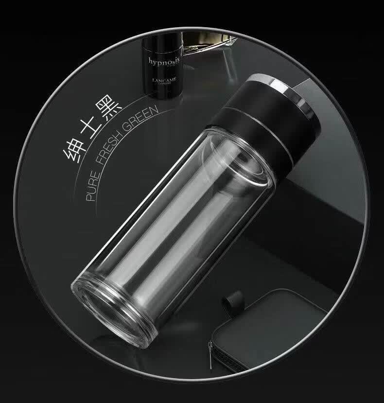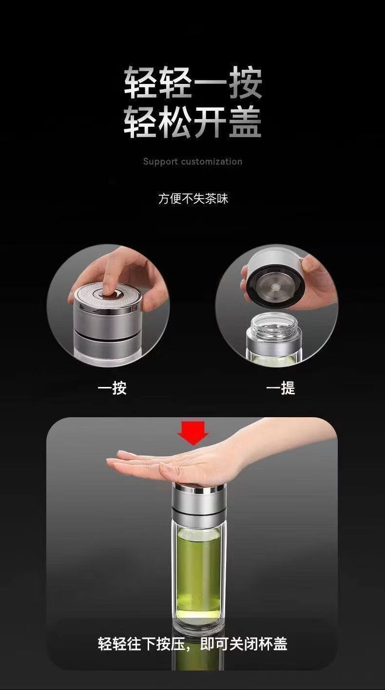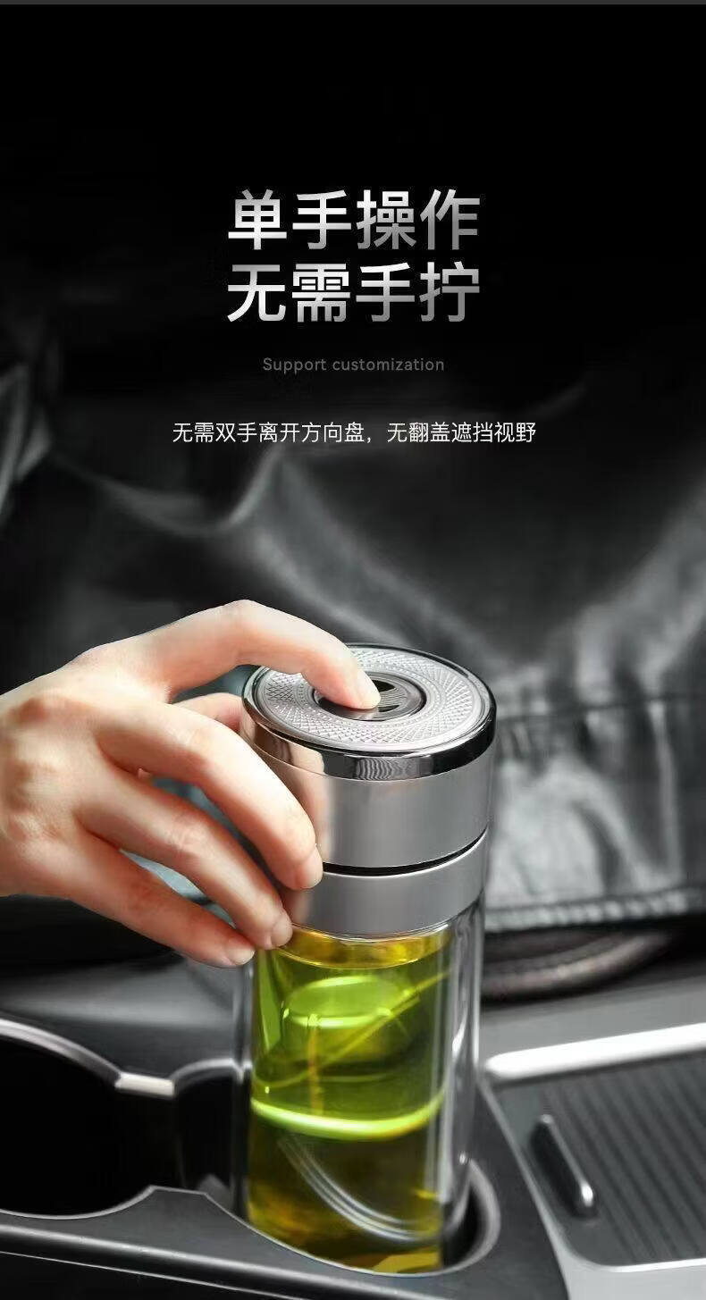 双层玻璃杯一键开盖车载双层玻璃杯男士办公室保温水杯茶杯速开启 350ml黑色【速开双层加厚防爆防漏加茶漏】
