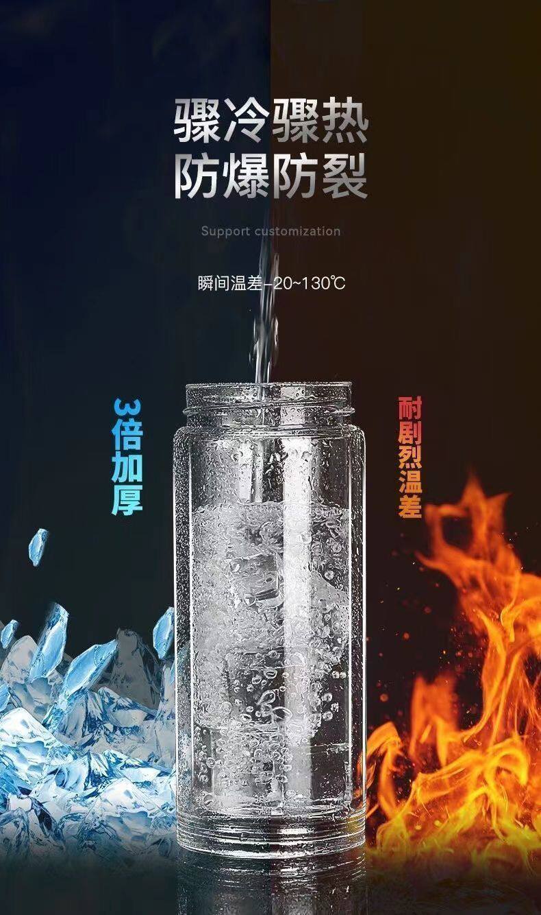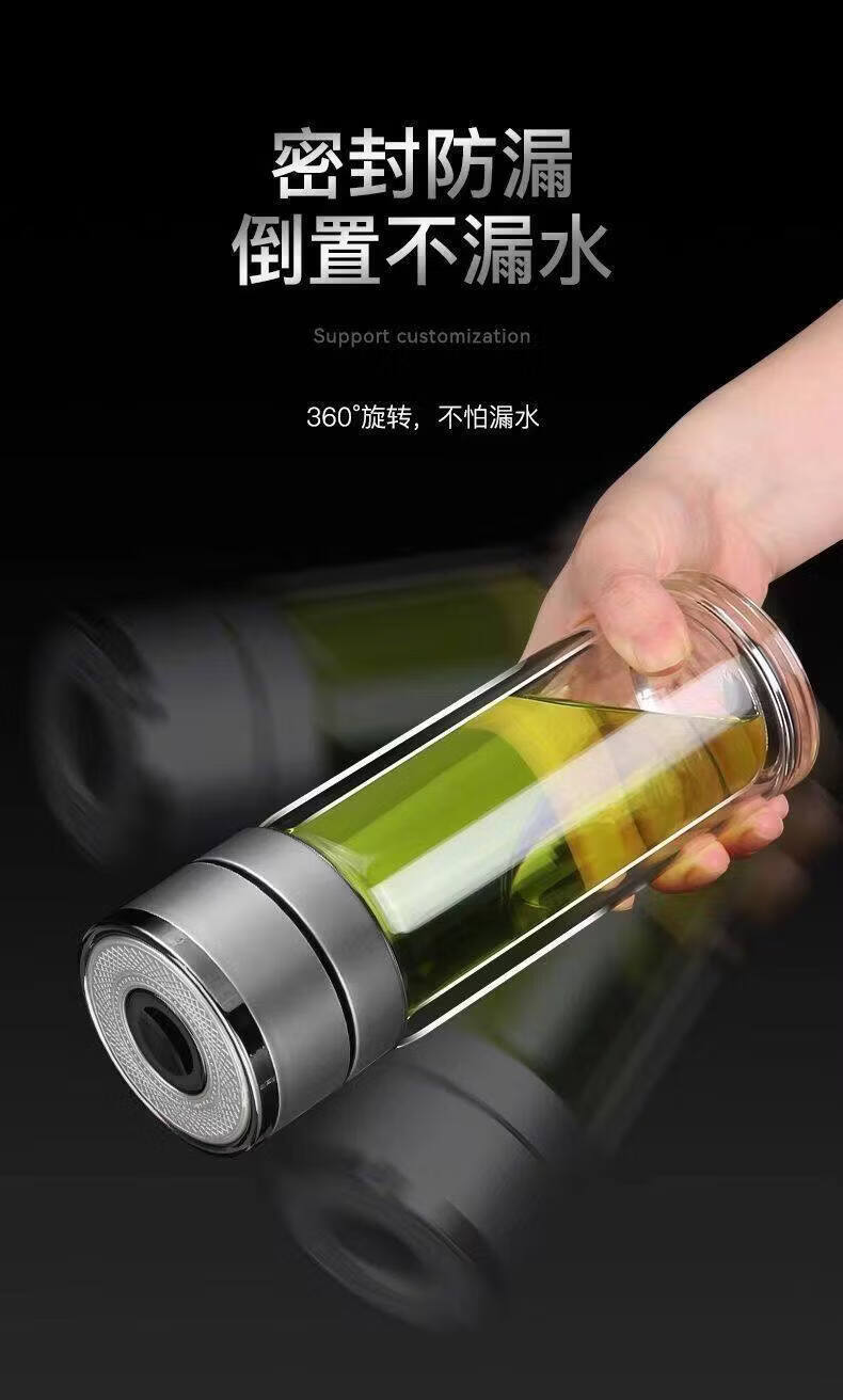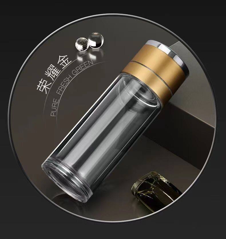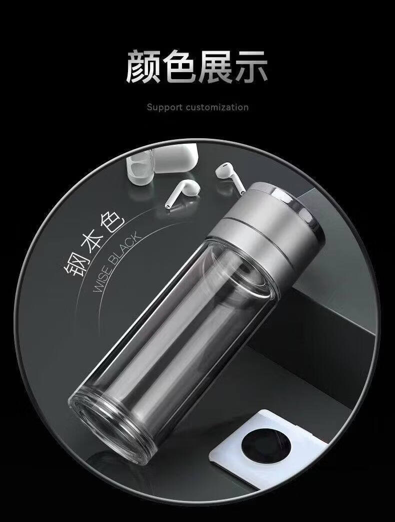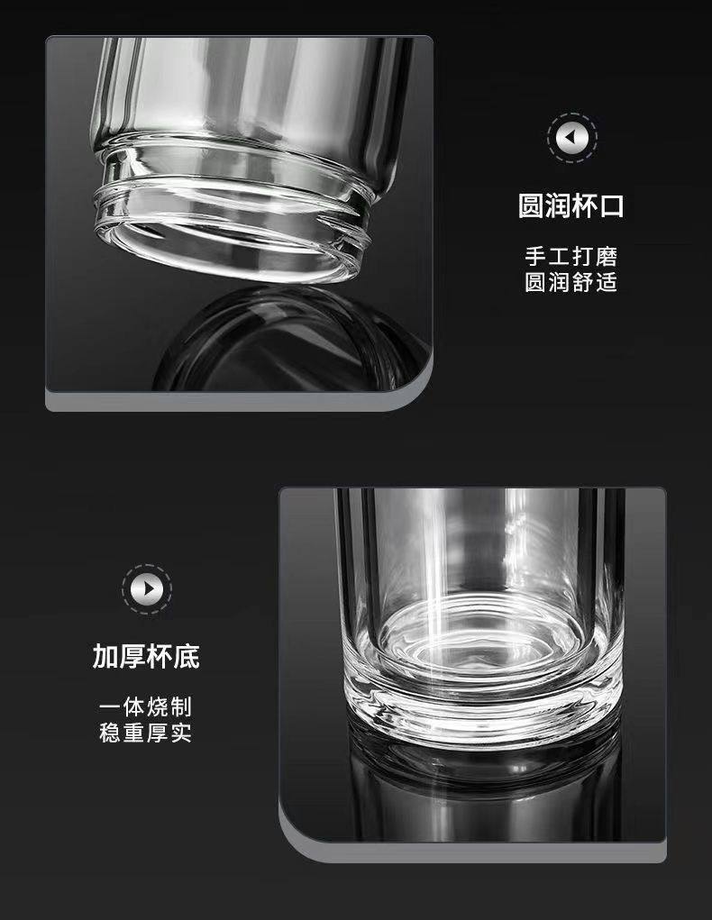 双层玻璃杯一键开盖车载双层玻璃杯男士办公室保温水杯茶杯速开启 350ml黑色【速开双层加厚防爆防漏加茶漏】