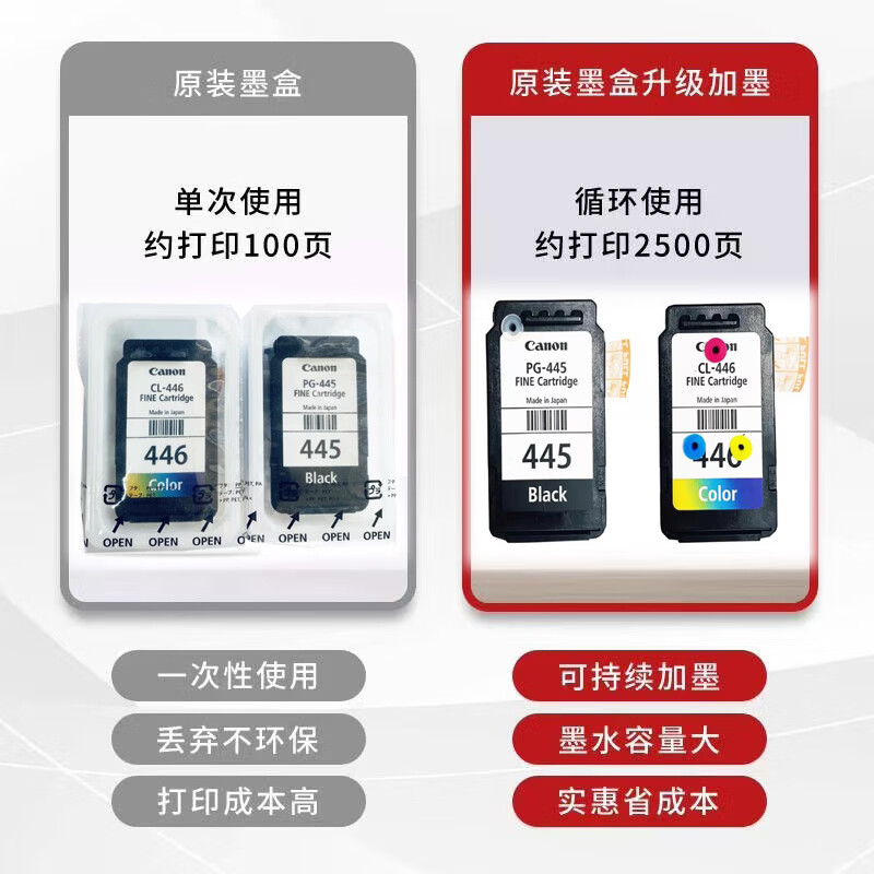 适用原装佳能445 446墨盒MG2540s TS3140 3440 4640 TS3640打印机 黑色445墨盒打孔在中间