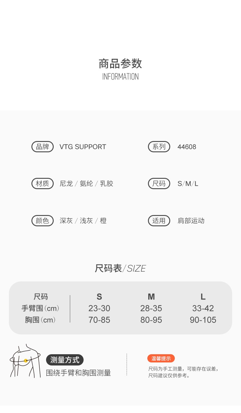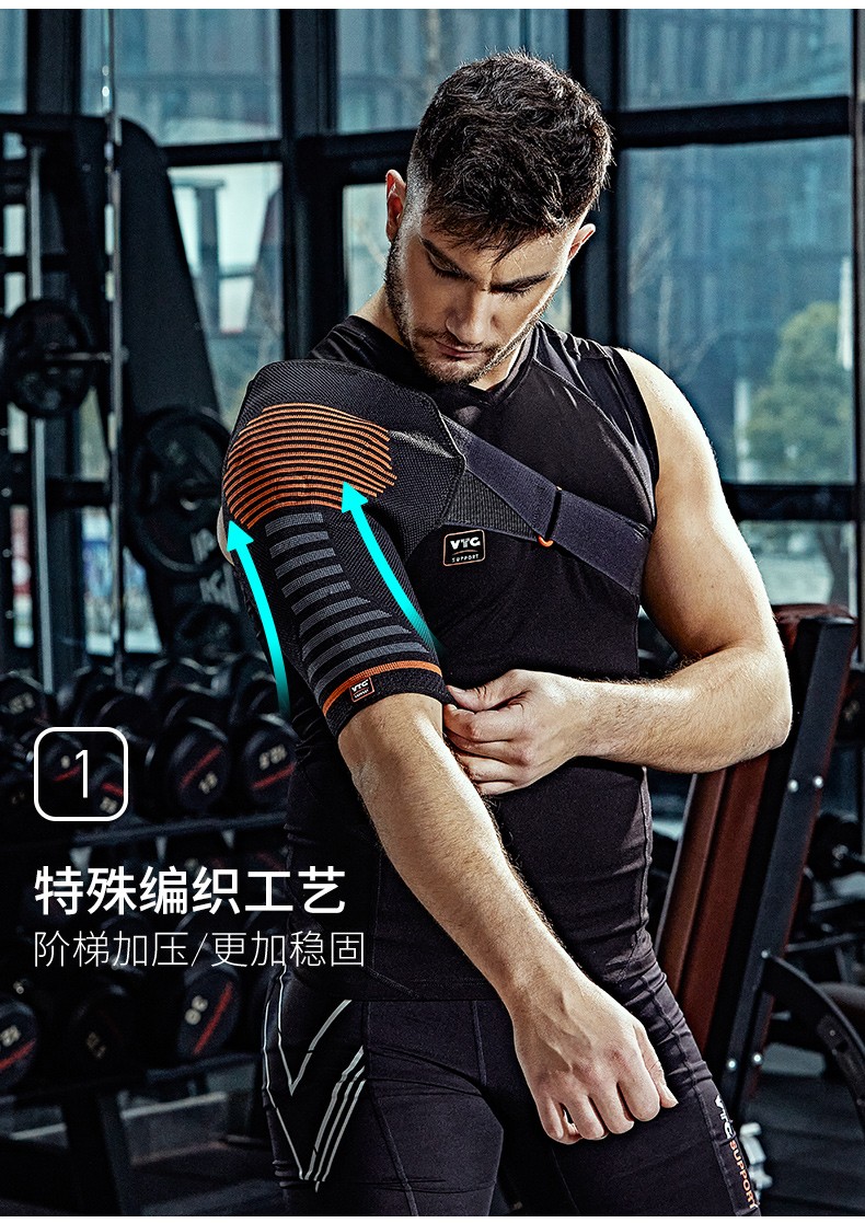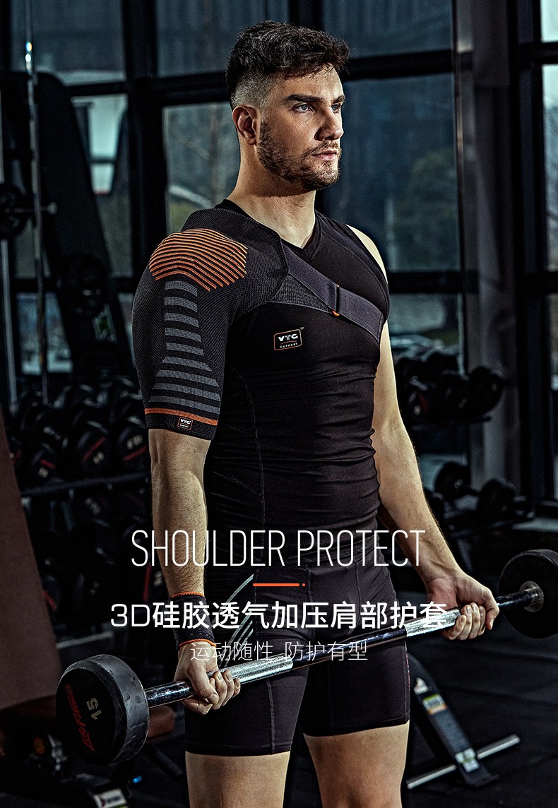 VTG SUPPORT美国VTG运动护肩男女篮球羽毛球健身胳膊单肩周炎防脱臼固定绑带 3D针织加压硅胶-单只装 S码(胸围:70-85cm)