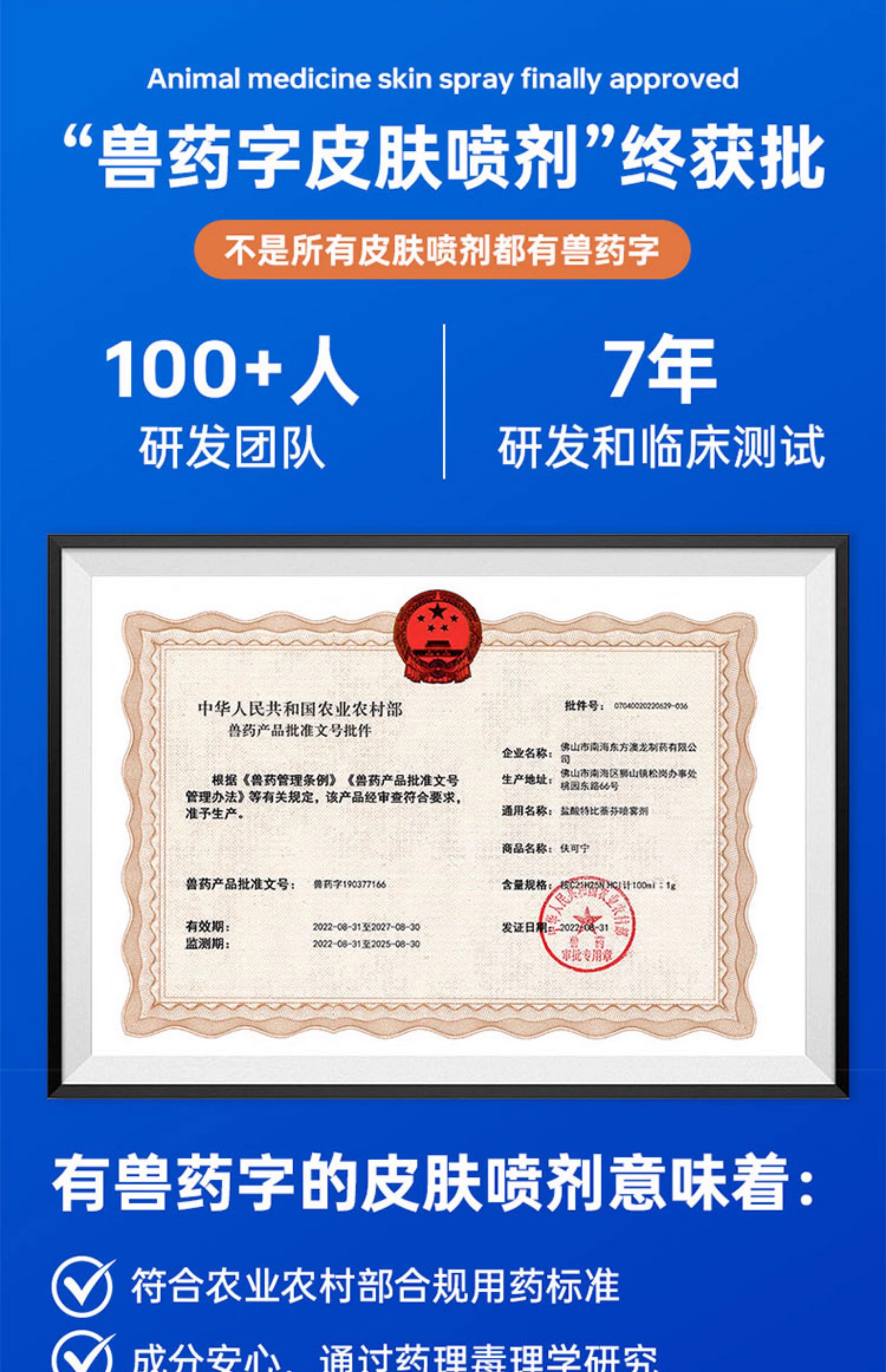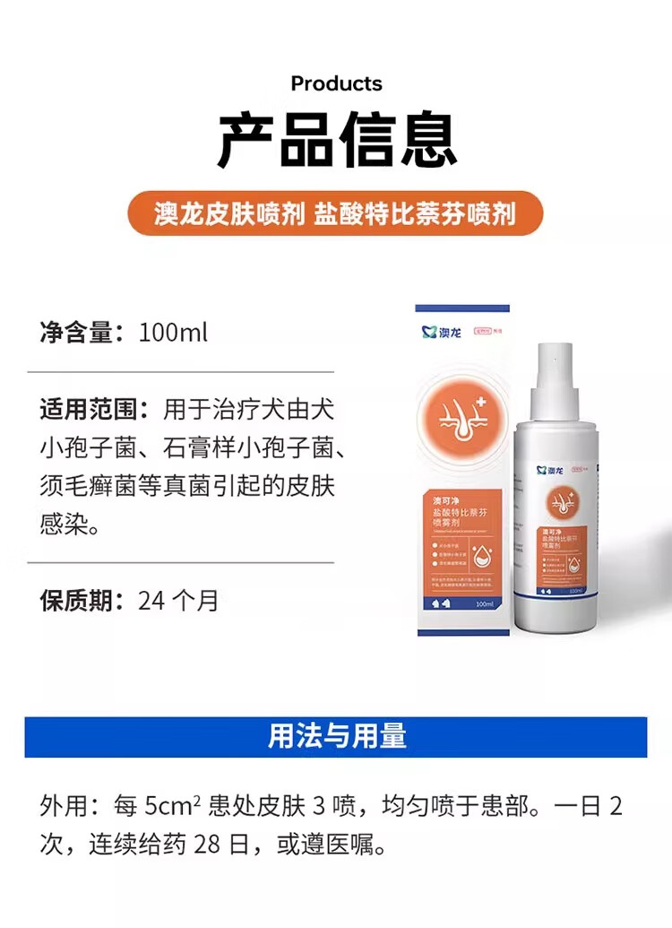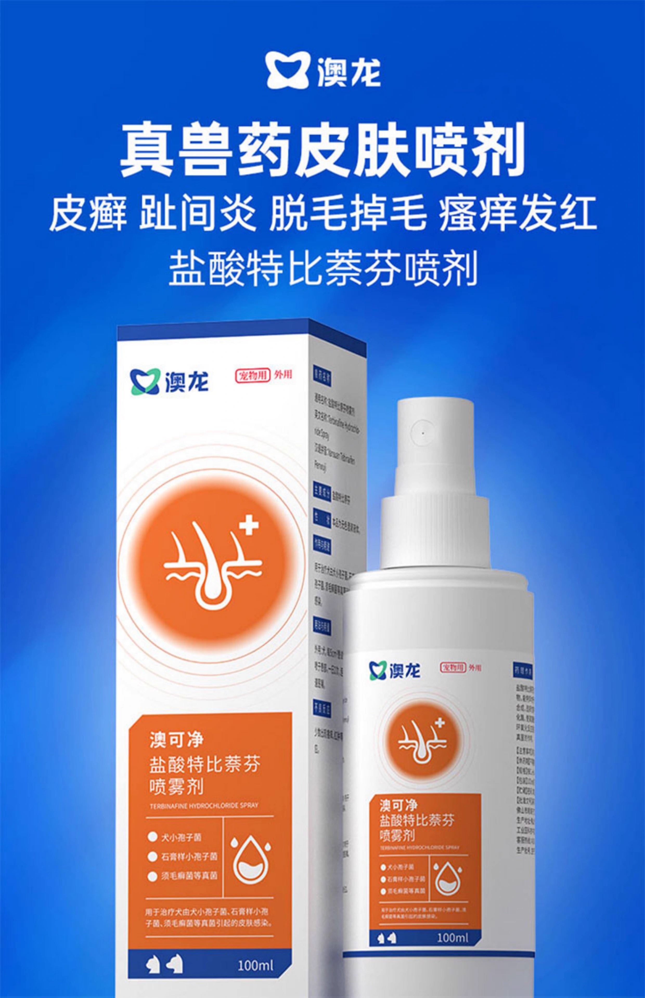 澳龙【顺丰】澳龙宠物盐酸特比萘芬喷雾剂狗狗猫咪真菌感染猫藓喷剂 100ml*1瓶