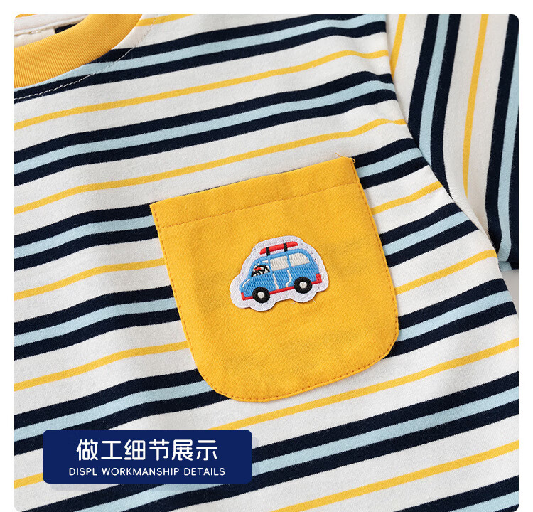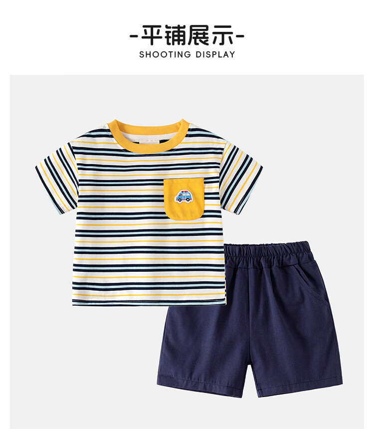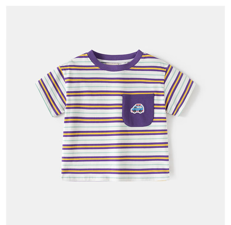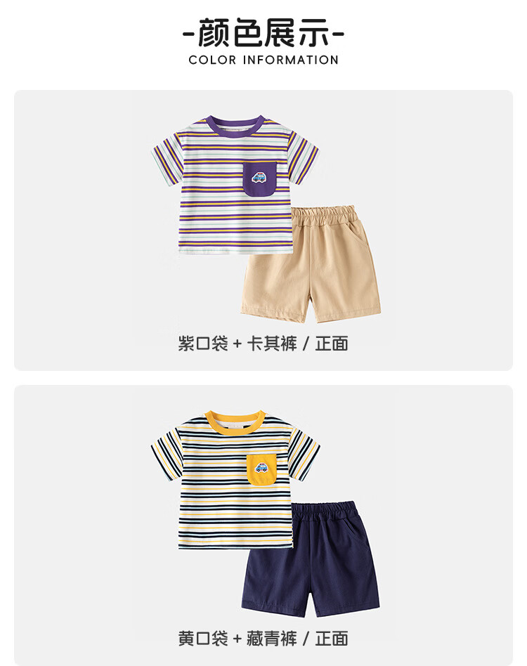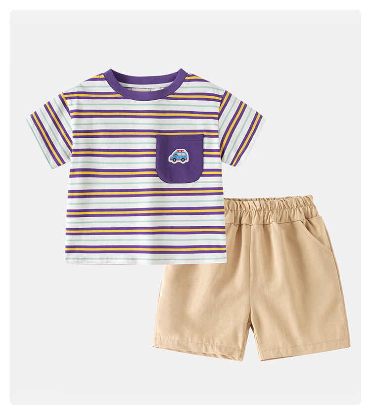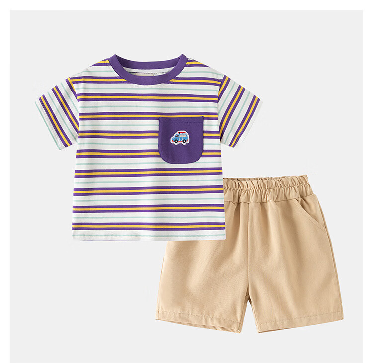 WELLKIDS男宝宝夏季透气纯棉衣服男童短袖短裤套装运动T恤上衣潮 紫口袋+卡其裤 90