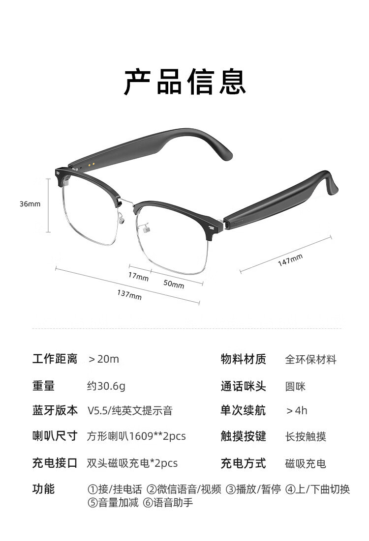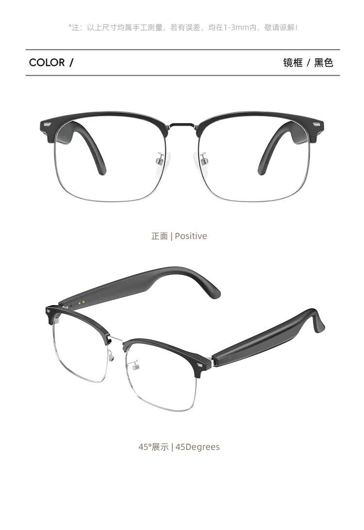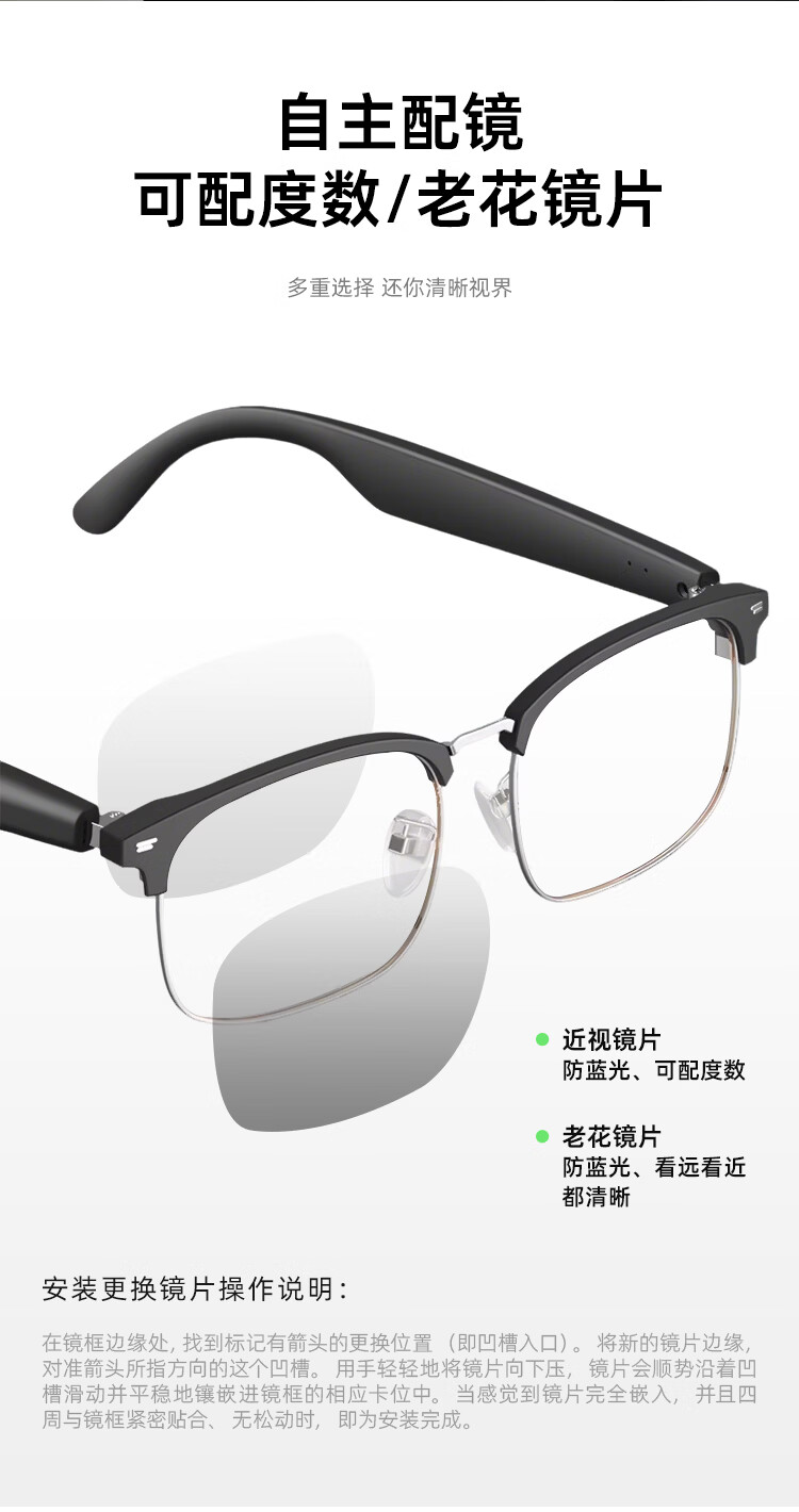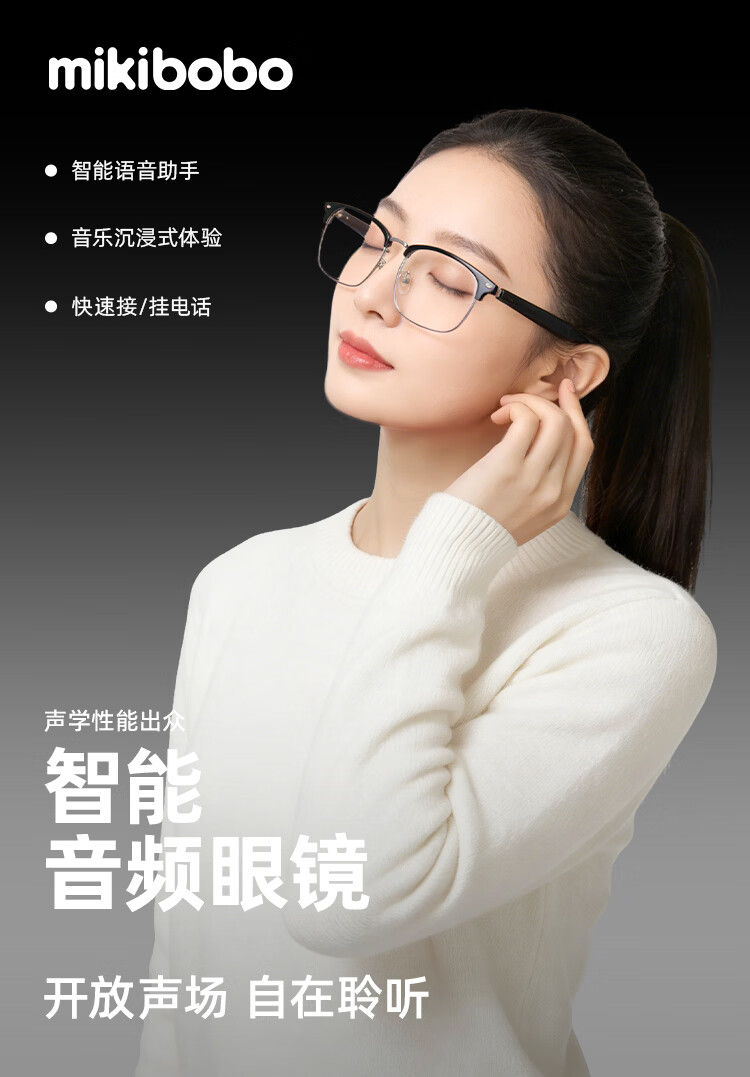 MIKIBOBOAI智能音频眼镜多功能无线蓝牙语音通话长续航【配镜】近视老花镜 无度数防蓝光镜片(平光镜) 升级版-眉框