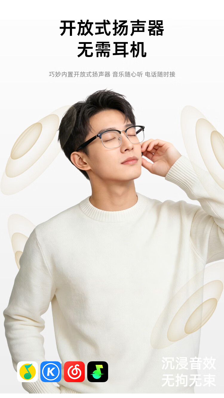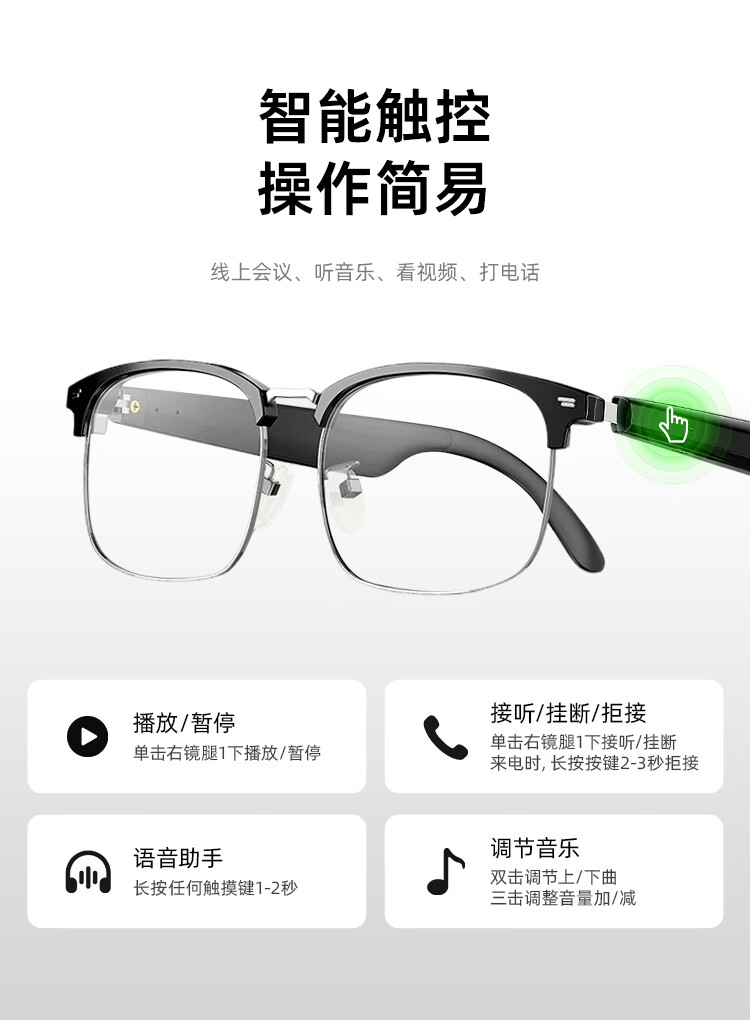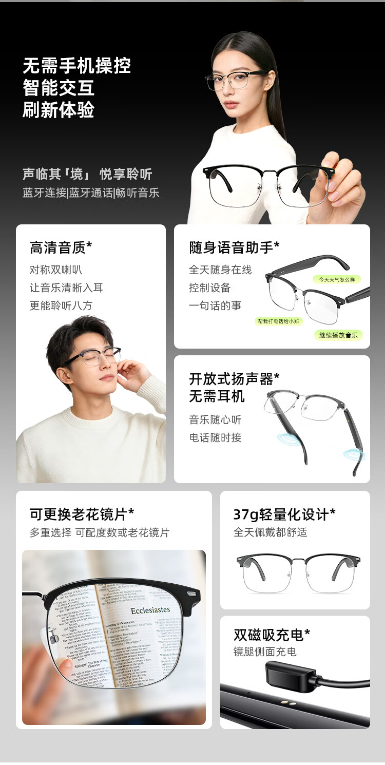 MIKIBOBOAI智能音频眼镜多功能无线蓝牙语音通话长续航【配镜】近视老花镜 无度数防蓝光镜片(平光镜) 升级版-眉框