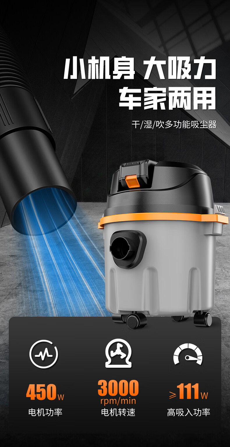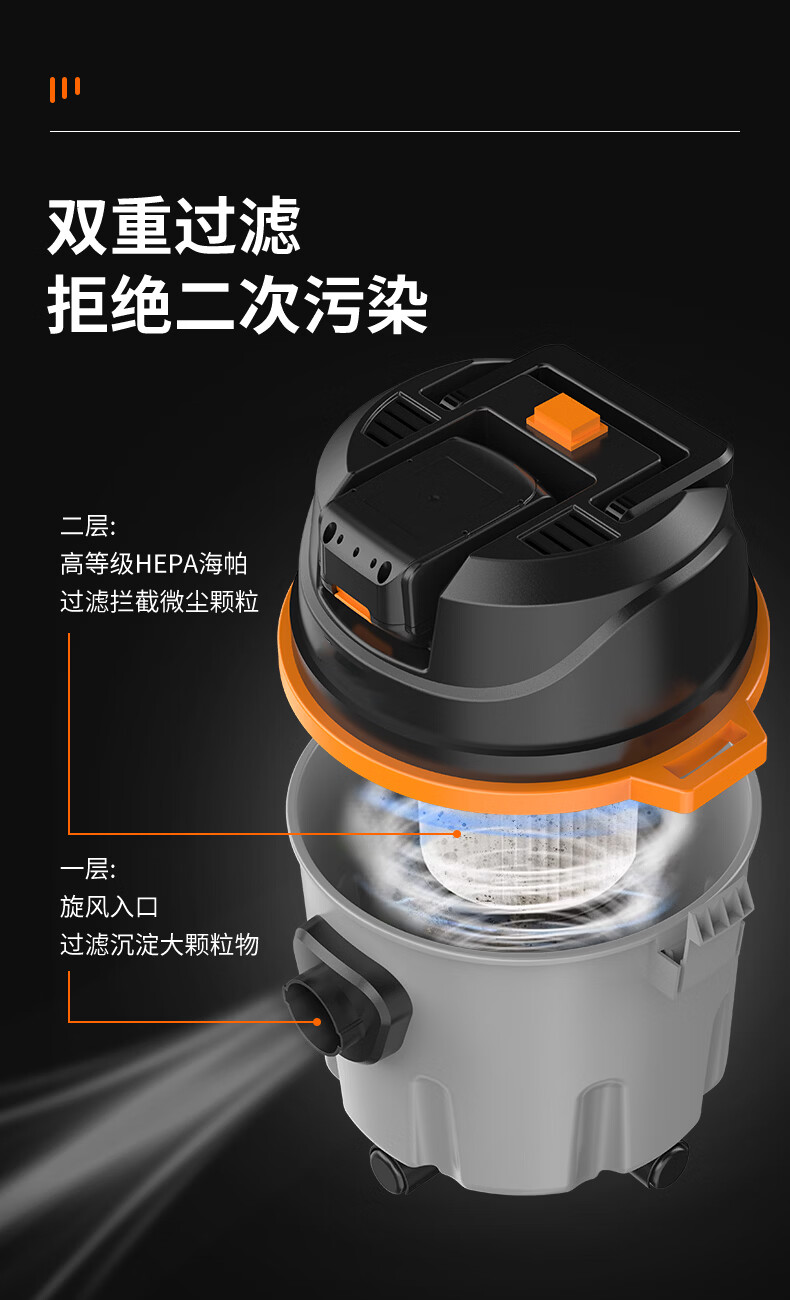 MOTOFEEL工业大吸力吸尘器商用无刷电机超大功率干湿两用开荒清洁洗车店美缝桶式吸粉尘机 桶式吸尘器【1电池1充电器】无刷电机