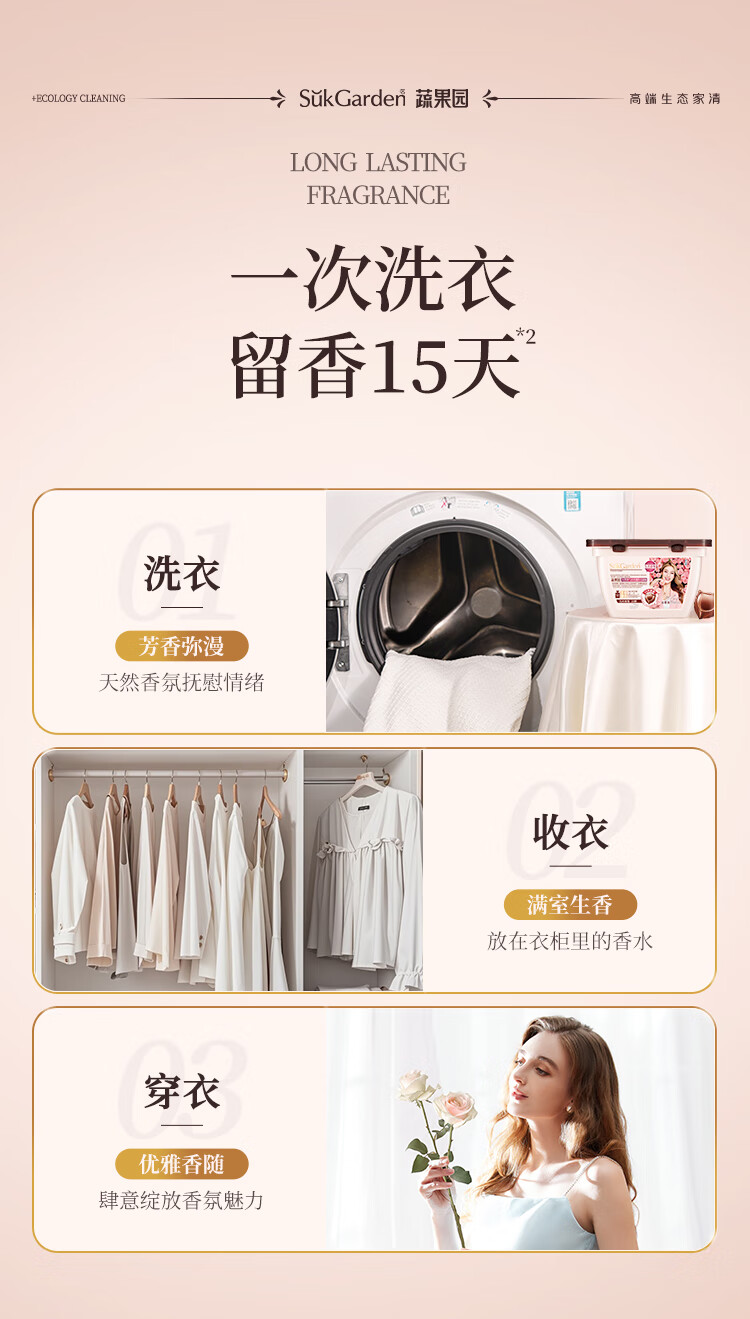 蔬果园乌木玫瑰洗衣凝珠持久留香除菌除螨柔顺护色洗衣液凝珠洗衣珠 乌木玫瑰凝珠50颗