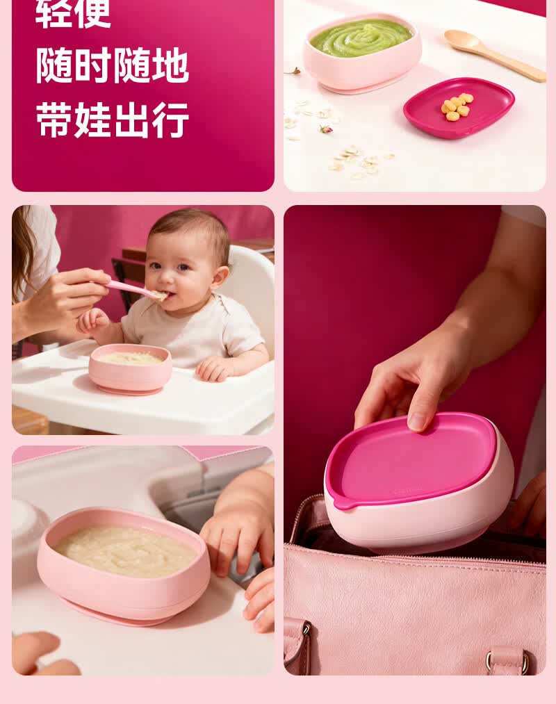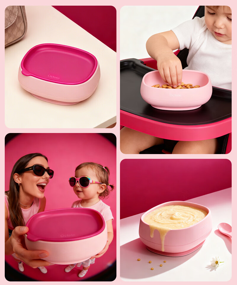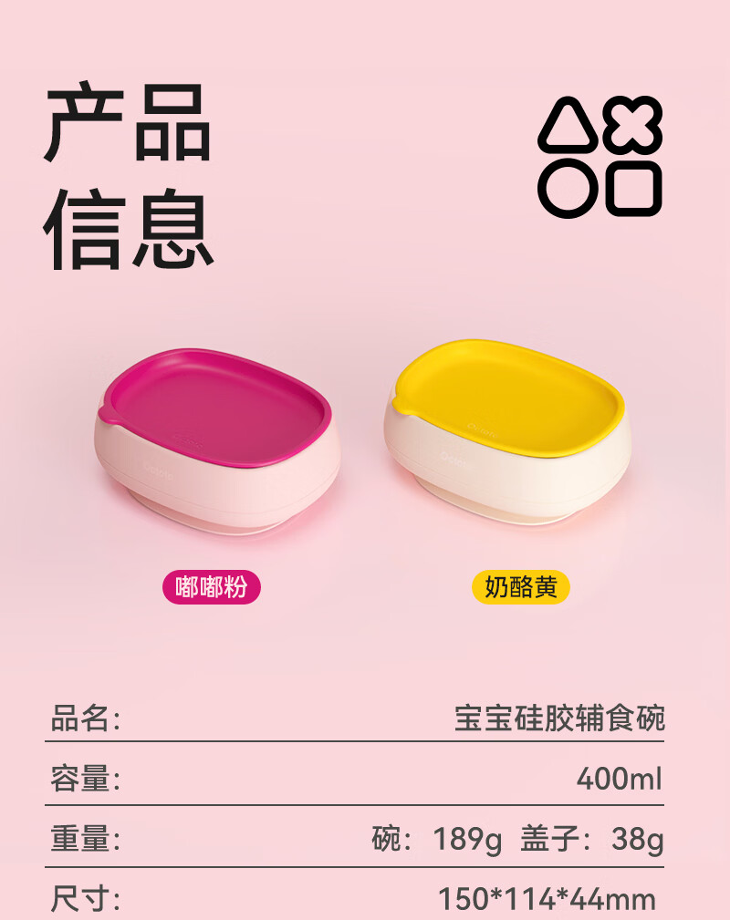 奥克兔兔(Octoto)婴儿辅食碗宝宝餐盘外出餐具便携式硅胶吸盘婴儿米糊碗宝宝碗 奶酪黄
