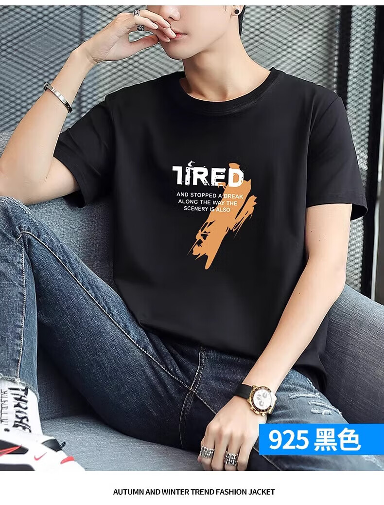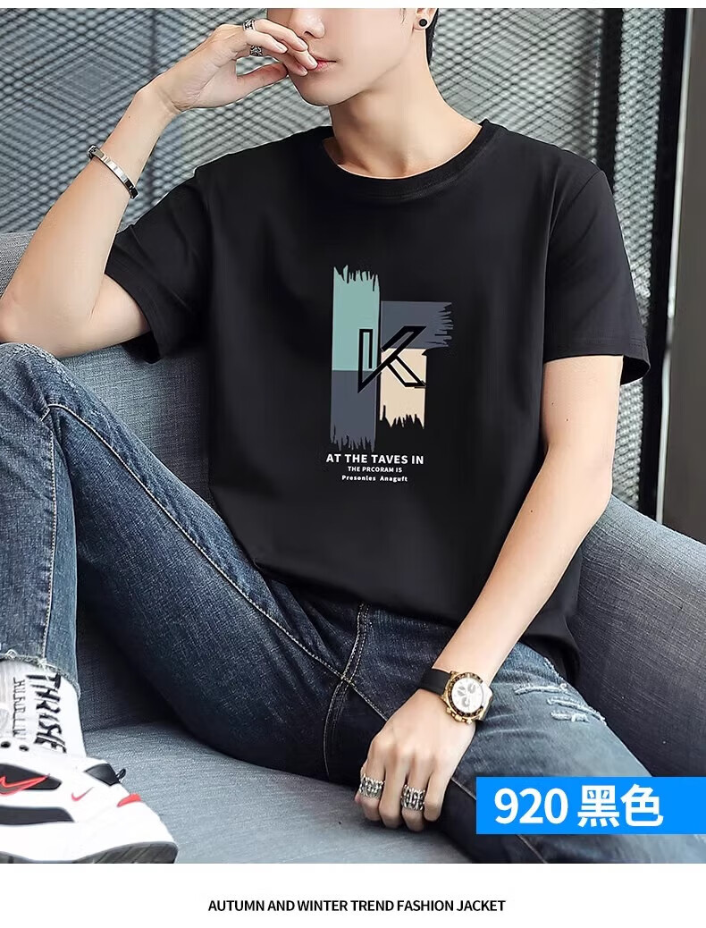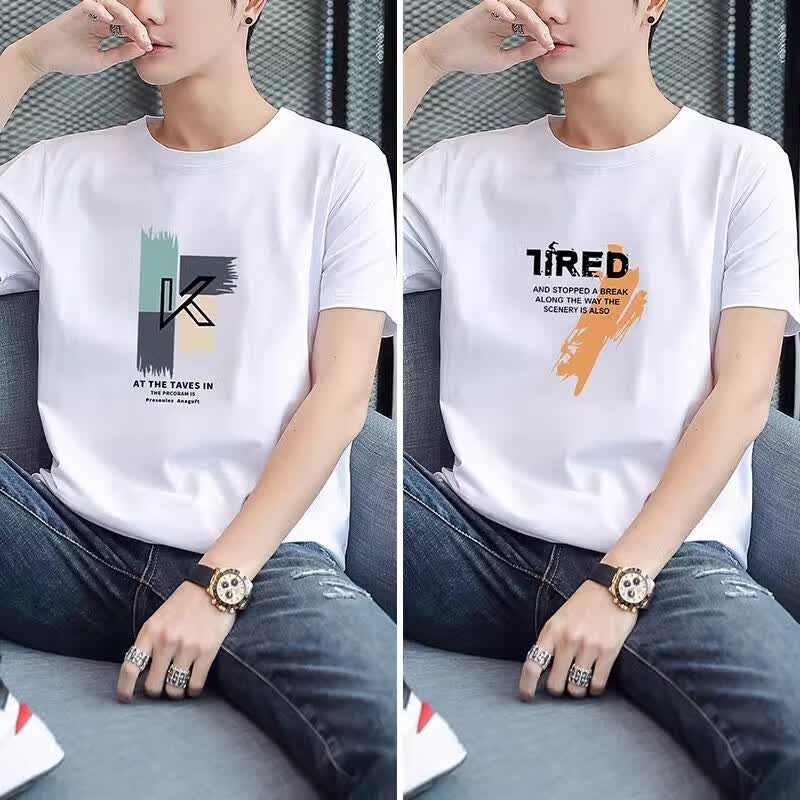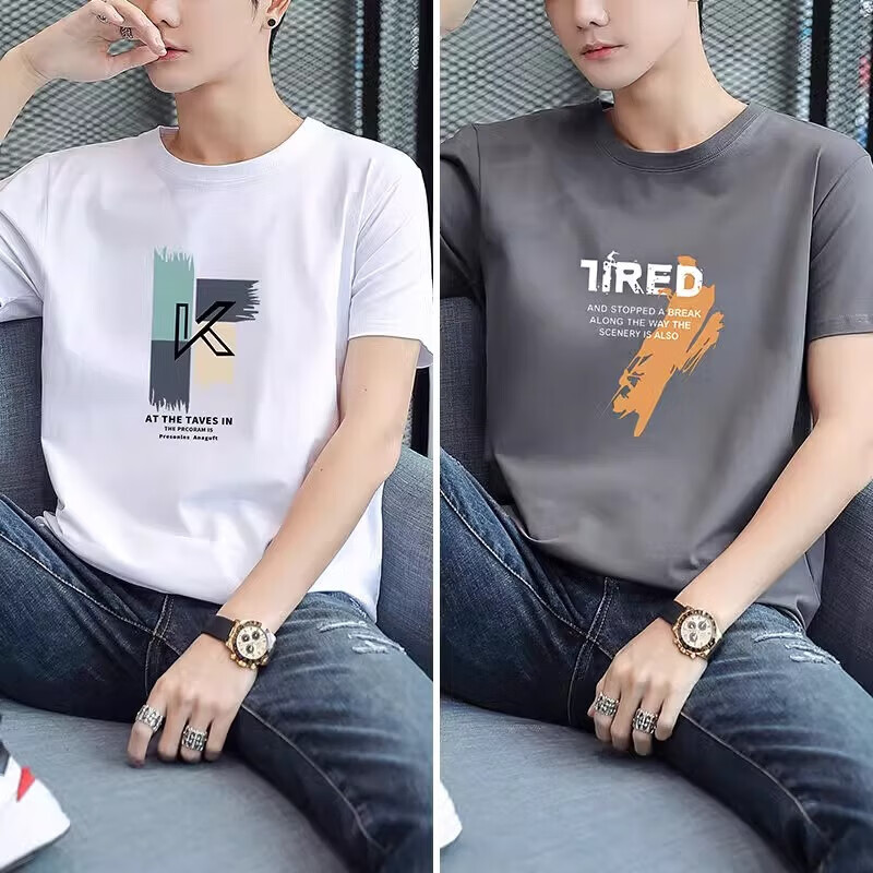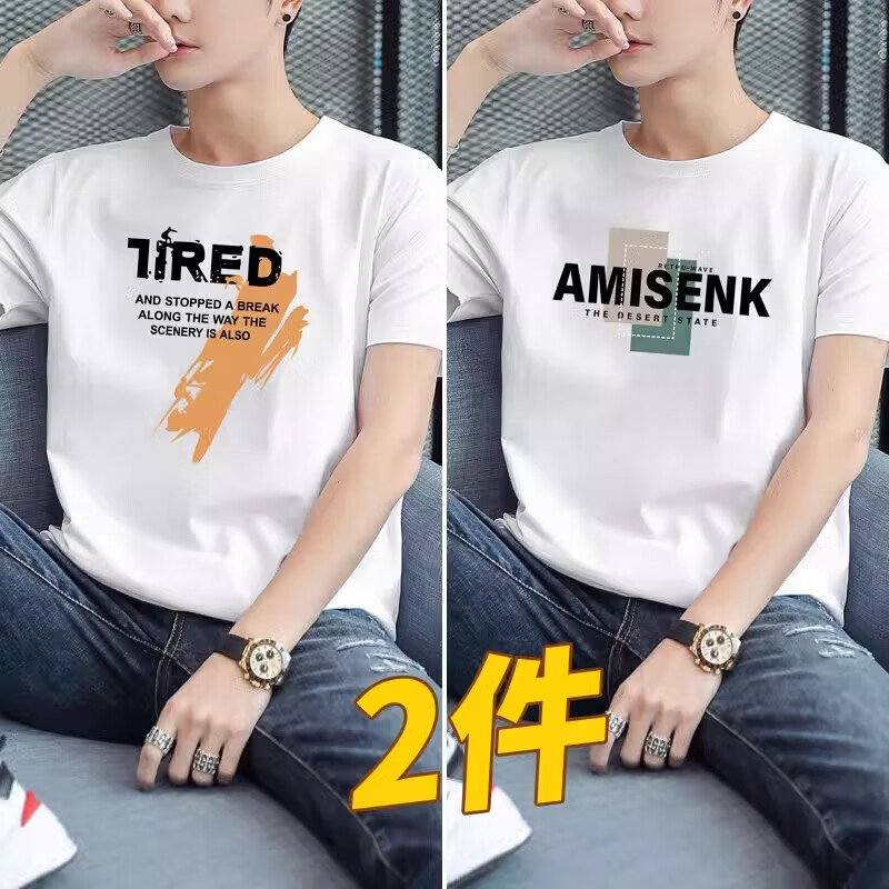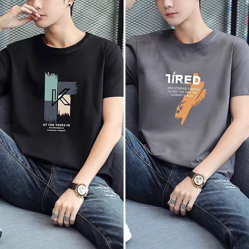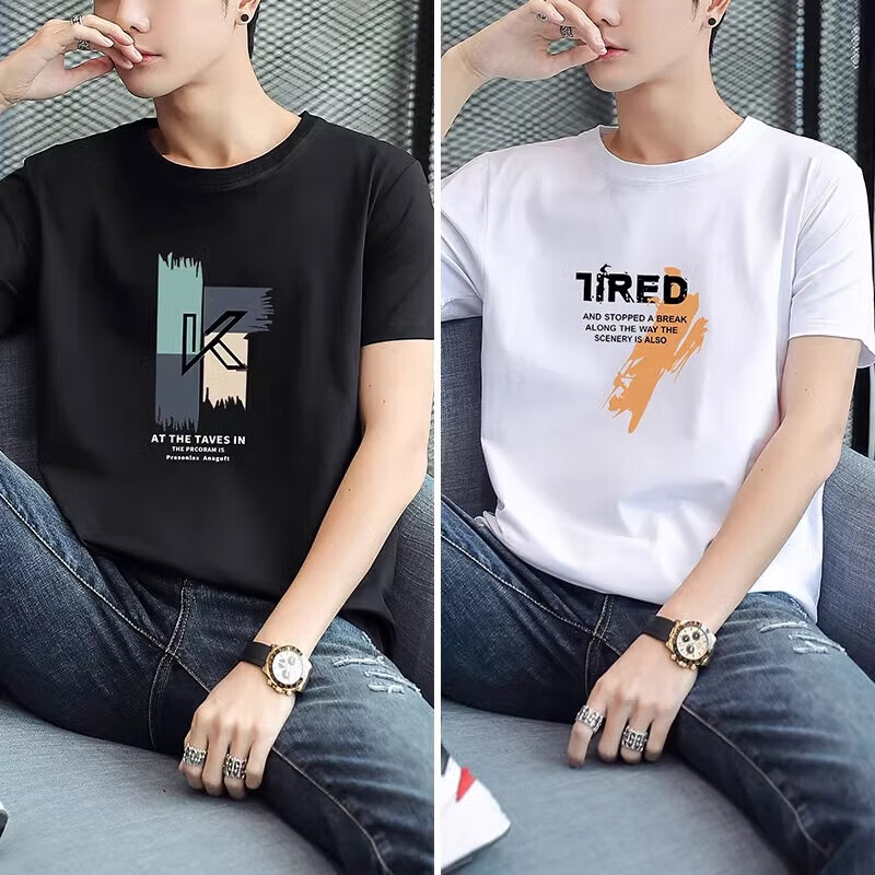 啄木鸟2件纯棉短袖男士t恤2025夏季新款宽松体恤学生圆领休闲半袖 大k黑+大7白 2XL 建议145-160斤