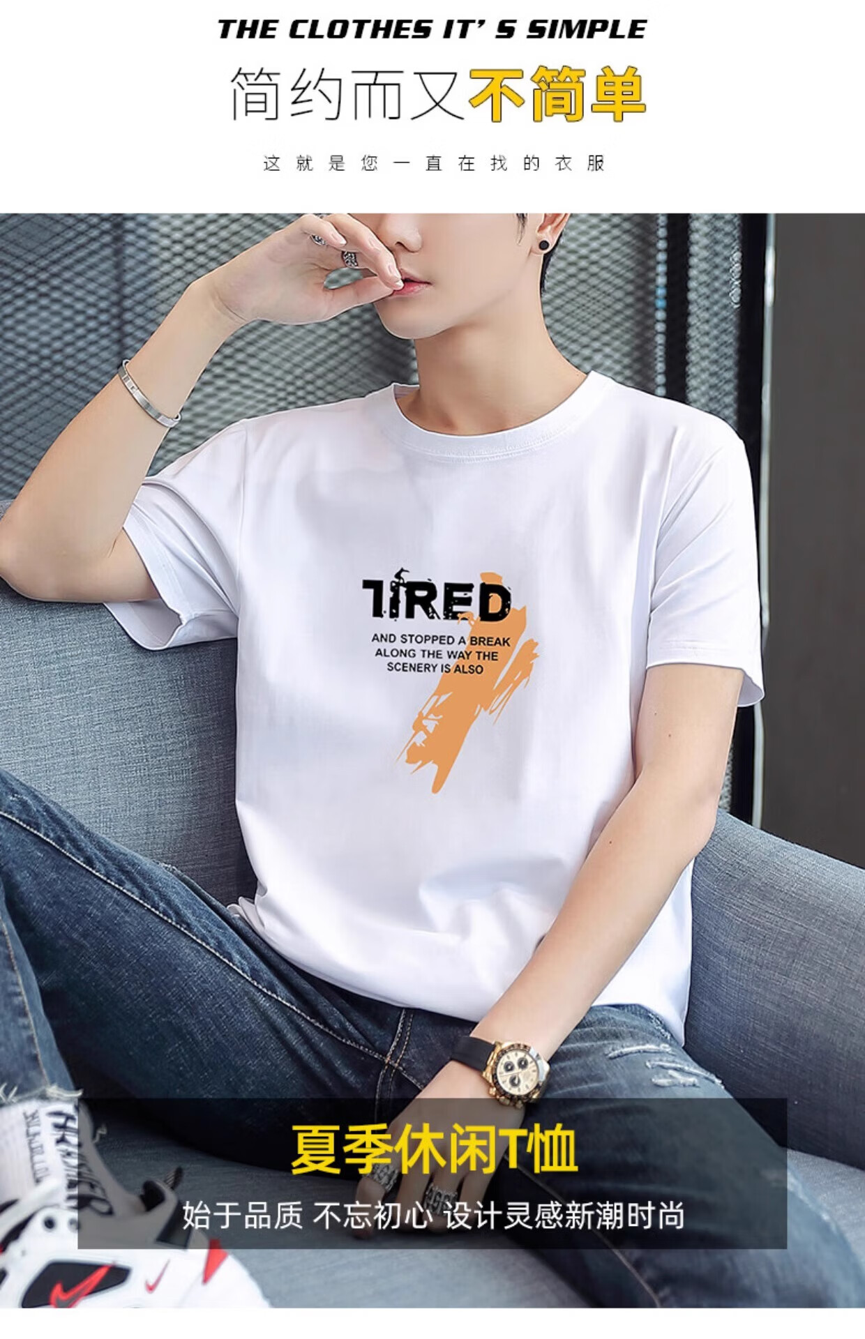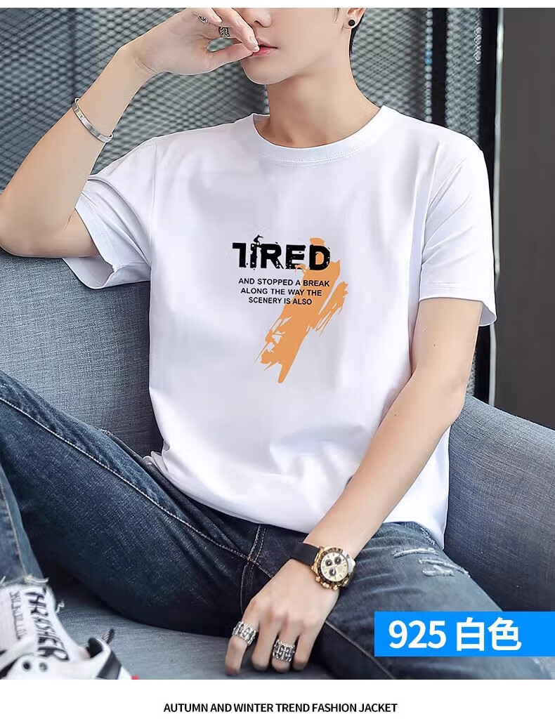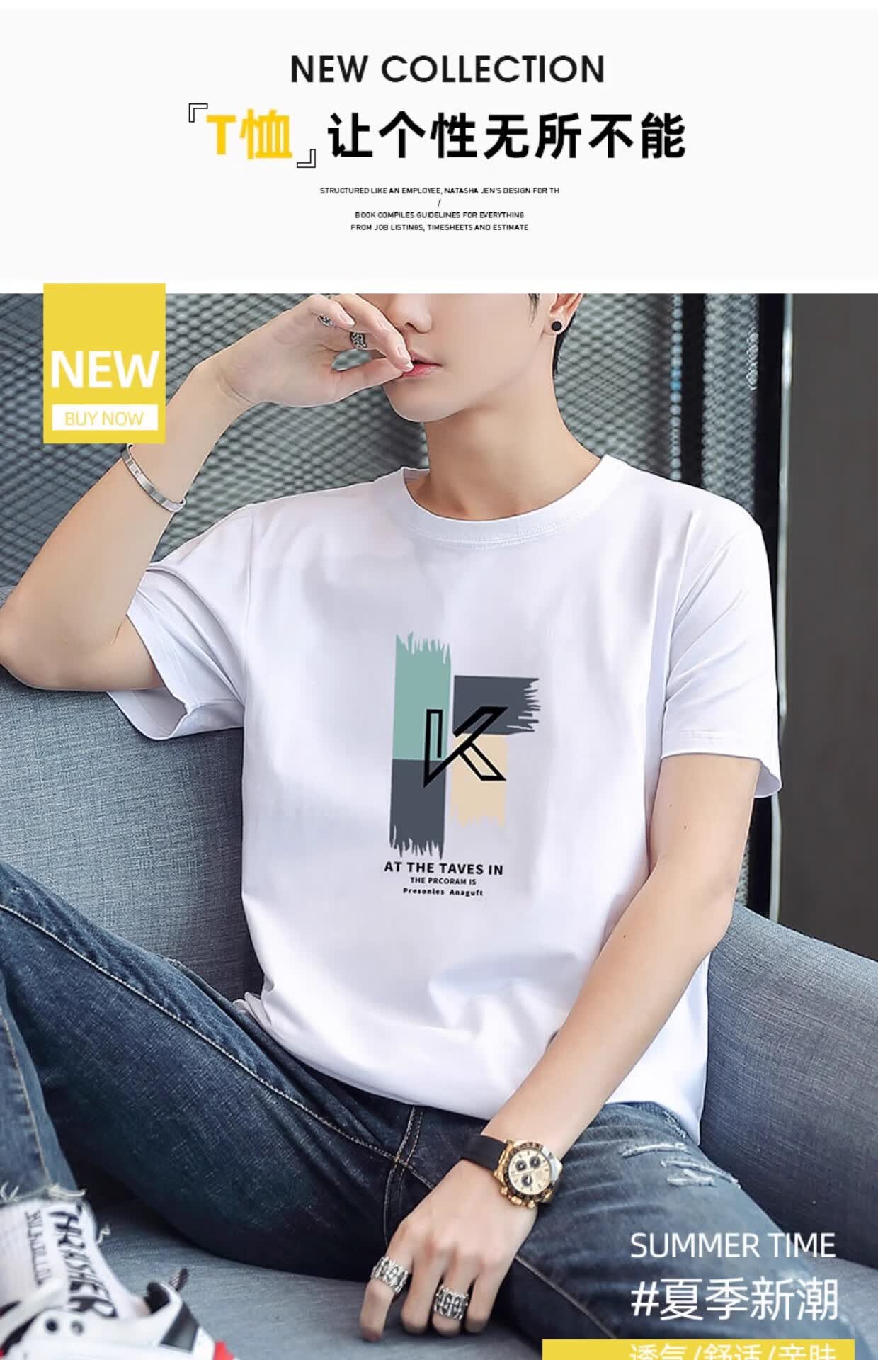 THE URBAN NICE官方品牌纯棉t恤男2026夏秋款短袖上衣商务纯色冰丝纯棉男士短袖 雪白色-纯色 -商场同款 XL 码【建议125-140斤】-T恤