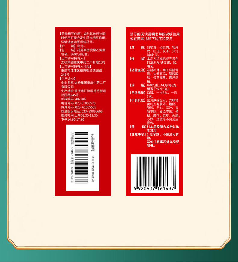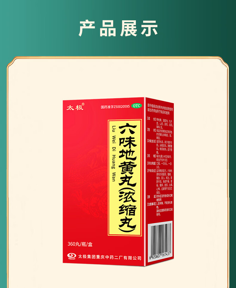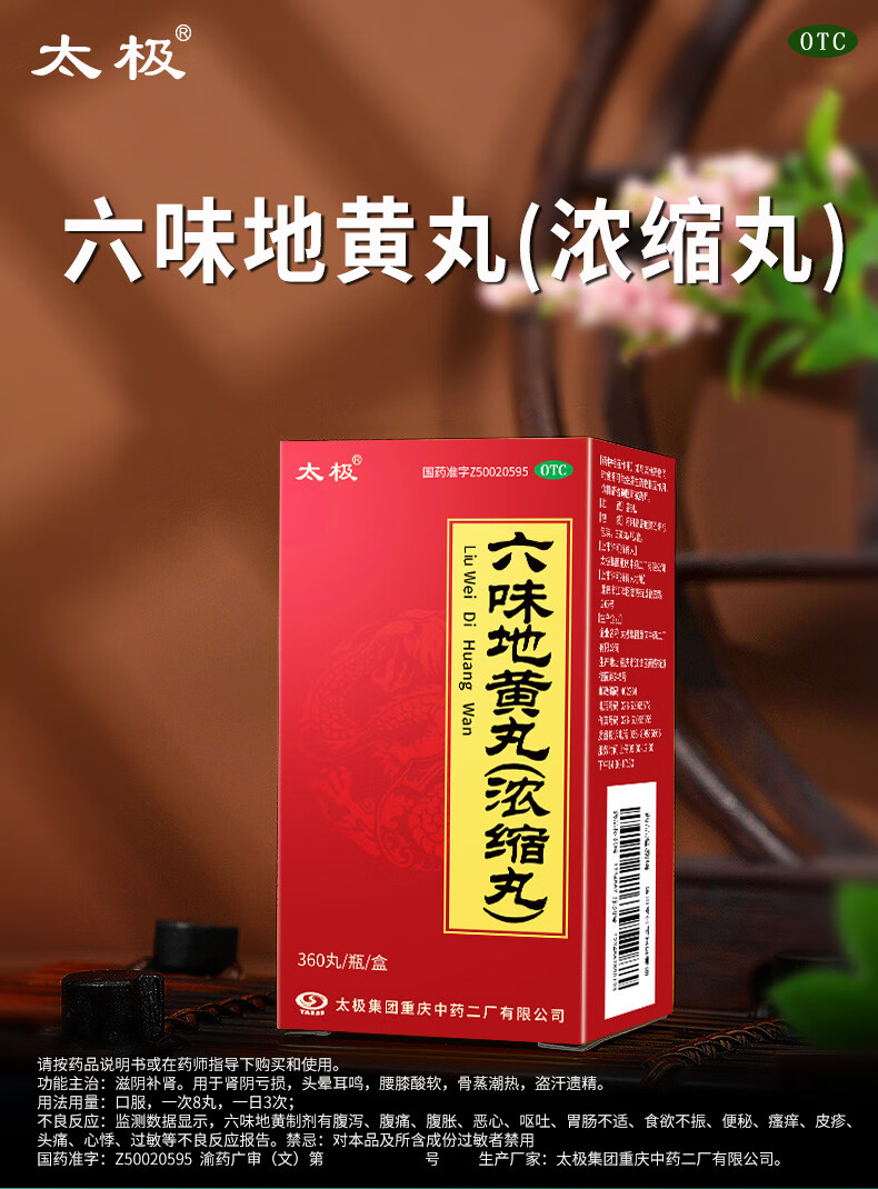 [太极]六味地黄丸(浓缩丸) 360丸 3盒装 六味地黄丸(浓缩丸)360丸 滋阴补肾 用于肾阴亏损头晕耳鸣腰膝酸软