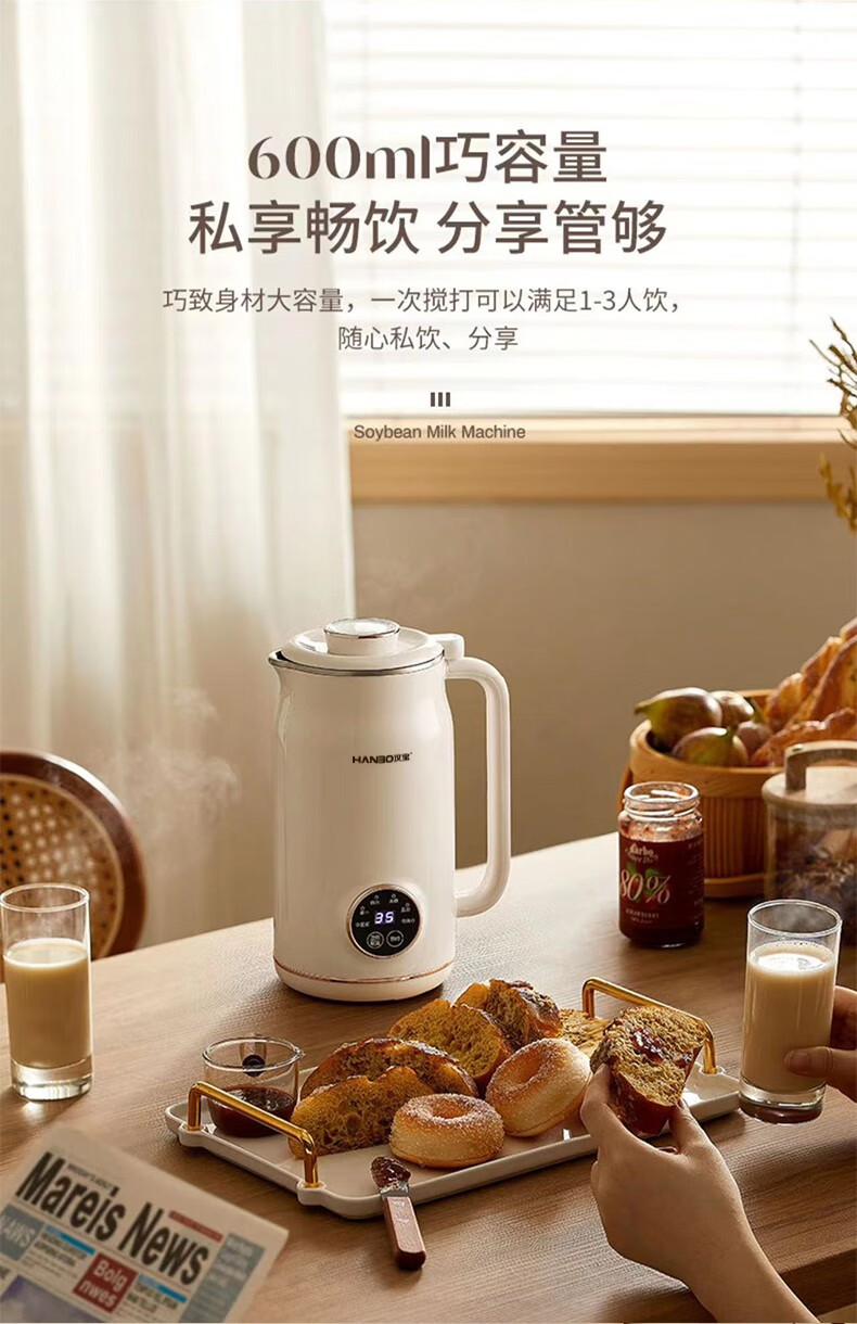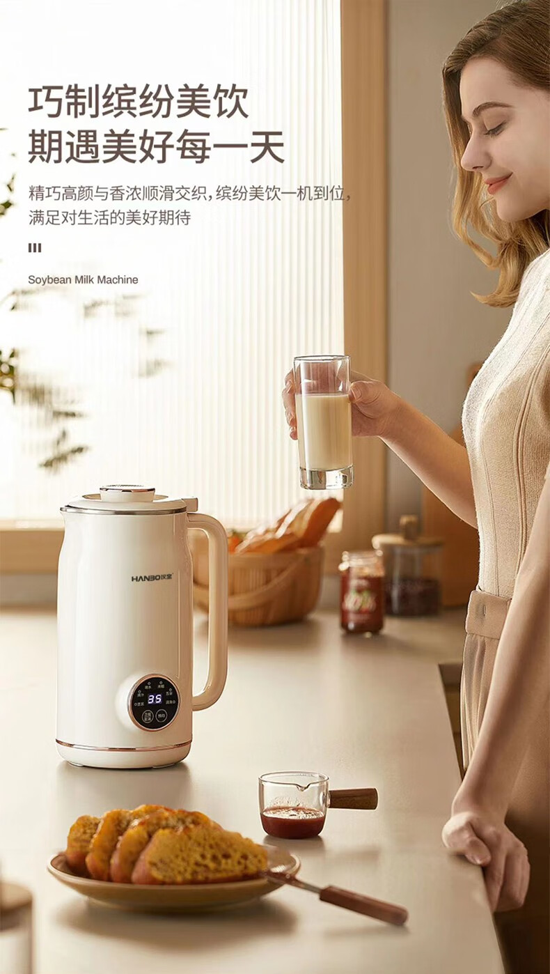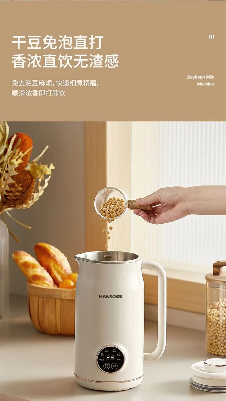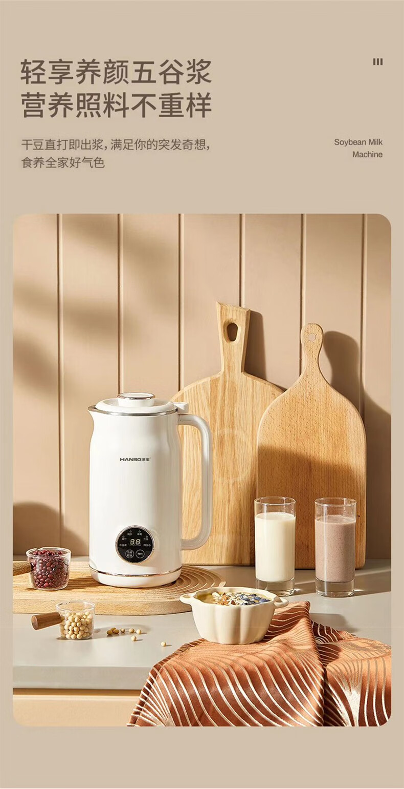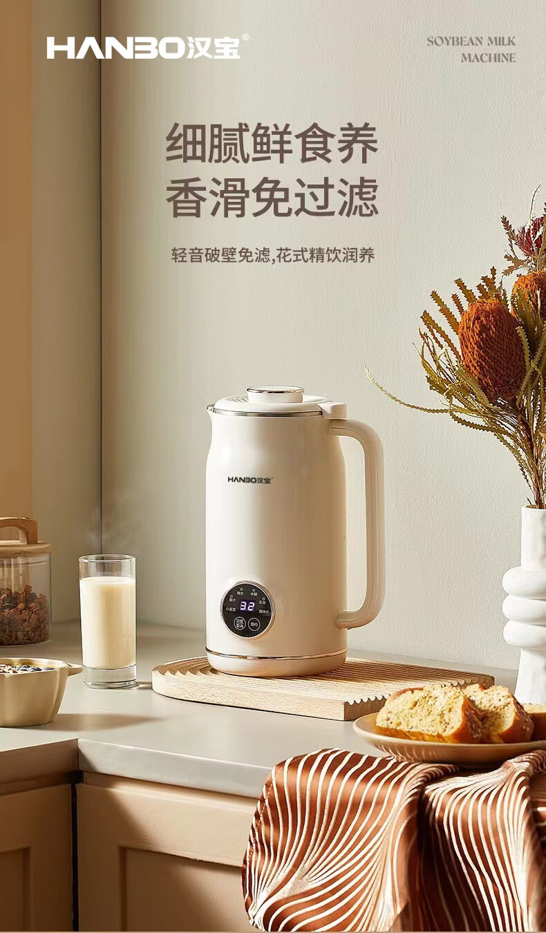 HANBO,出口日本转内销破壁搅拌果汁辅食米糊烧水恒温豆浆免过滤小容量 象牙白 0.8L