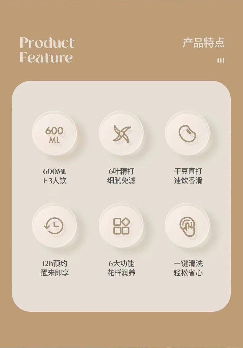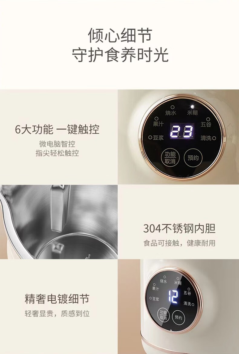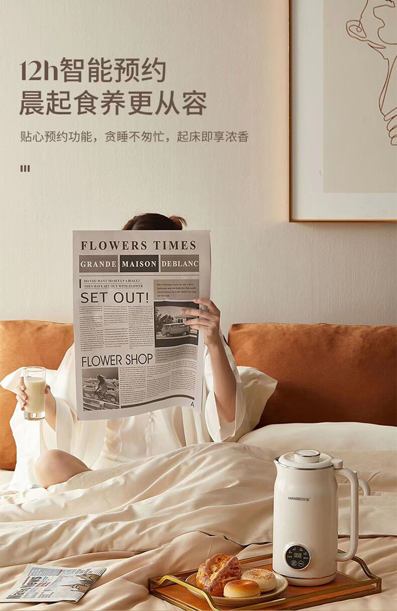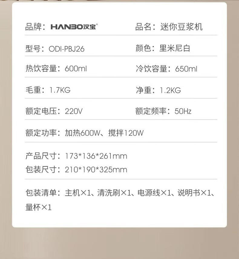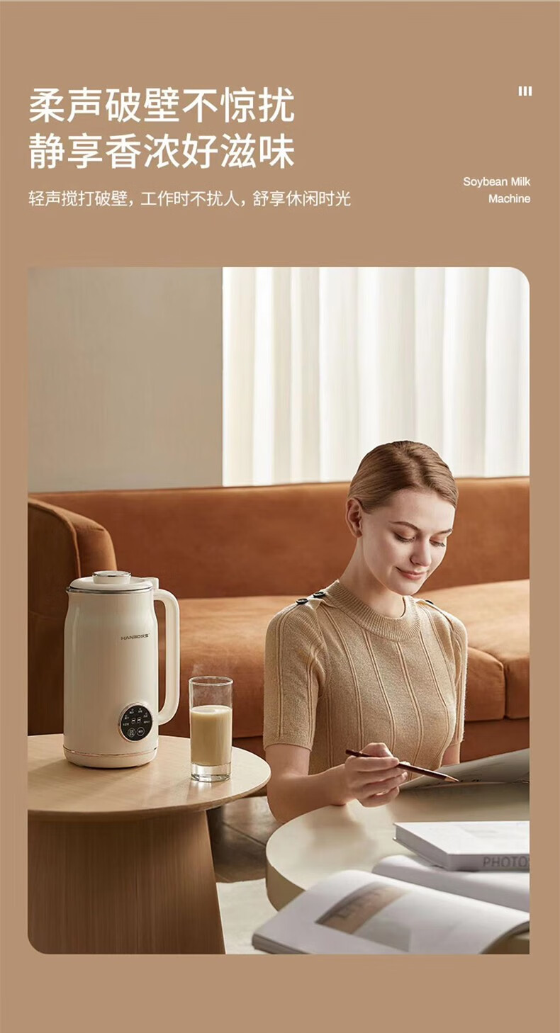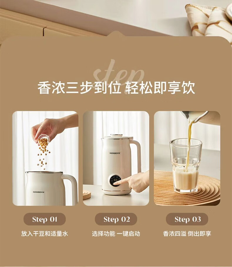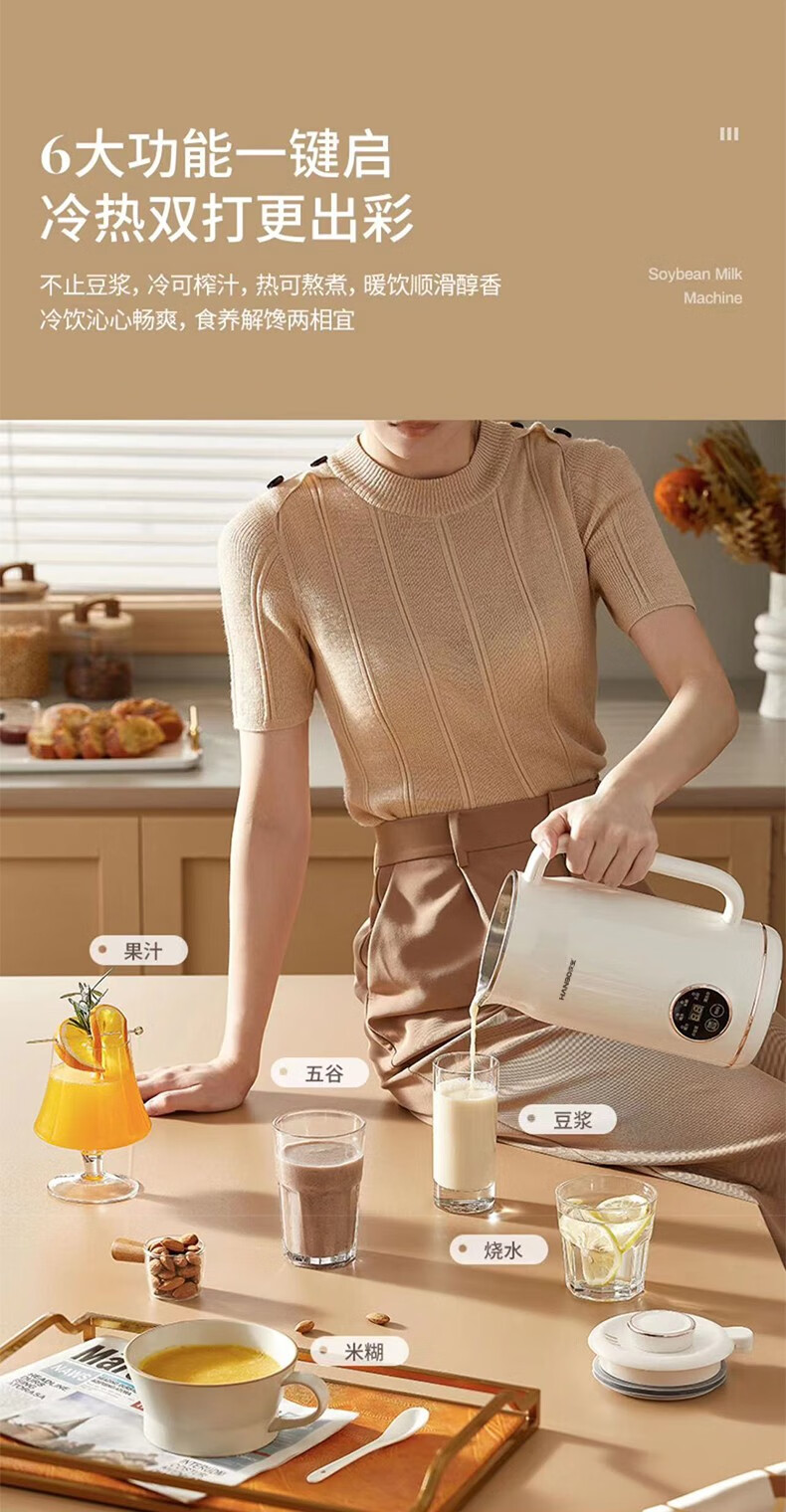 HANBO,出口日本转内销破壁搅拌果汁辅食米糊烧水恒温豆浆免过滤小容量 象牙白 0.8L