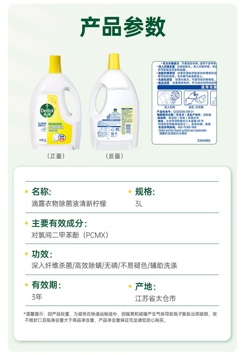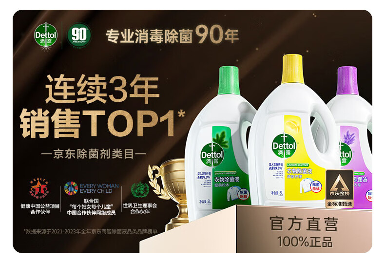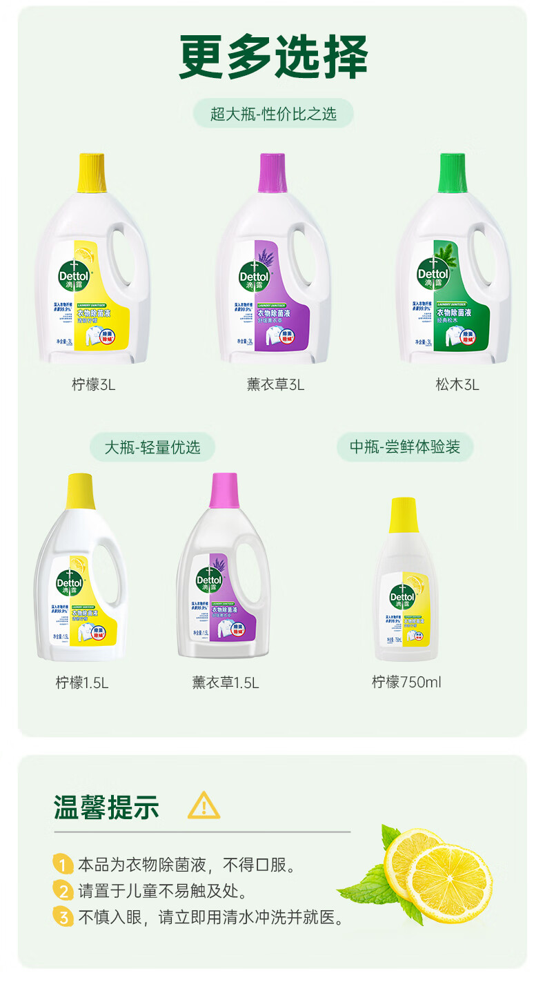 滴露(Dettol)衣物除菌液3L*3瓶消毒液 儿童衣服内衣裤高效除螨杀菌水 家用大瓶 柠檬除菌液3L*3