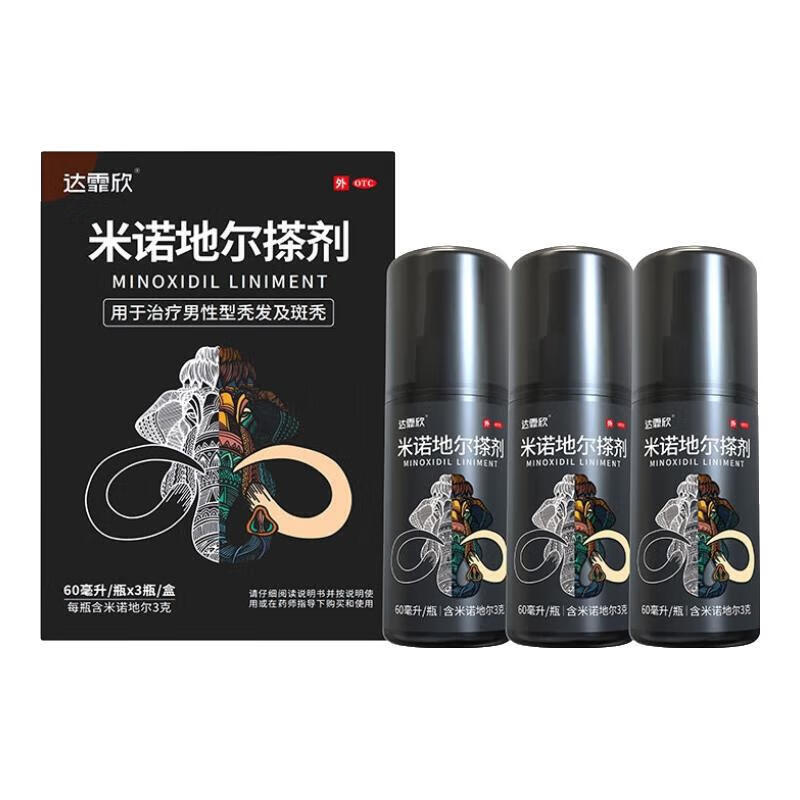 [达霏欣]米诺地尔搽剂 5%*60ml*3瓶 1盒装 60ml:3g*3瓶/盒男专用防脱生发育发发际线增长液洗发水脱发斑秃泡沫凝胶 脱发严重疗程装