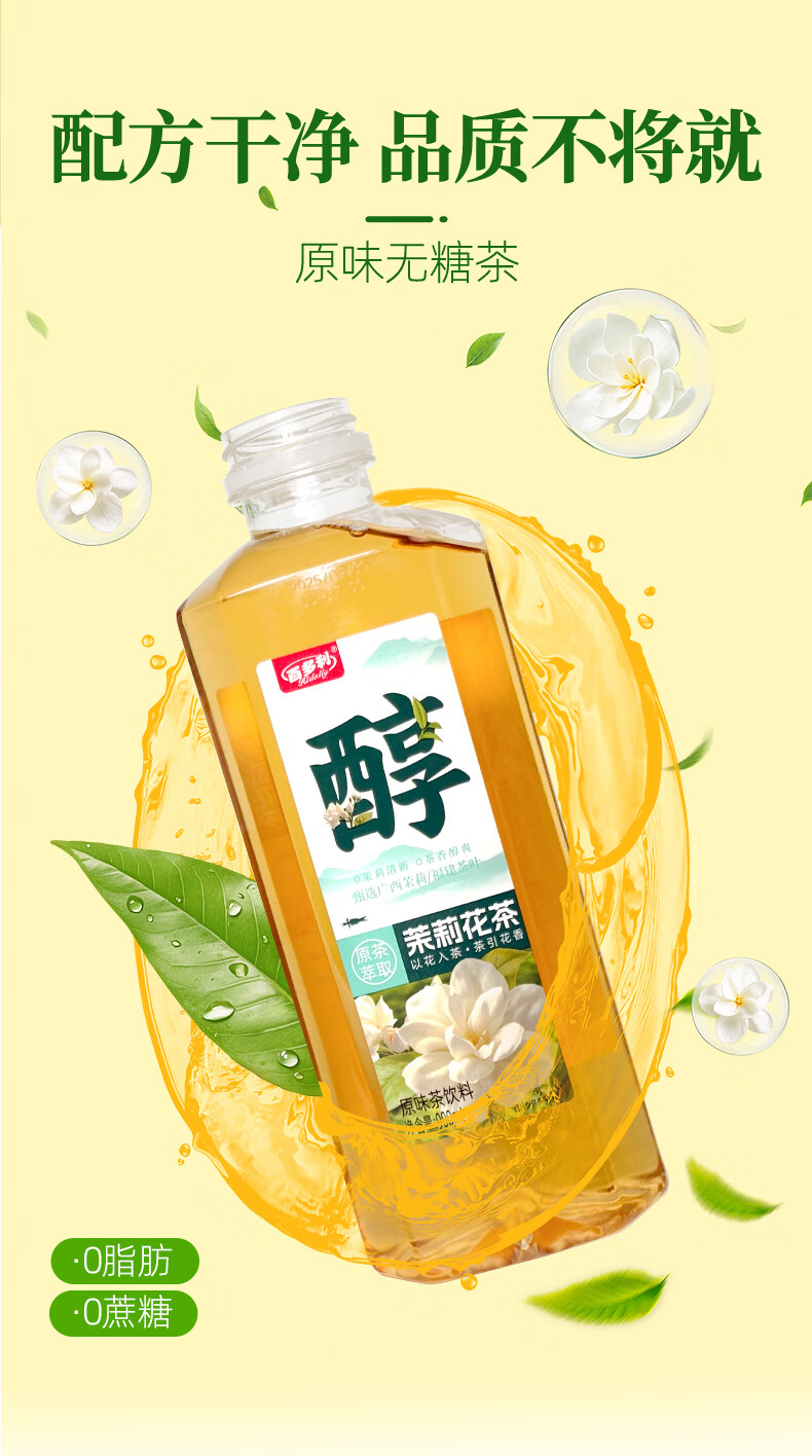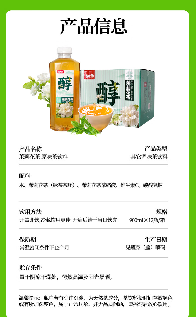 百多利茉莉花茶饮料900ml*12瓶原茶萃取无糖茶草本植物饮品大瓶装整箱 冷泡茉莉花茶饮料【900ml*12瓶】整箱发货