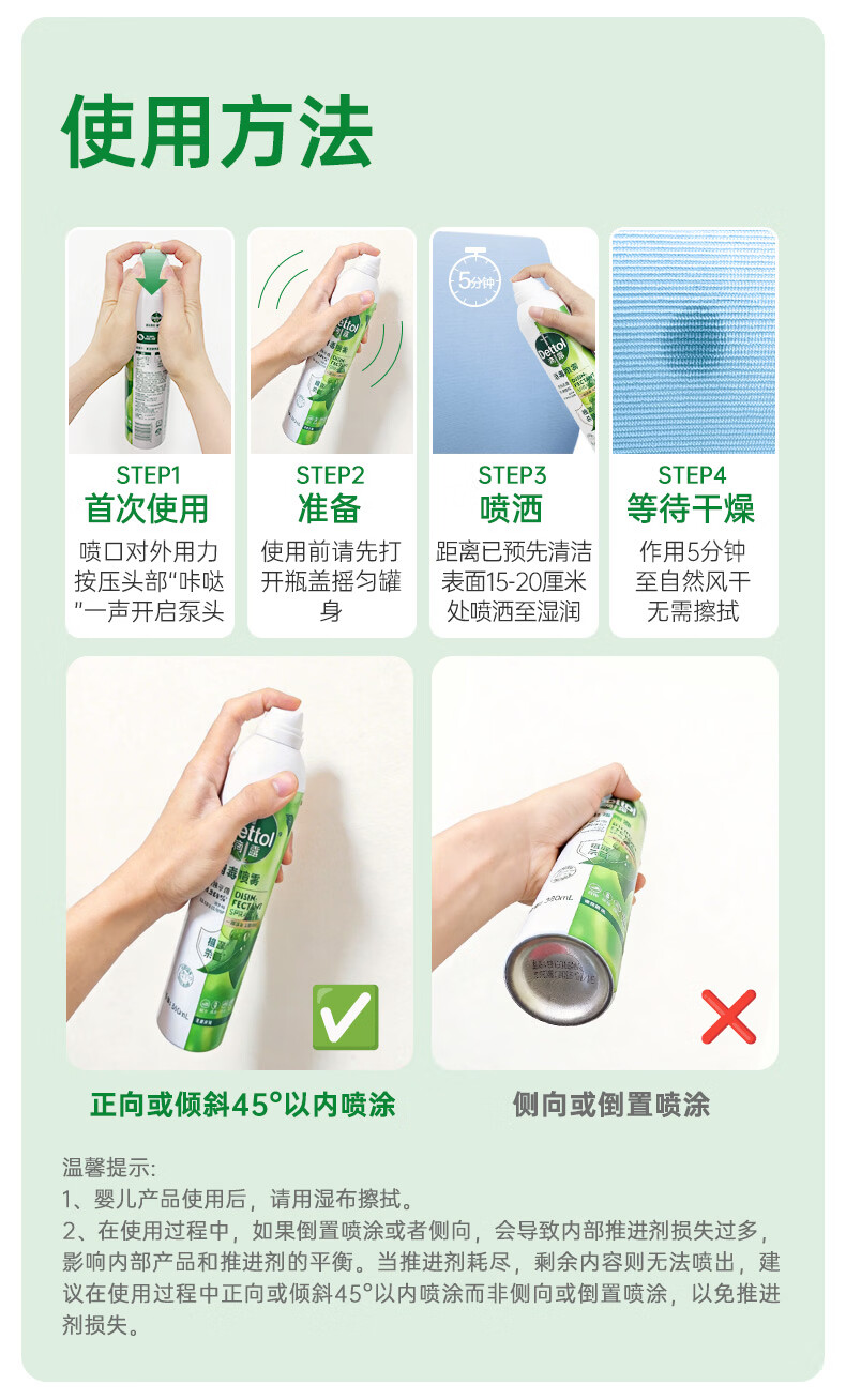 滴露(Dettol)消毒喷雾鞋子除臭杀菌马桶床上除菌剂灭HPV衣物除味380ml清晨露珠