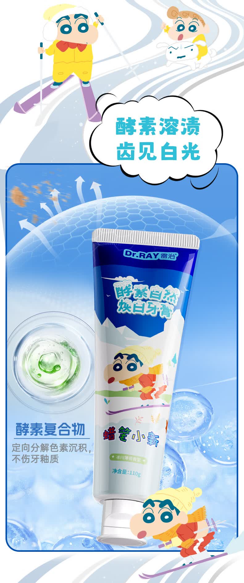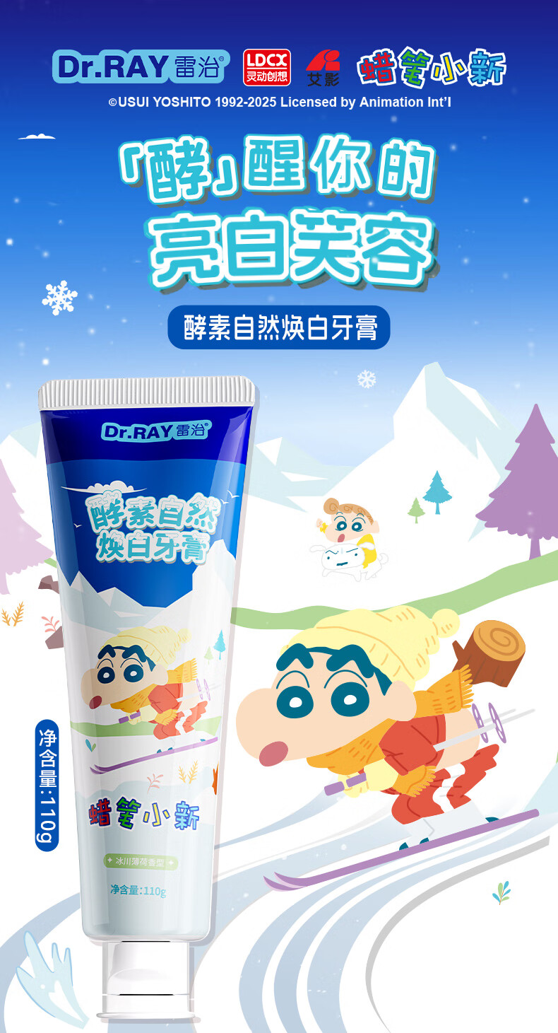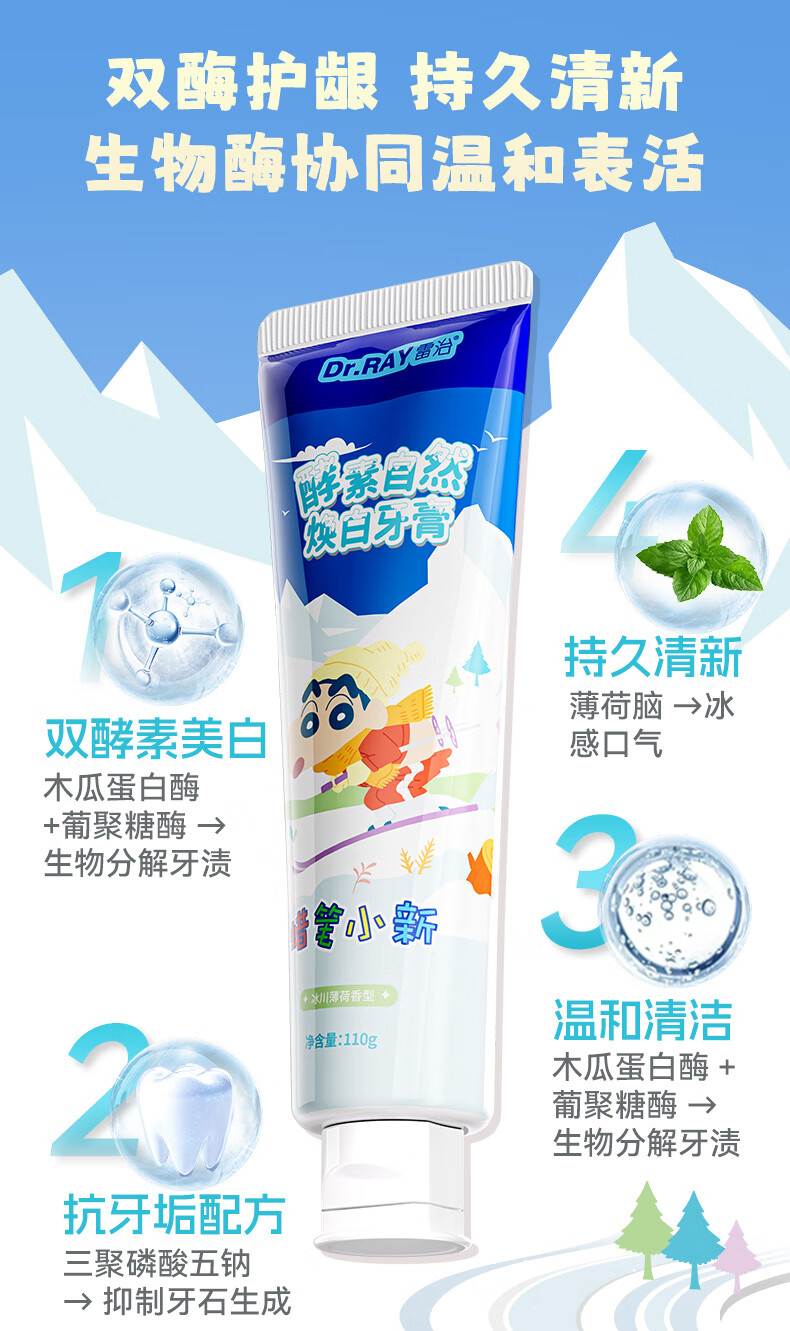 雷治 雷治酵素美白亮白牙膏去黄去烟渍清新口气男士成人不含氟110g 酵素美白