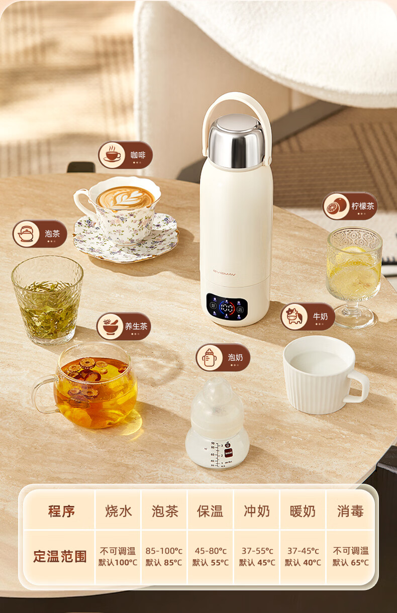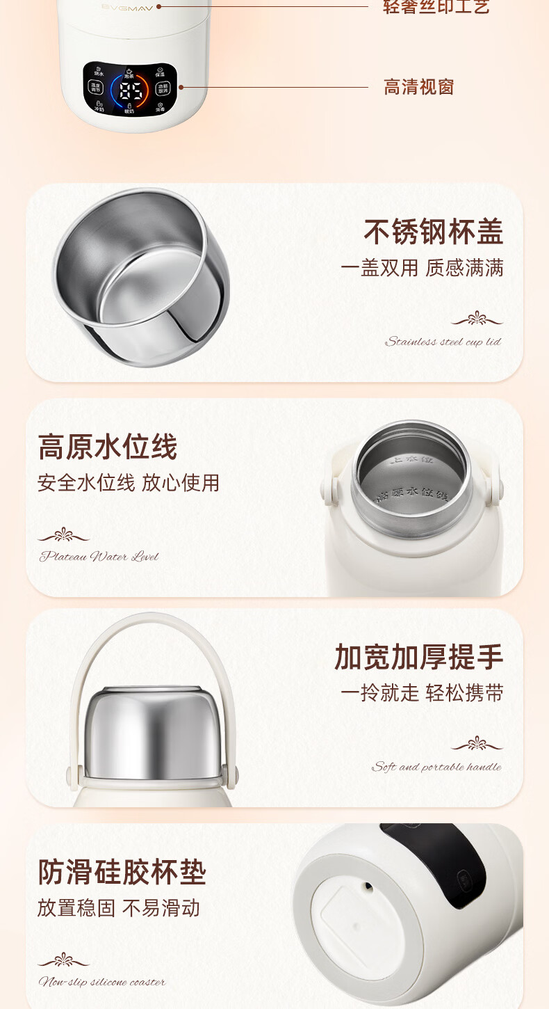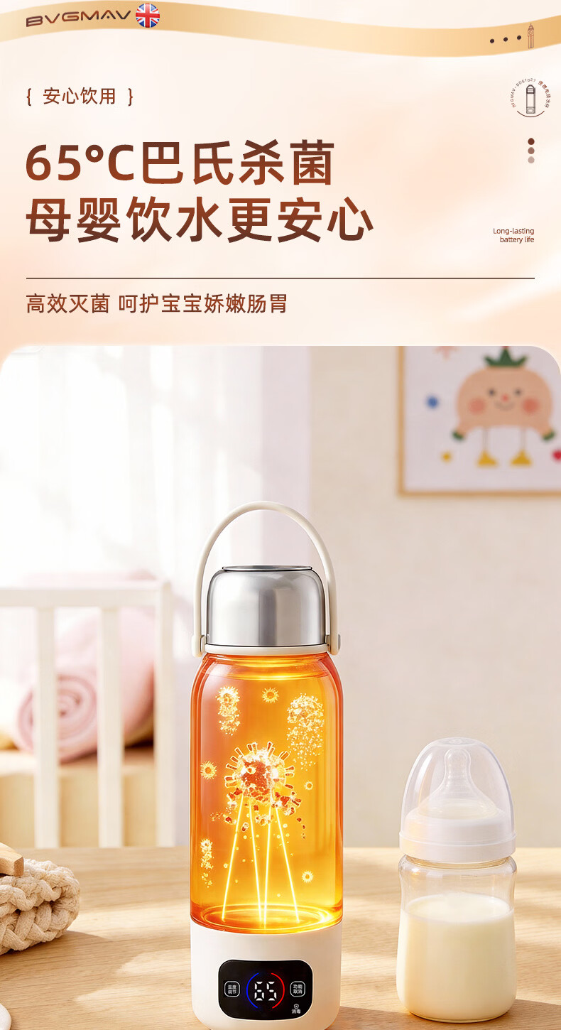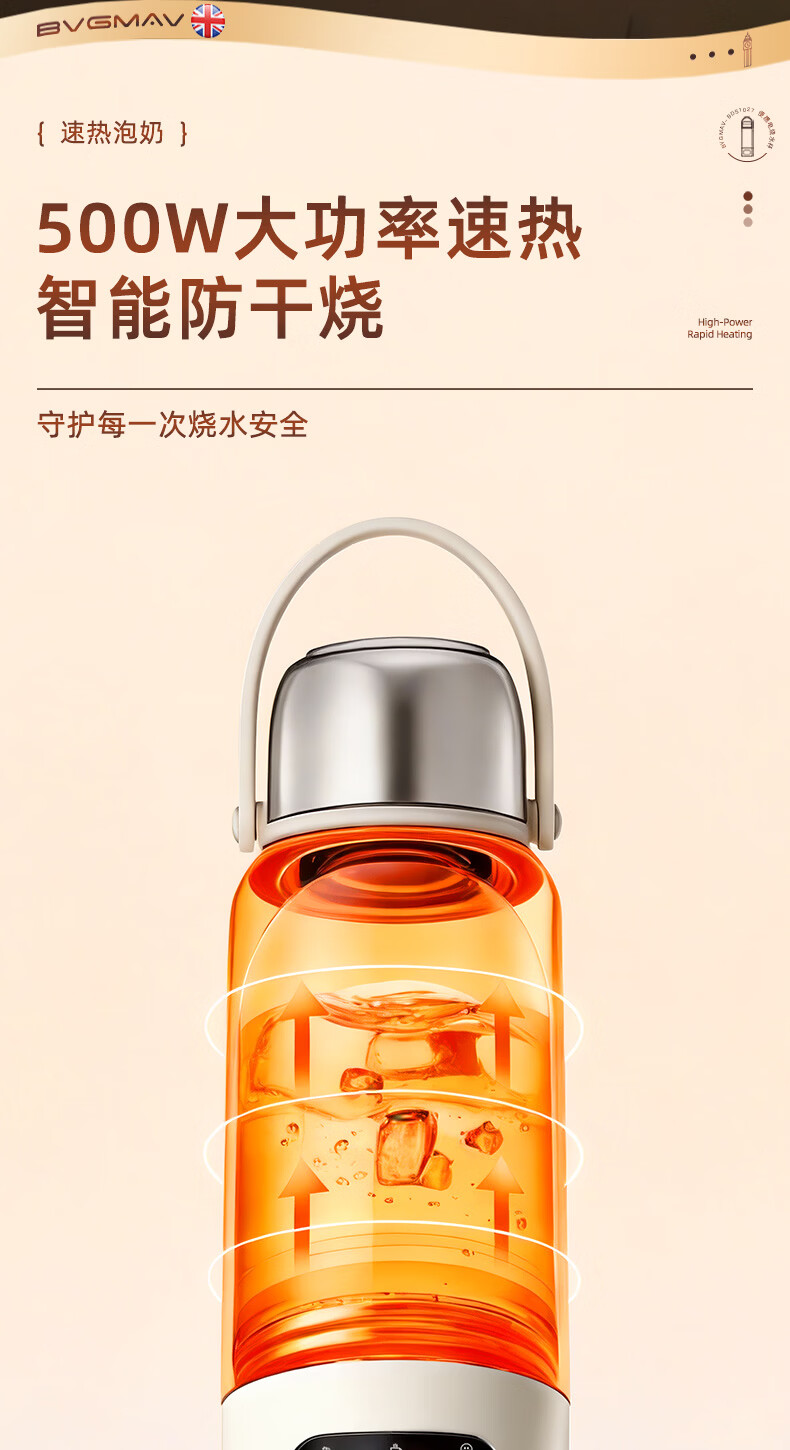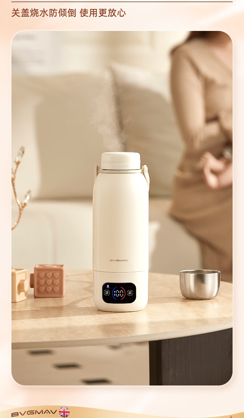 宝威玛(BVGMAV)便携式电热烧水壶无线加热烧水杯免插电可烧开水100度恒温保温一体户外旅行家用车载电煮杯泡奶机 0.55L 3c认证【无线+插电】满杯烧开100℃