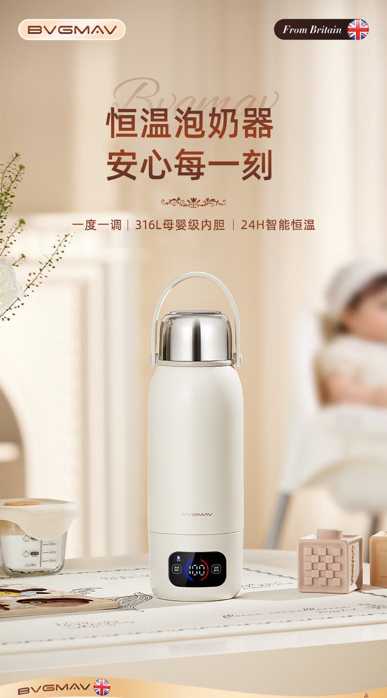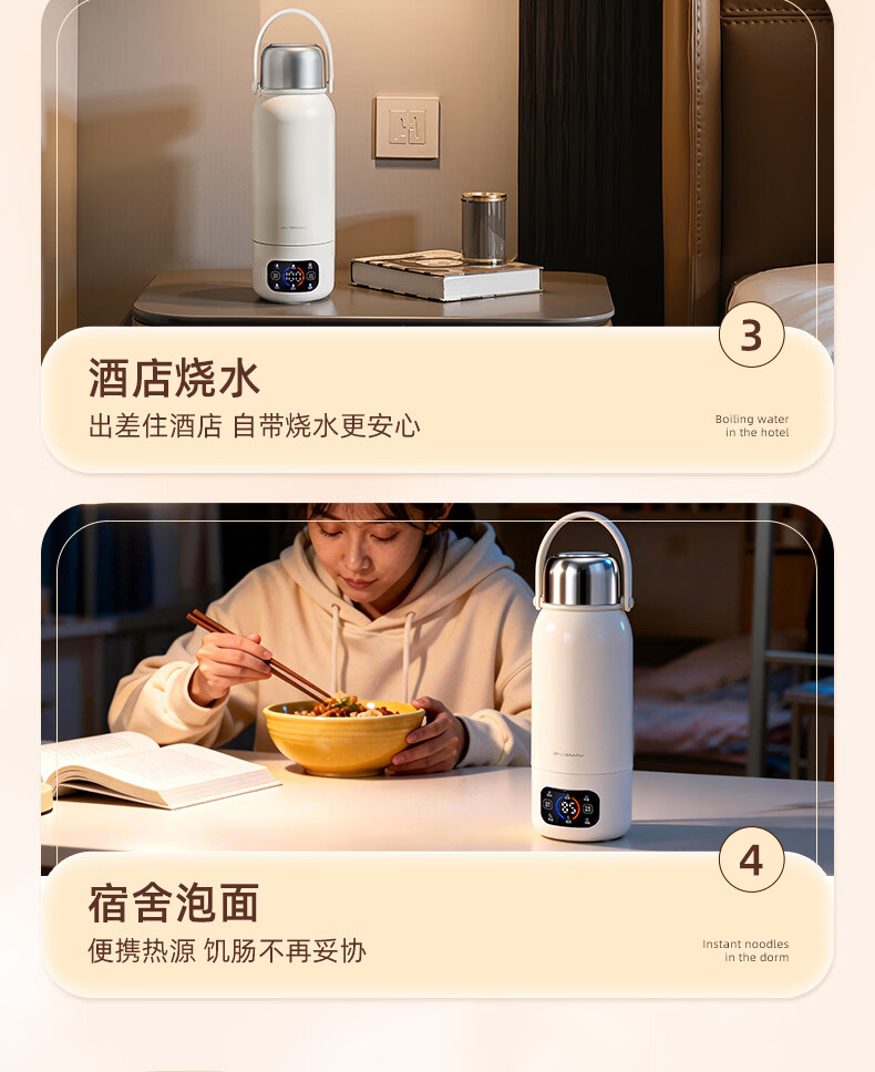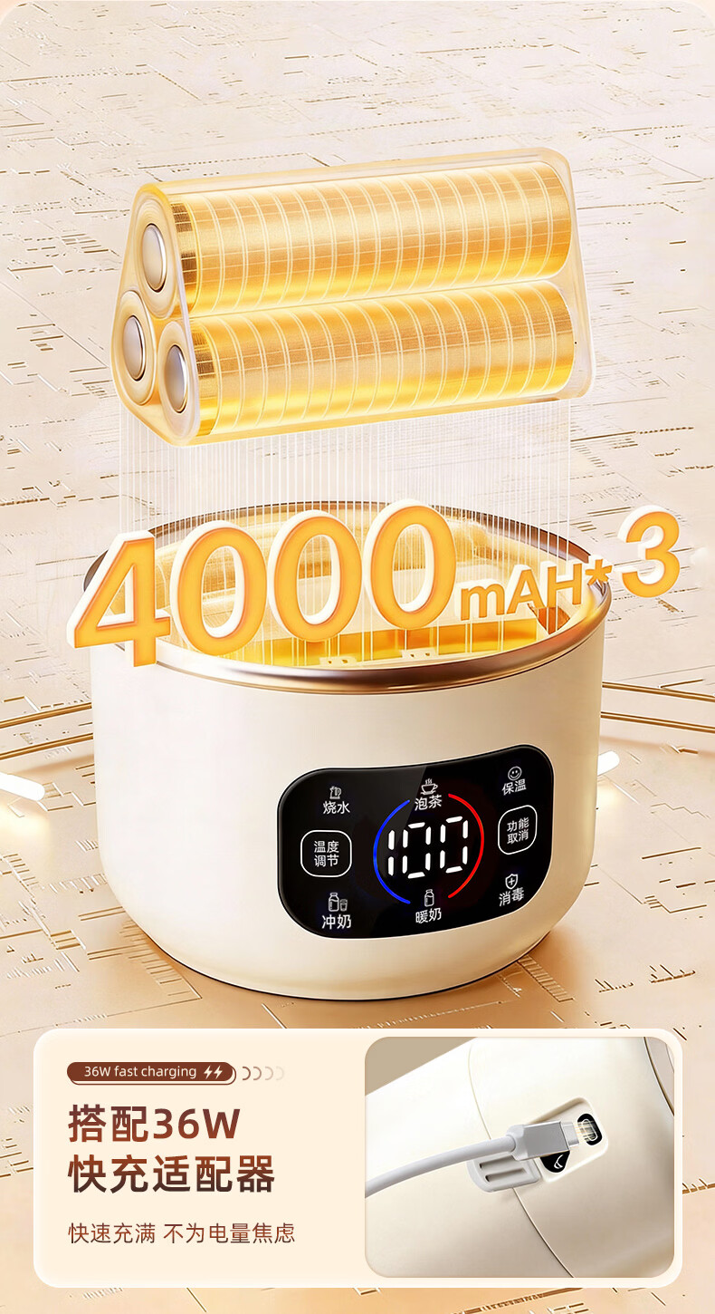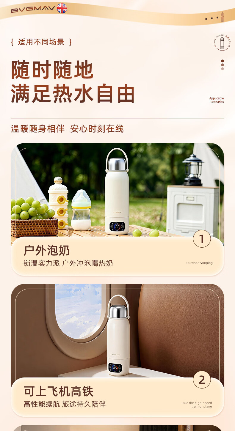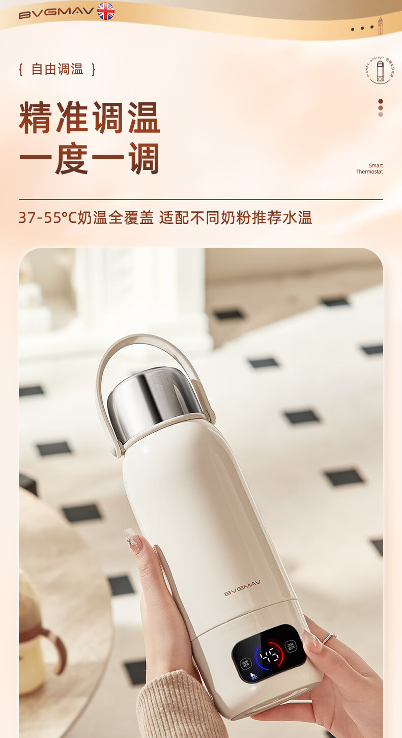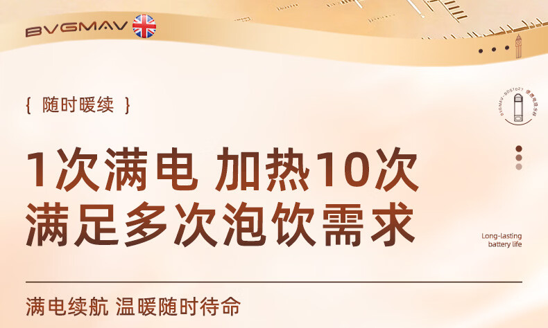 宝威玛(BVGMAV)便携式电热烧水壶无线加热烧水杯免插电可烧开水100度恒温保温一体户外旅行家用车载电煮杯泡奶机 0.55L 3c认证【无线+插电】满杯烧开100℃