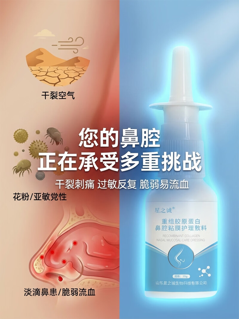 星之诚重组胶原蛋白鼻腔黏膜护理敷料护理液鼻子干燥过敏性鼻炎星之诚 【热卖推荐】【2瓶赠1鼻腔护理清洗液50ml】