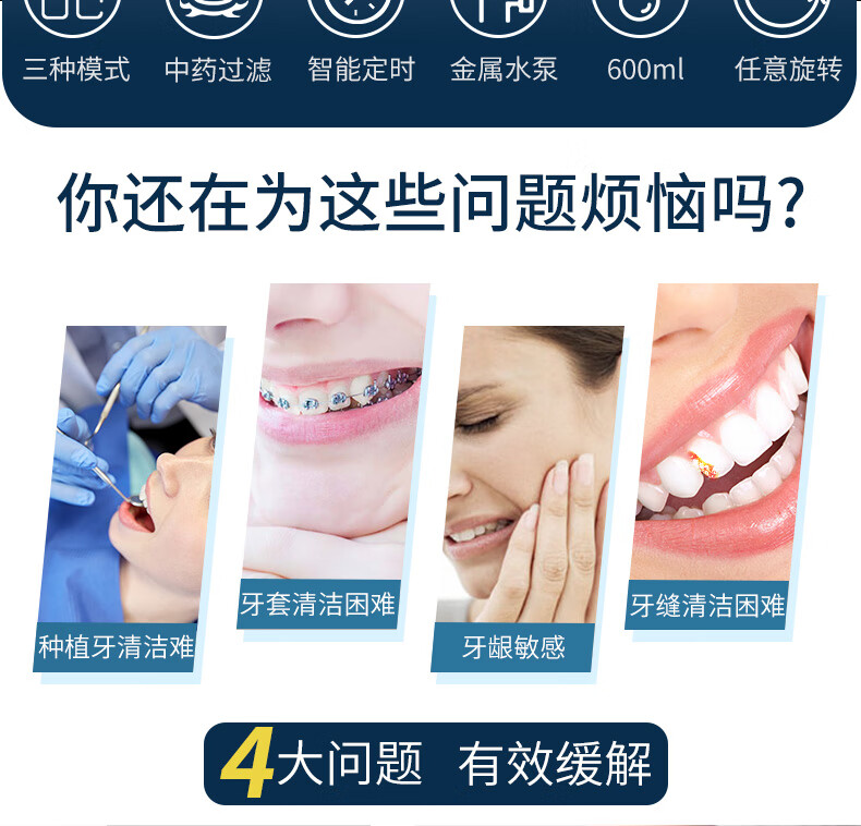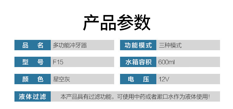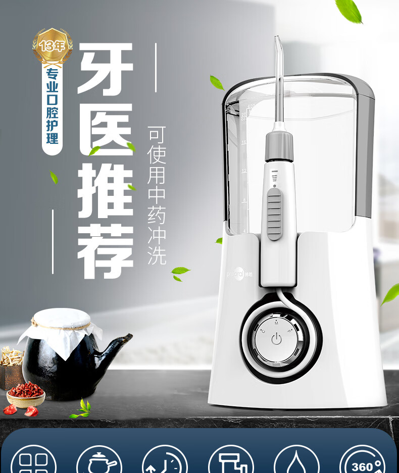 博皓(prooral)冲牙器家用台式洗牙器水牙线牙齿冲洗器声波洁牙器 多功能医用洗牙器 F15 星空灰