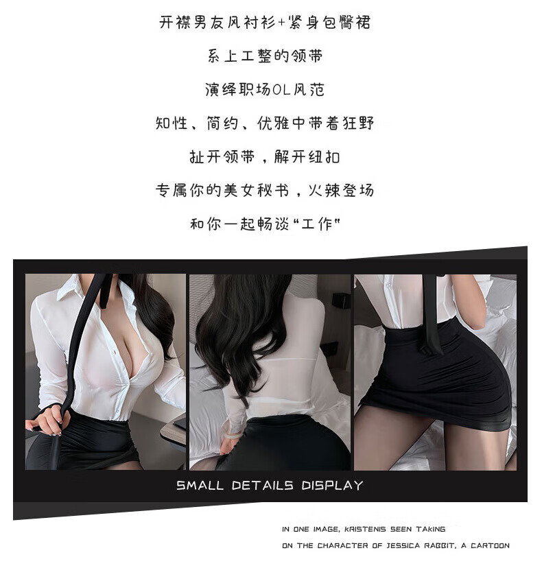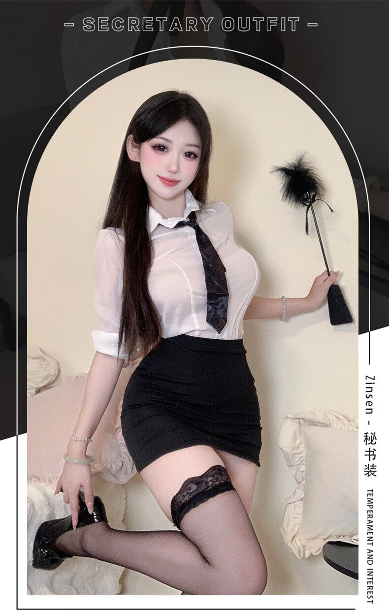 木普森(MUPUSEN)性感制服情趣职业装白领紧身包臀短裙角色扮演异域风情夫妻刺激 套装+手撕丝袜 大码【适合125-150斤】