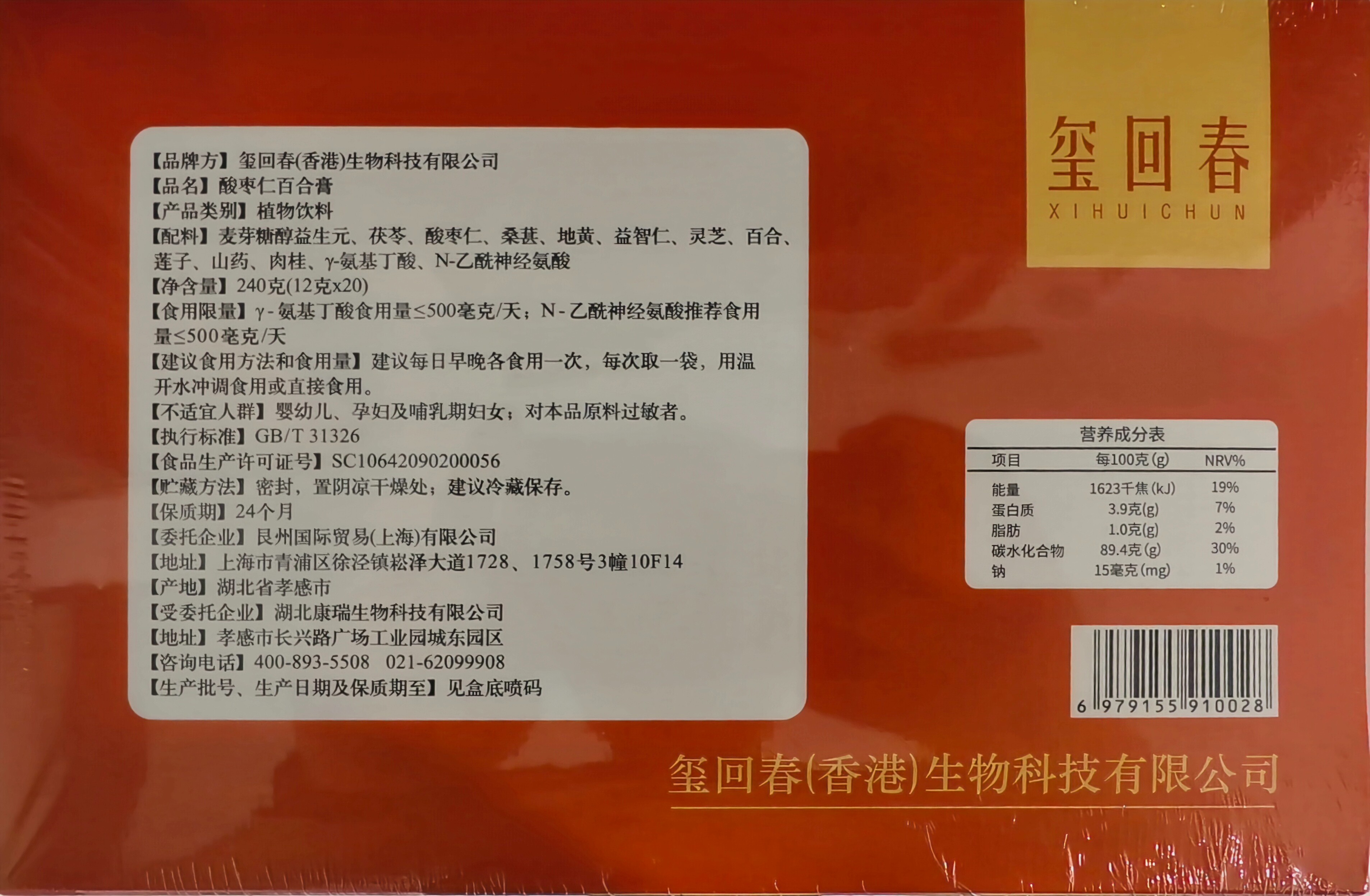 玺回春 熬夜滋补养生酸枣仁百合膏 灵芝 茯苓草本膏方手工熬制 山楂茯苓膏 240g*1盒 好喝养脾胃