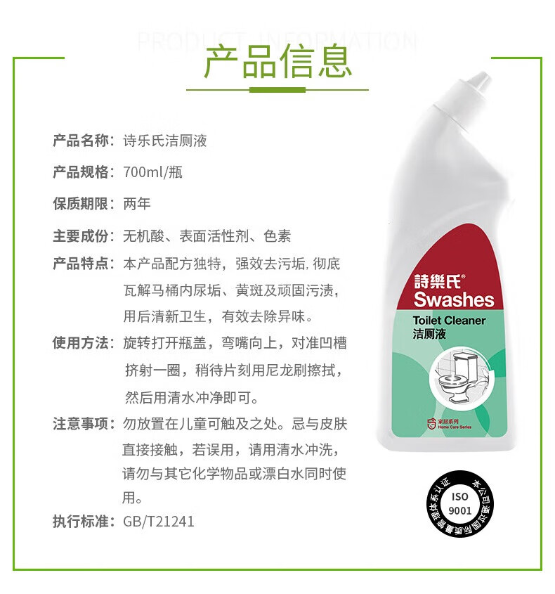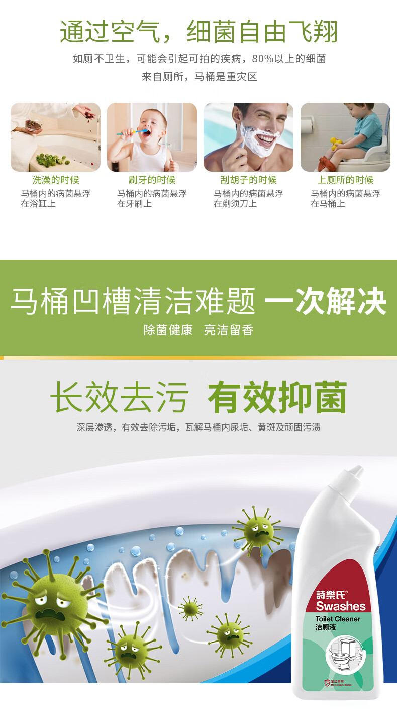 诗乐氏洁厕液700ml*4瓶装马桶清洁剂净洁厕灵除垢杀菌除臭清香 洁厕液700ml*4瓶