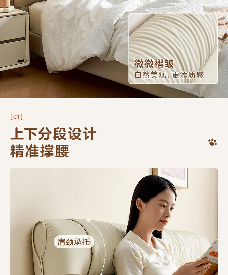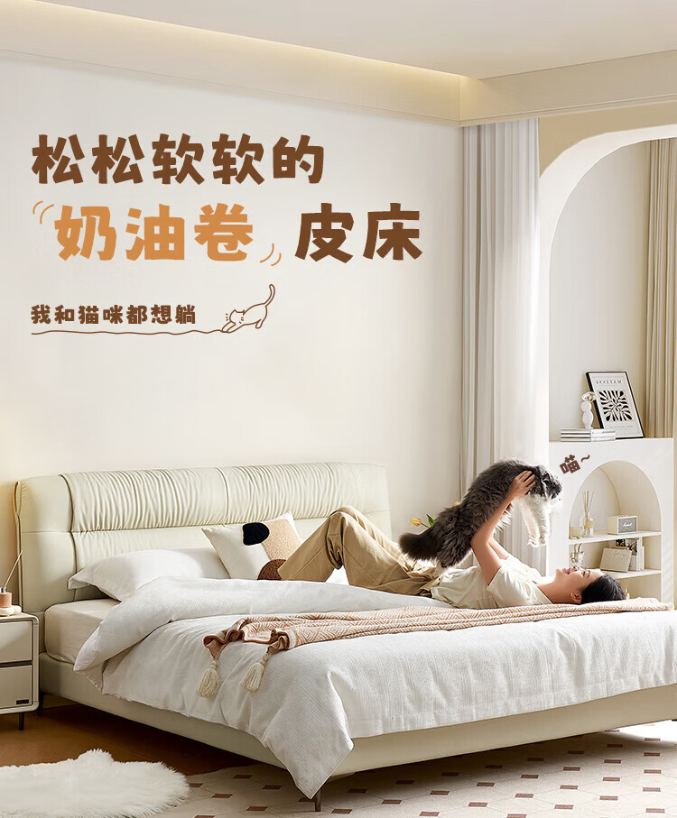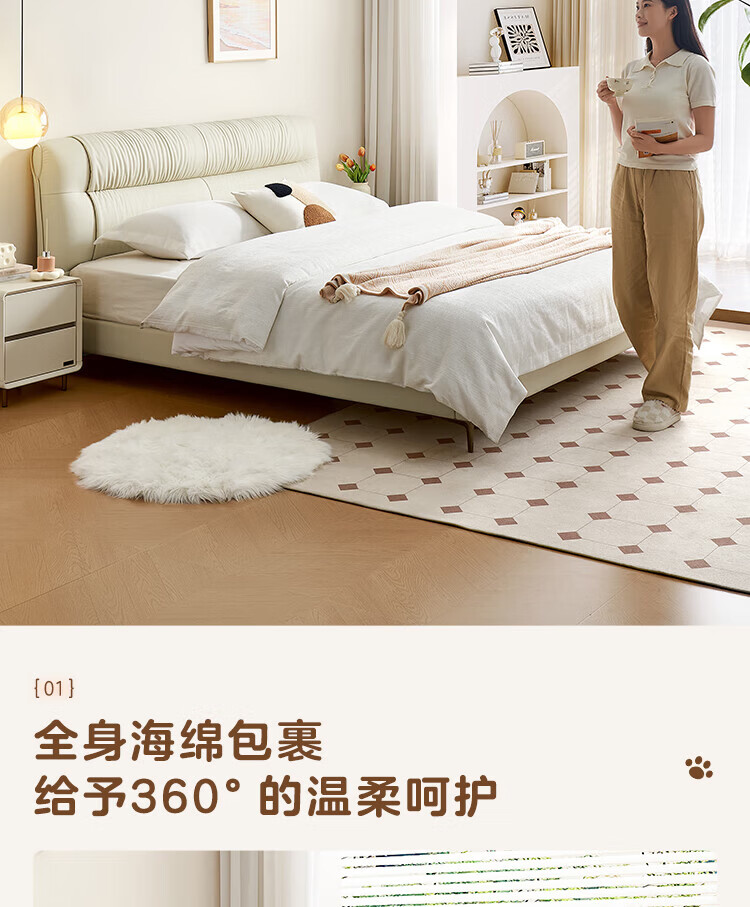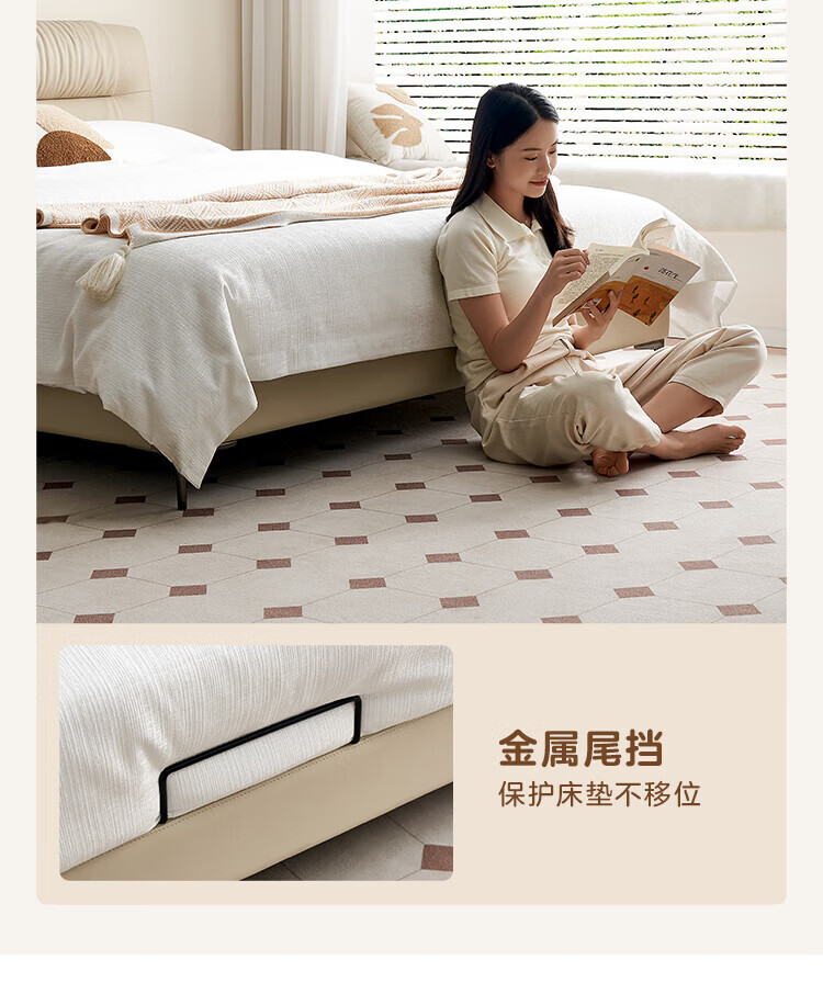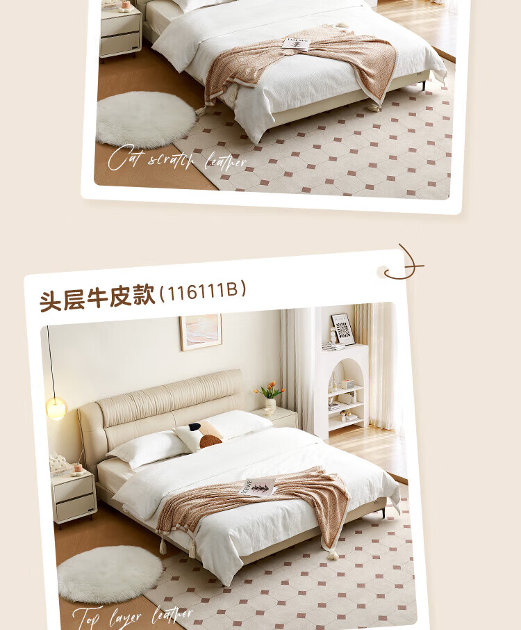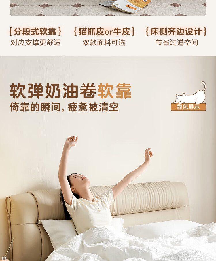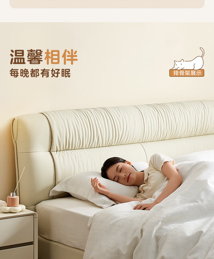 全友家居现代简约茉伊真皮床轻奢高级感2026年新款头层牛皮软包靠背床 【牛皮 | 米白 | 平移+上翻开合电动储物款】 1.8米x2米 床+床头柜*1