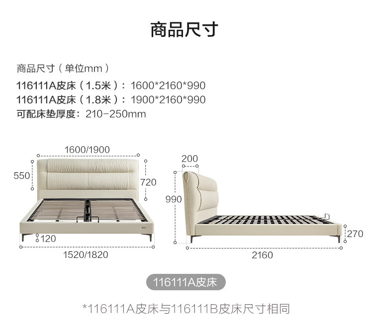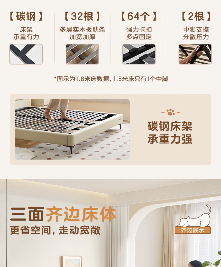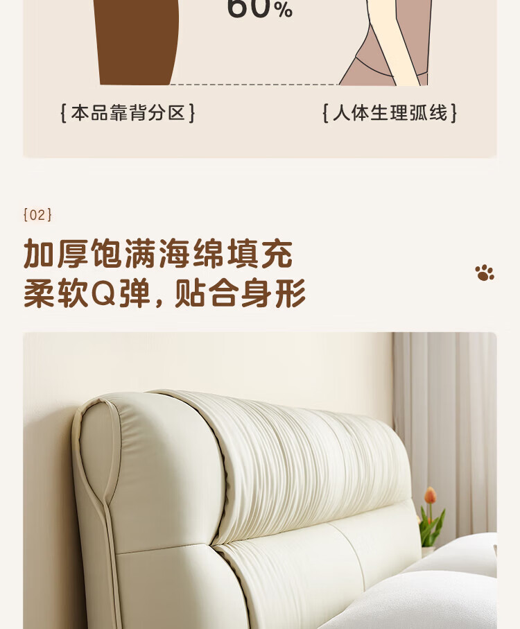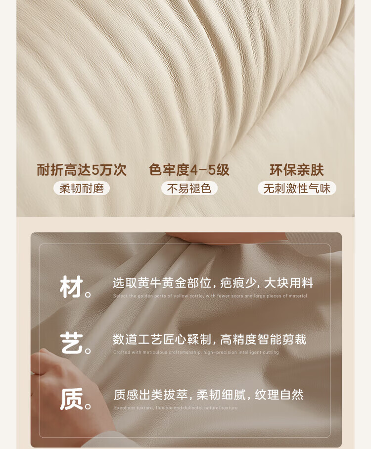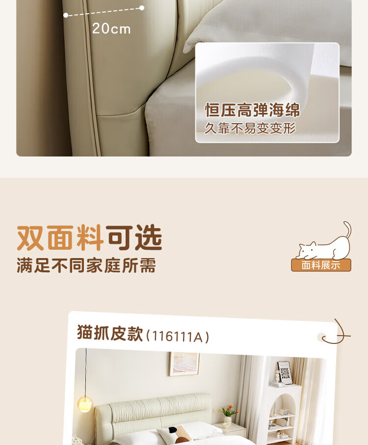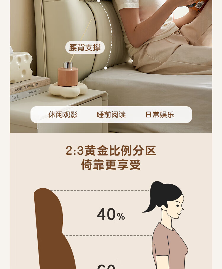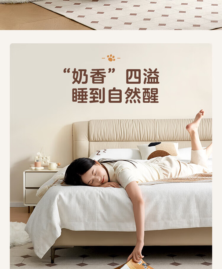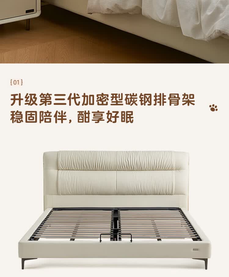 全友家居现代简约茉伊真皮床轻奢高级感2026年新款头层牛皮软包靠背床 【牛皮 | 米白 | 平移+上翻开合电动储物款】 1.8米x2米 床+床头柜*1