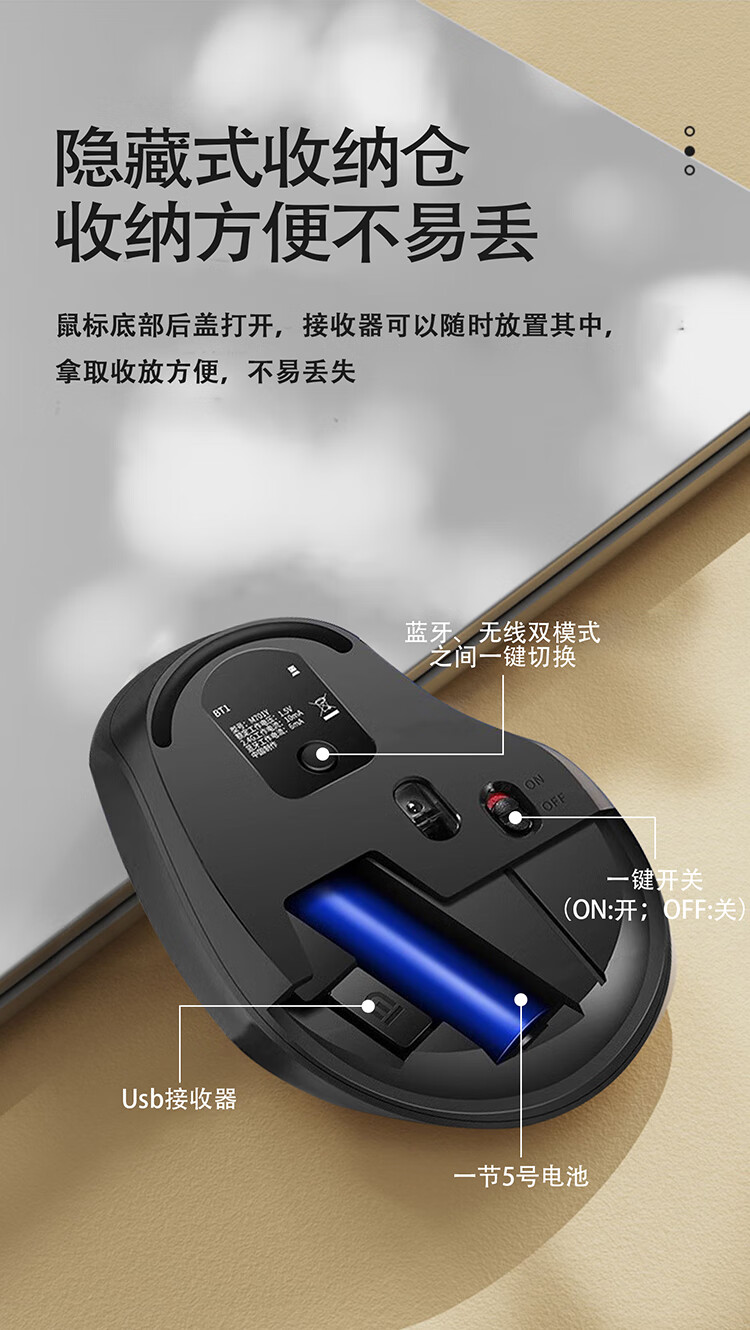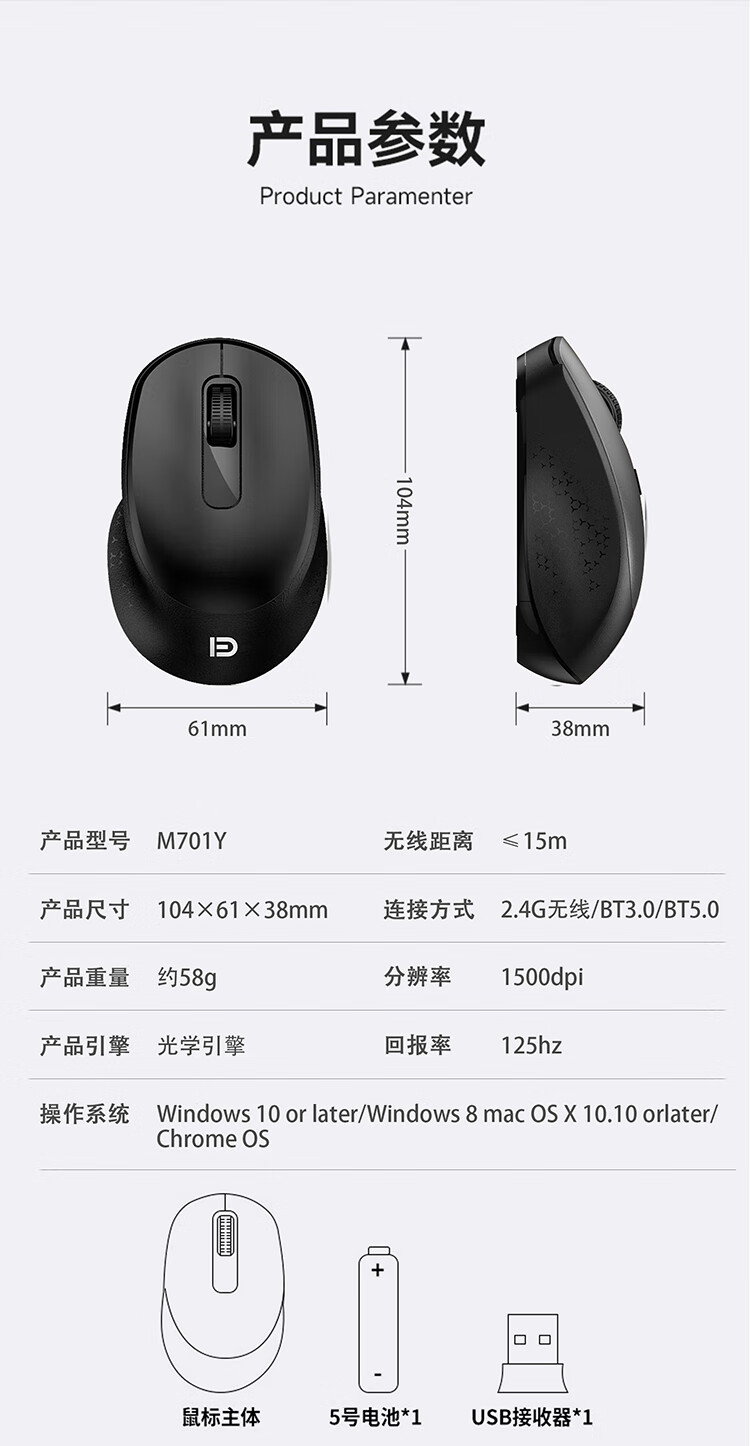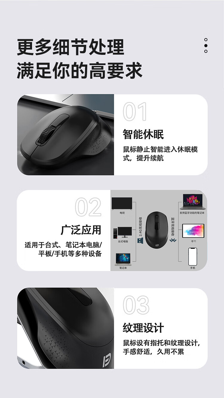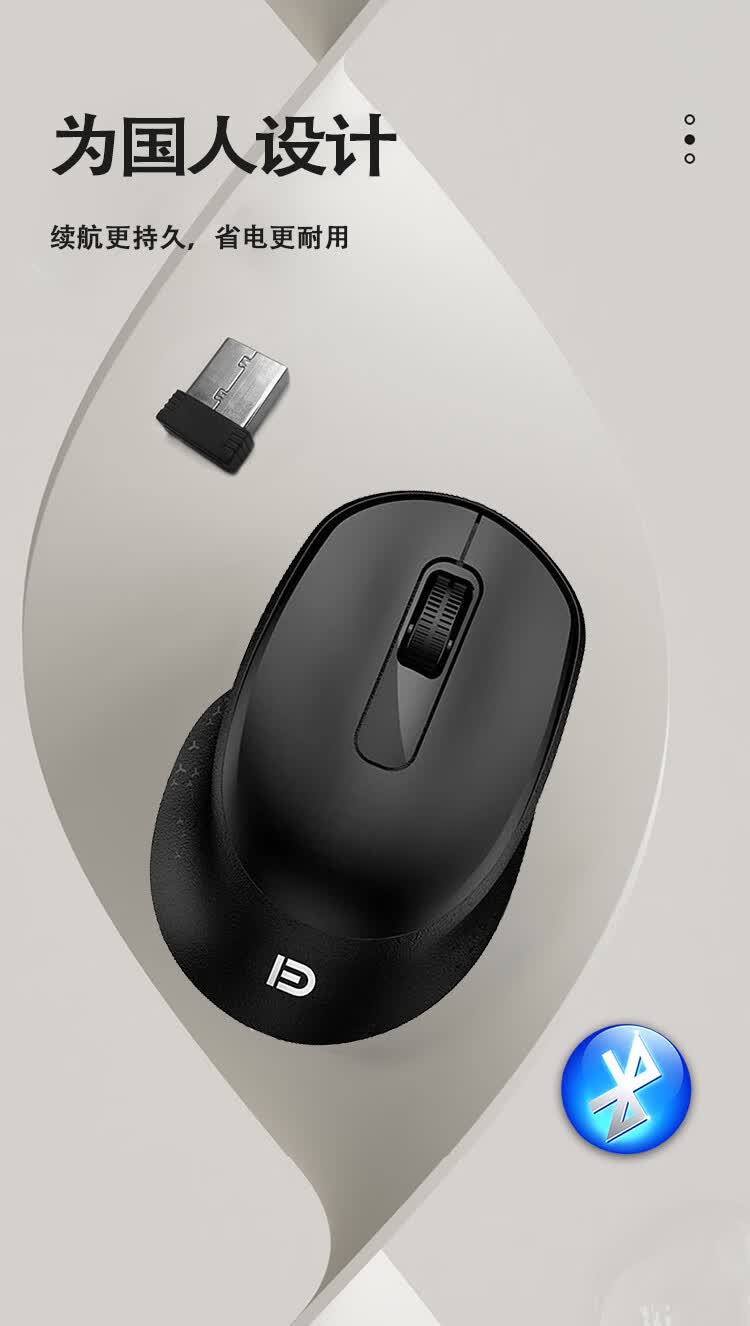 富德无线鼠标静音蓝牙便携接收器办公游戏笔记本台式电脑手机ipad平板舒适无线三模人体工学设计男士 磨砂白【蓝牙5.0+3.0+2.4G】手感好