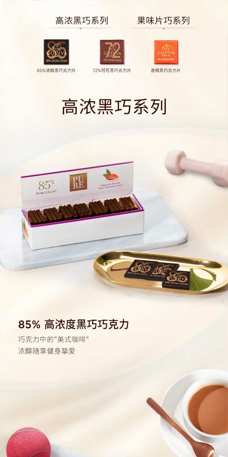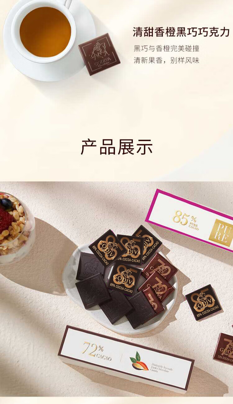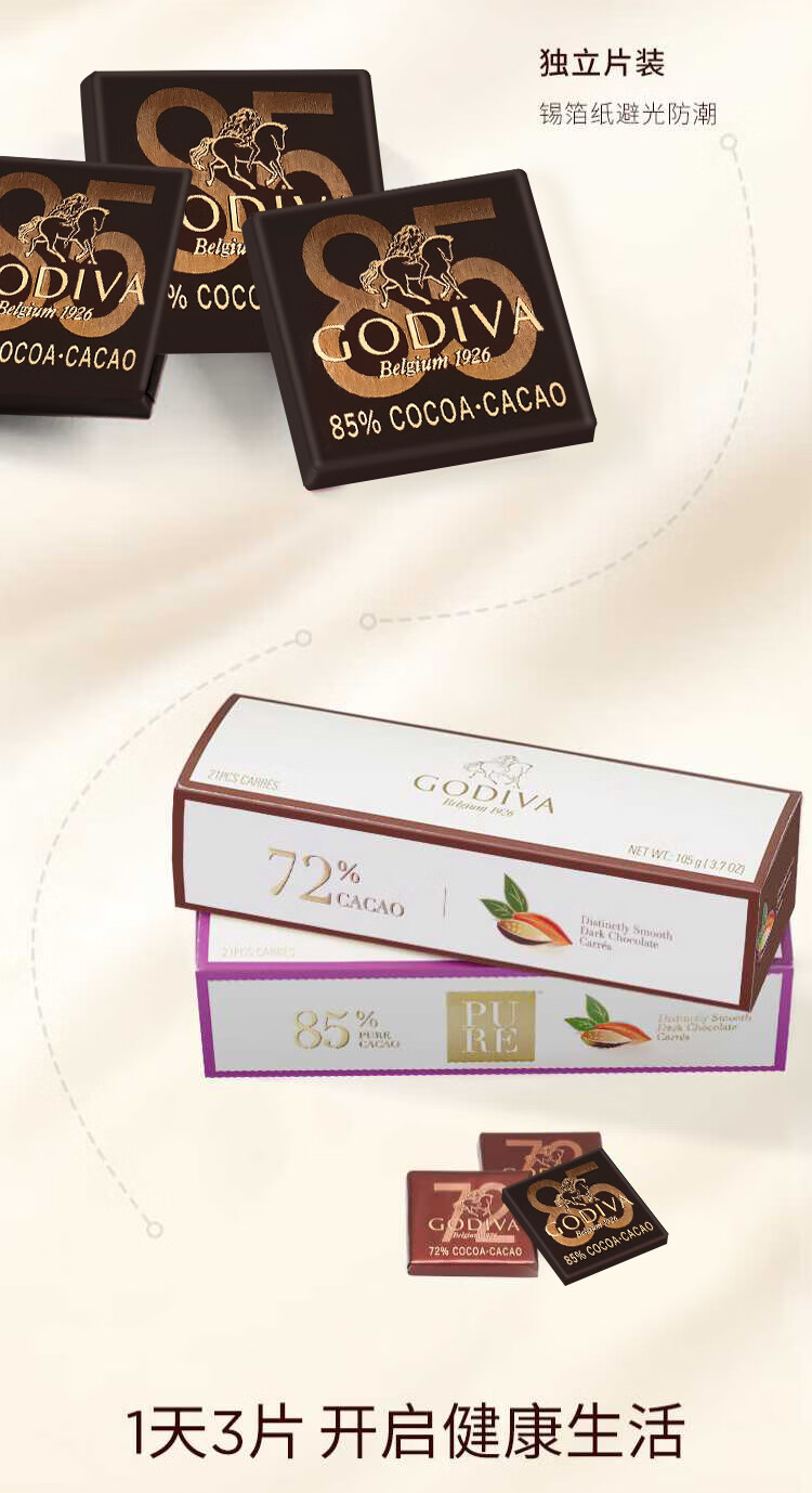 歌帝梵(Godiva)85%可可浓醇黑巧克力 21片100g 健康零食糖果 伴手礼 送女友