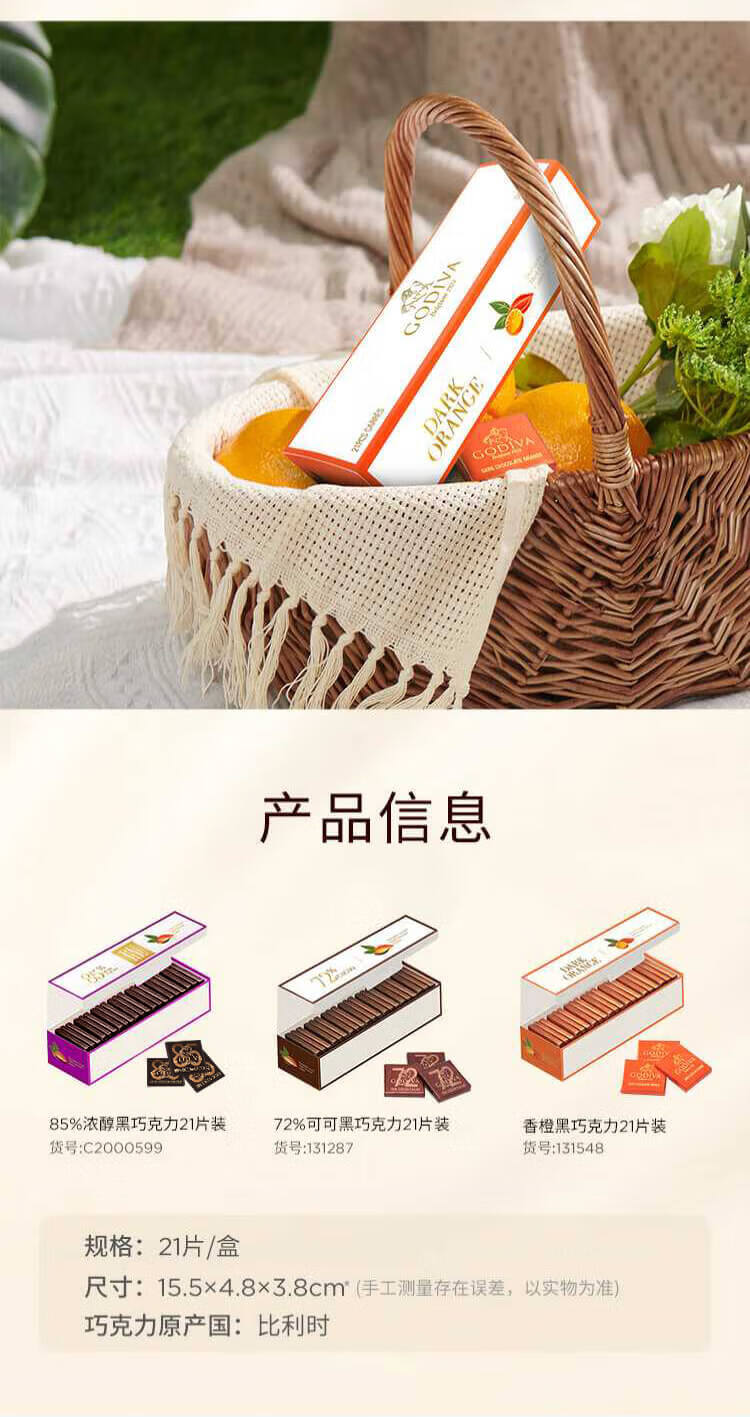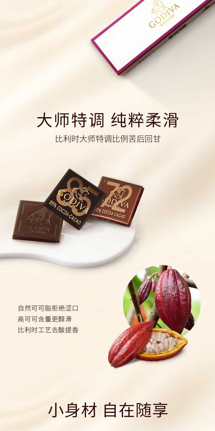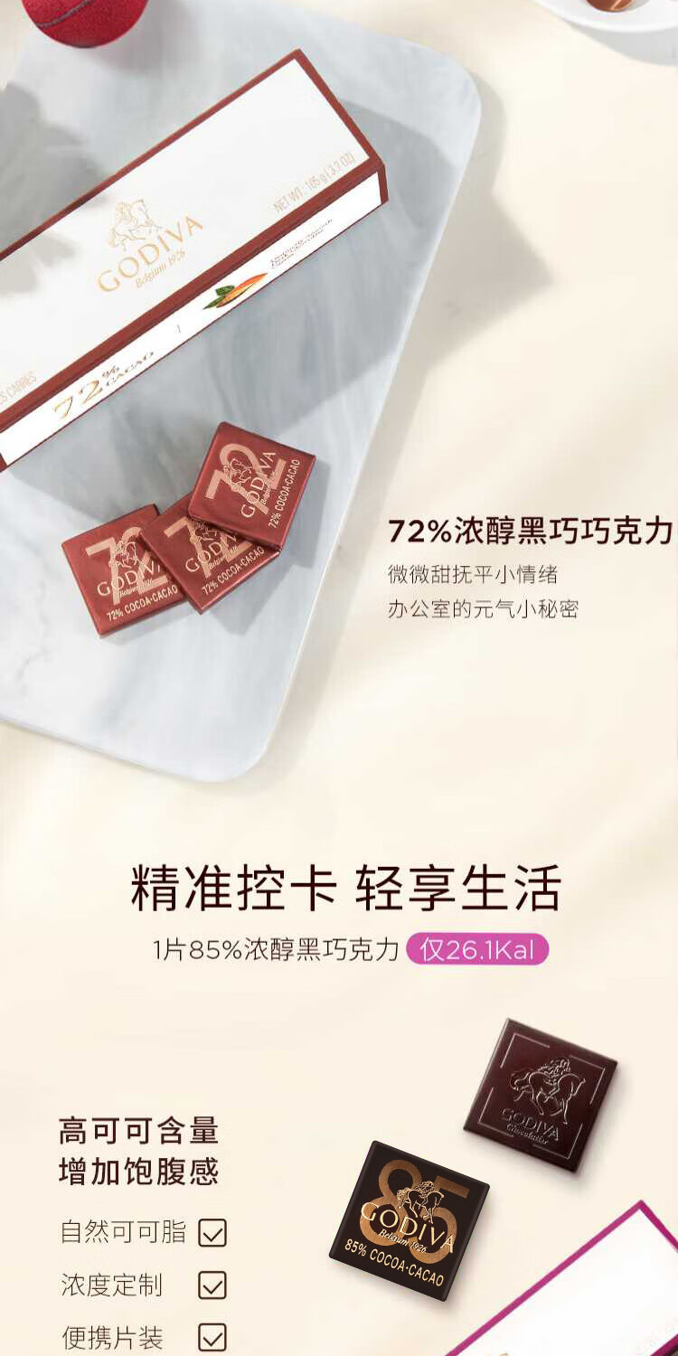歌帝梵(Godiva)85%可可浓醇黑巧克力 21片100g 健康零食糖果 伴手礼 送女友