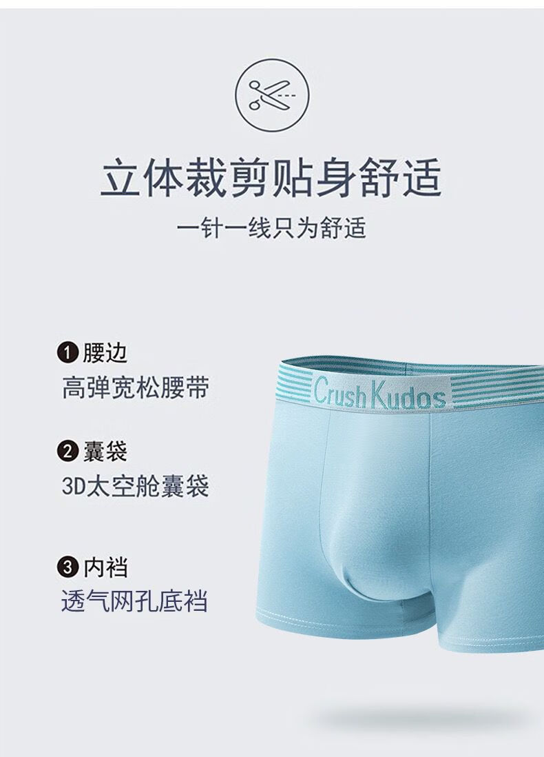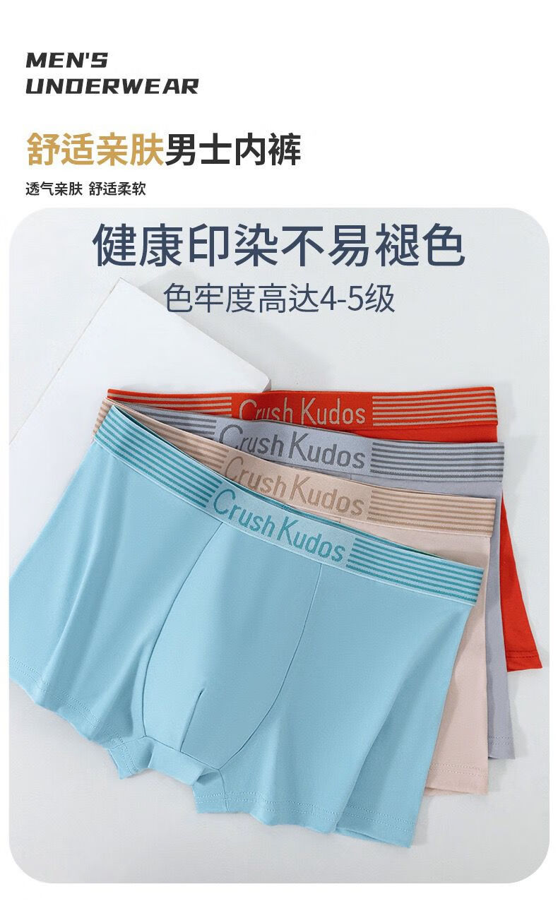 宜而爽男士内裤男平角裤舒适透气四角裤时尚潮流闲裤头男生短裤衩 4条袋装-橙红-红灰-灰兰-浅灰 4XL