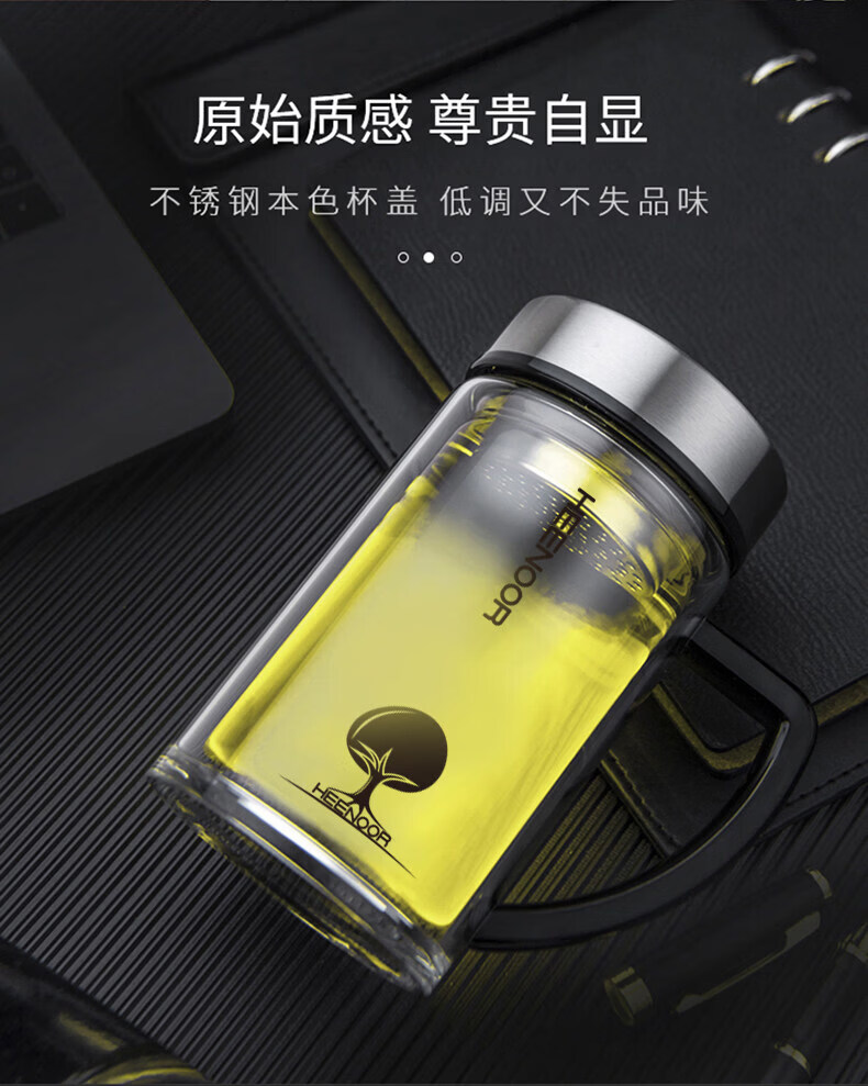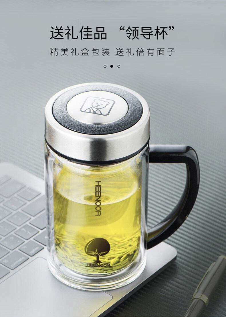 希诺(heenoor)双层玻璃杯带把模型公室商务泡茶杯手柄水杯可携式玻璃杯子 XN-6721 无色透明 435ML