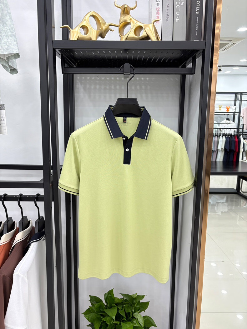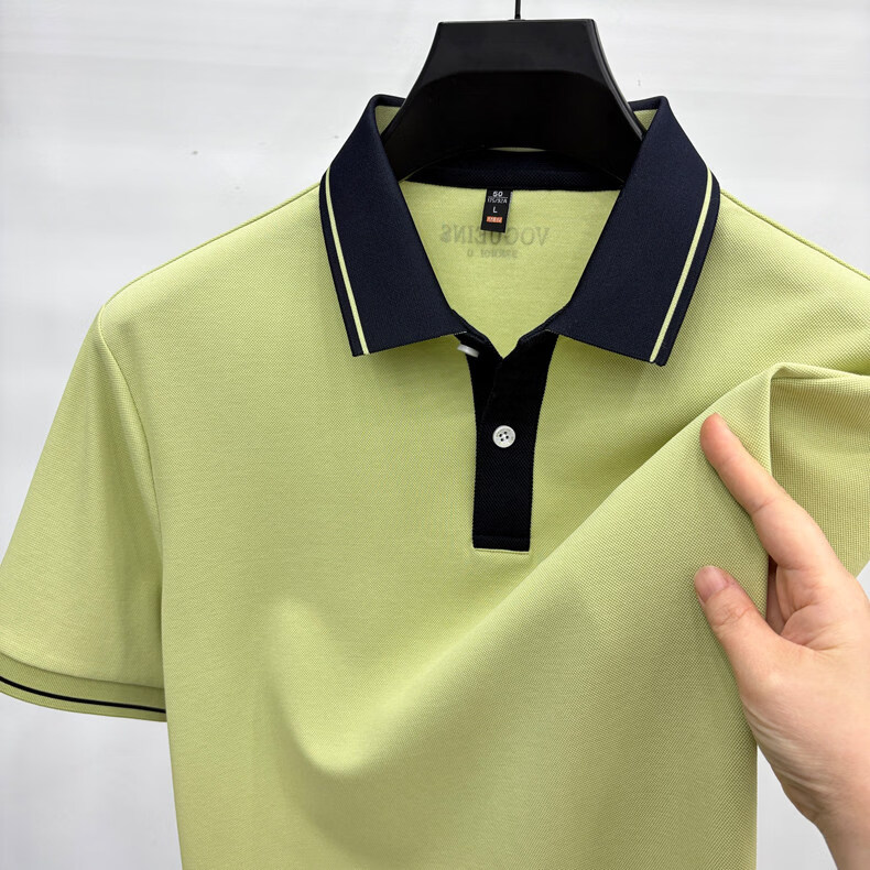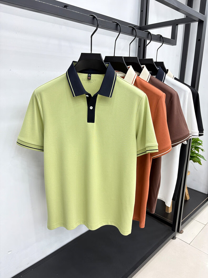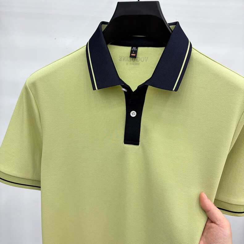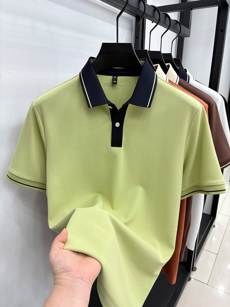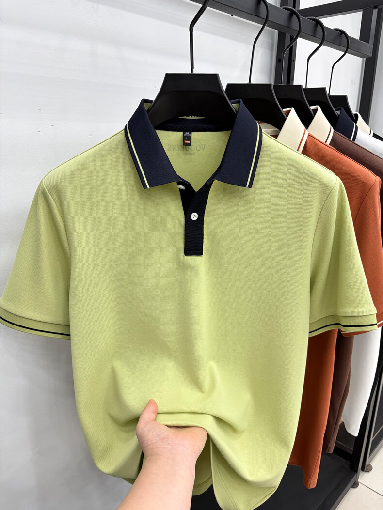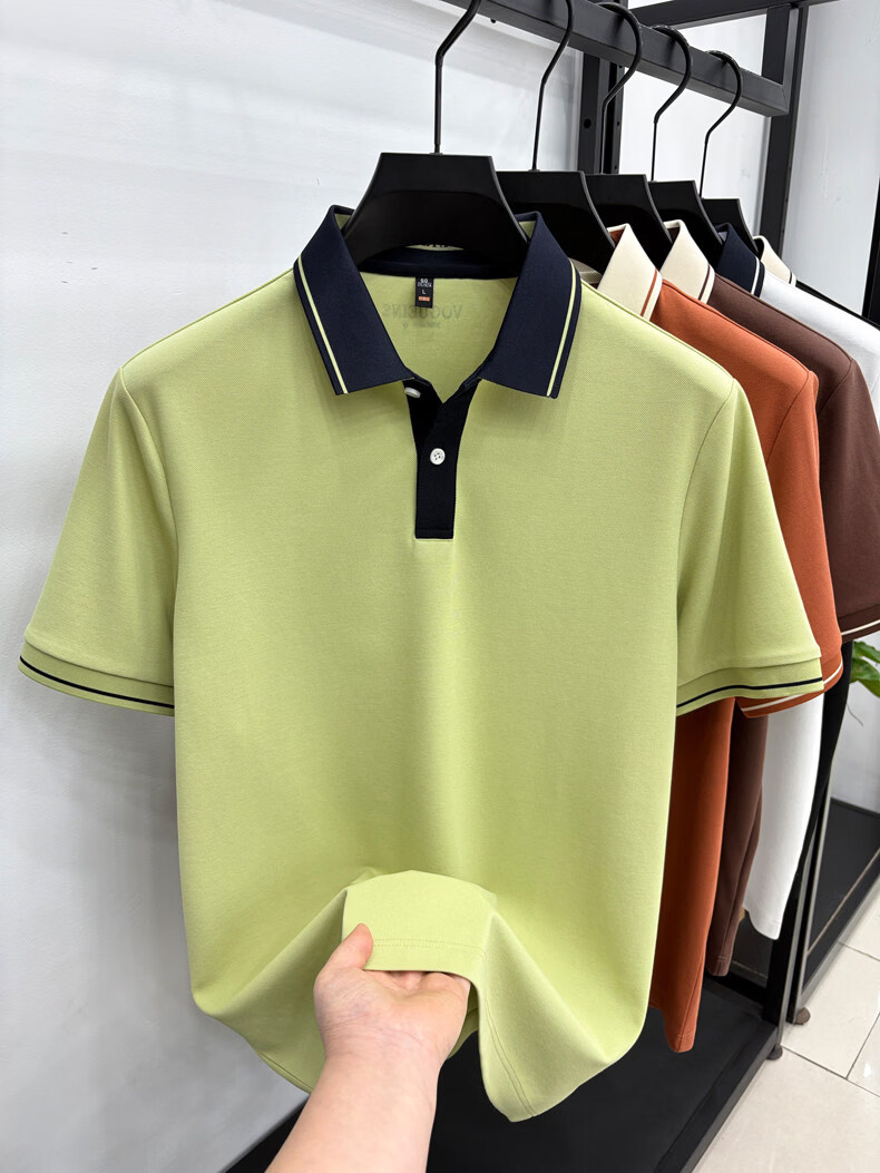 九牧王(JOEONE)短袖翻领POLO衫男夏季薄款透气商务休闲宽松打底衫爸爸T恤 绿色 L 175适合140-155斤