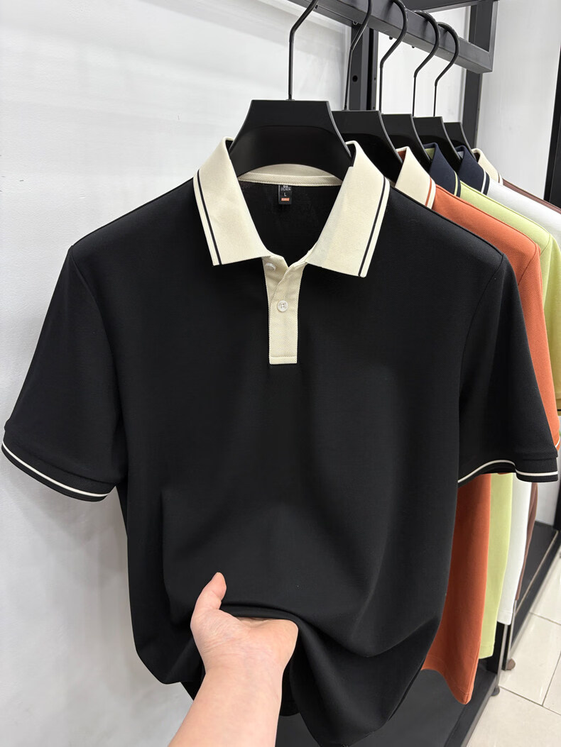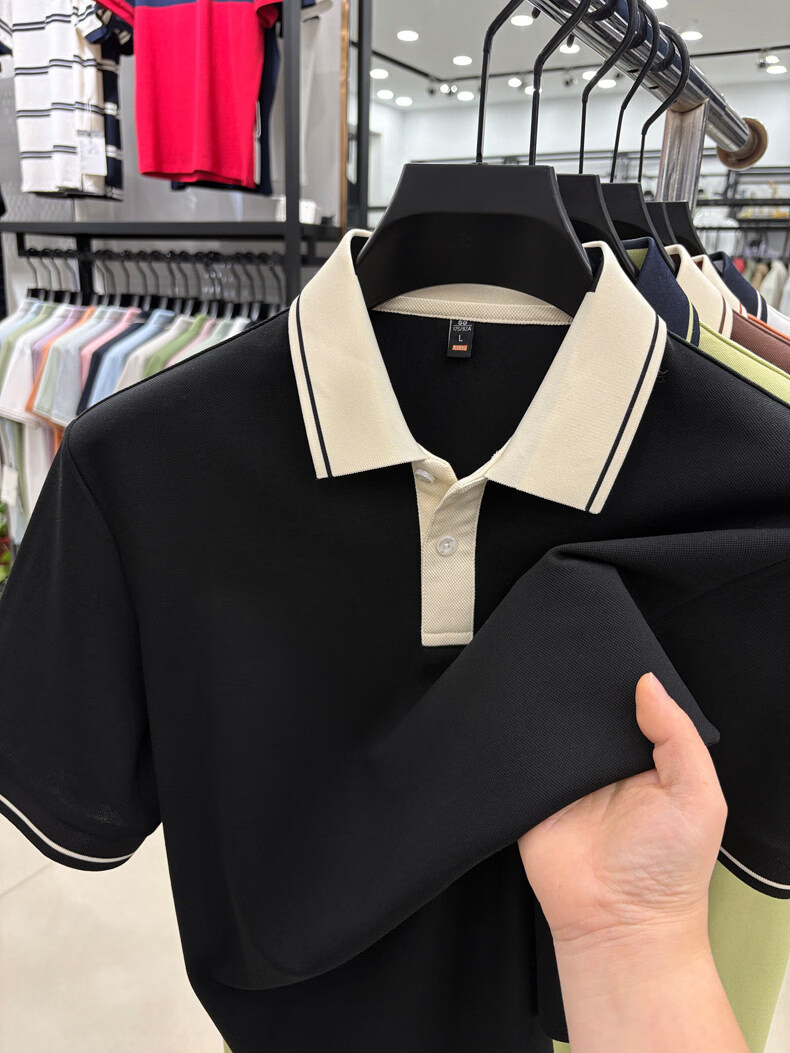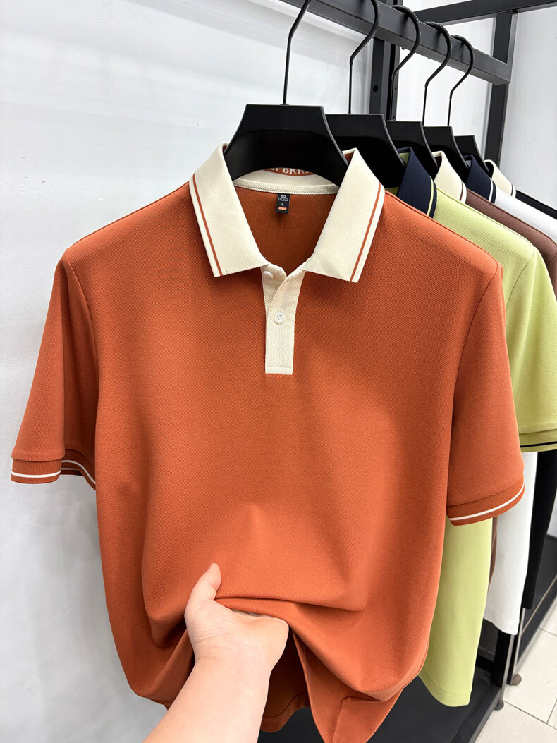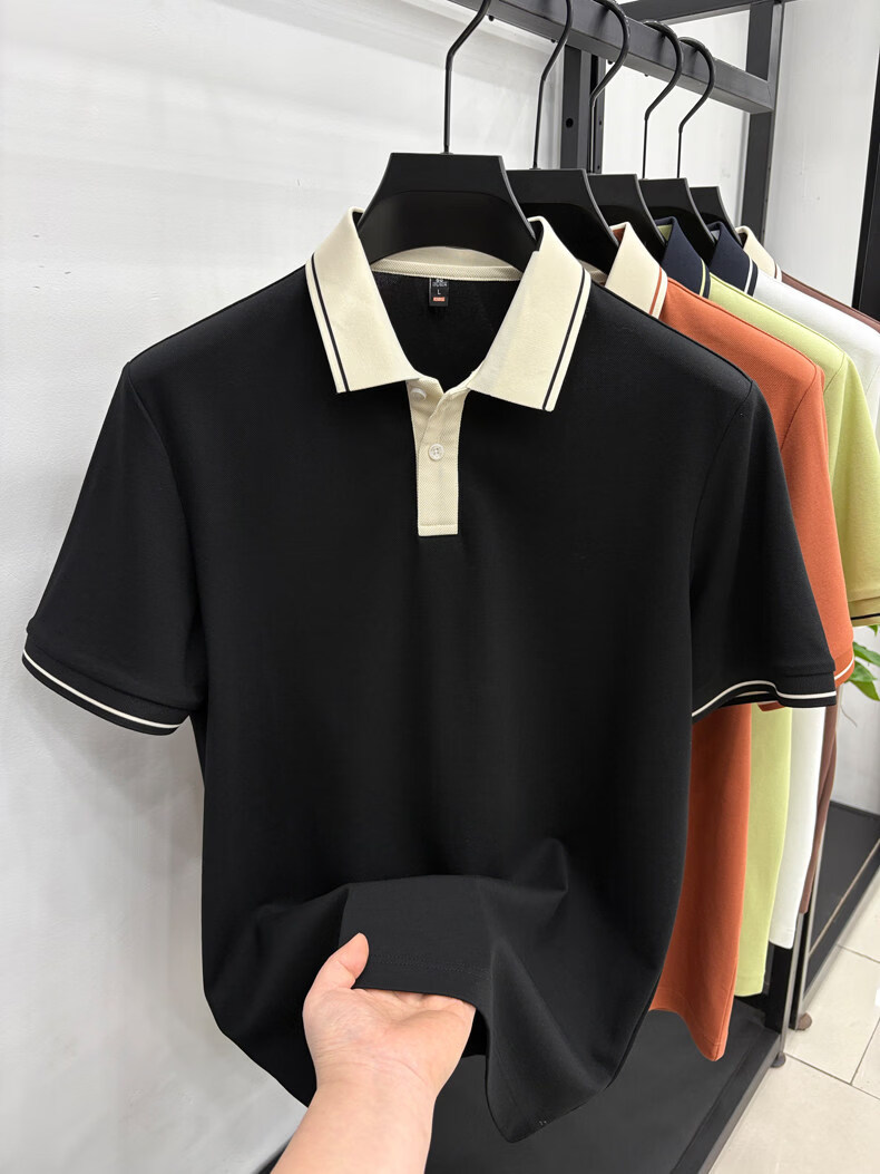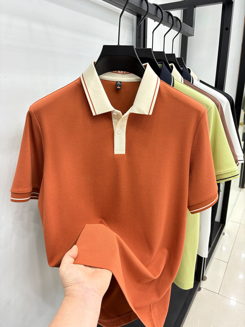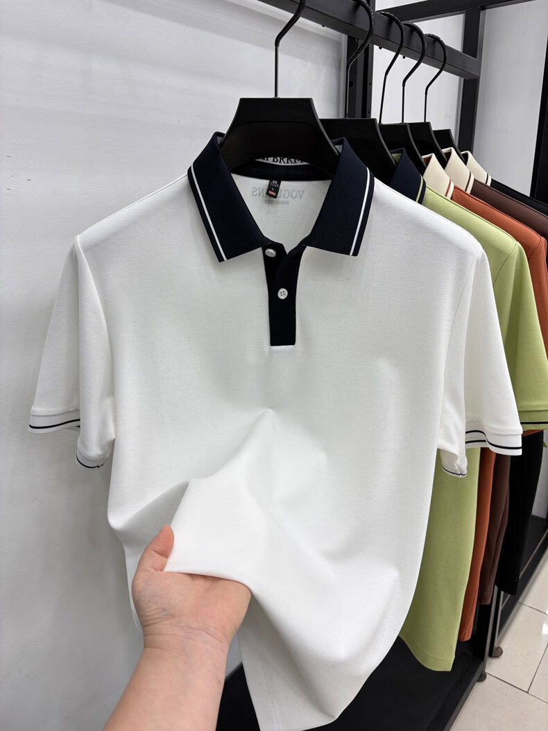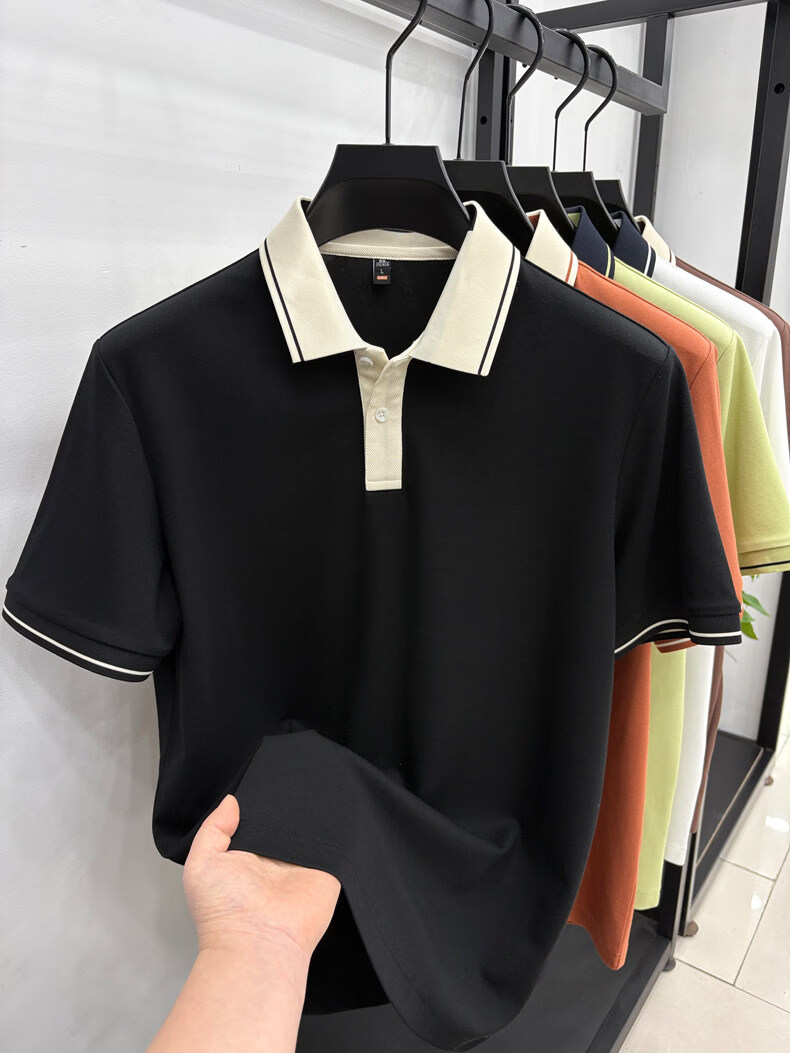 九牧王(JOEONE)短袖翻领POLO衫男夏季薄款透气商务休闲宽松打底衫爸爸T恤 绿色 L 175适合140-155斤