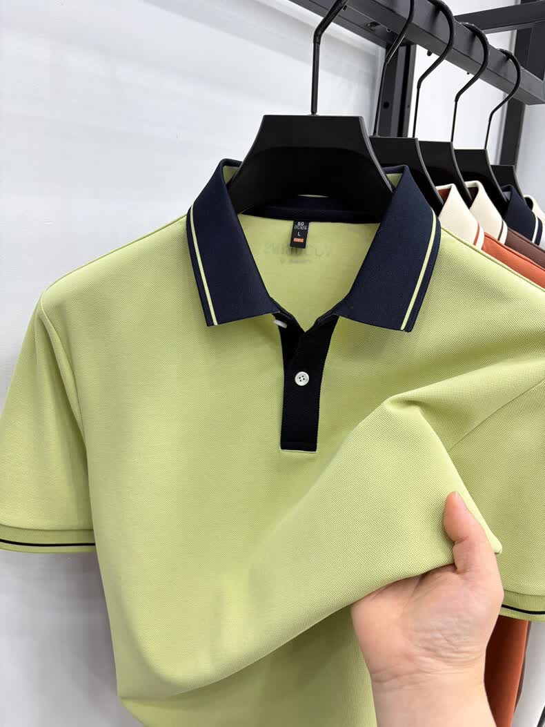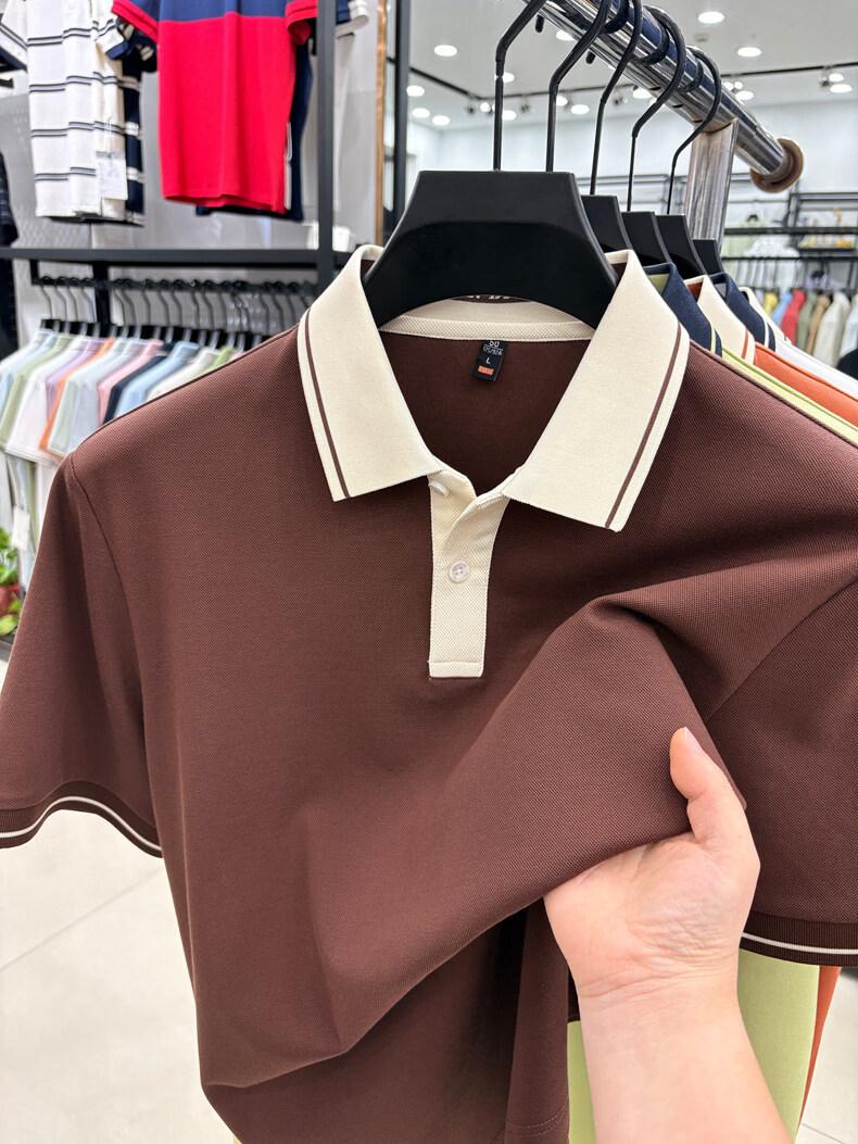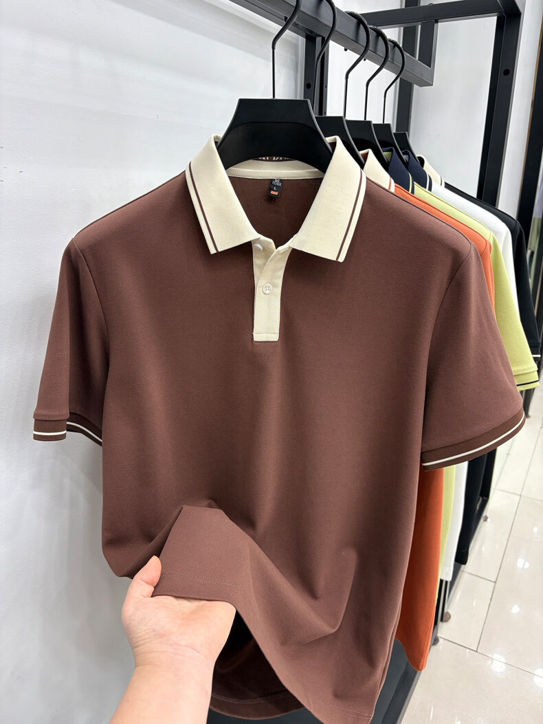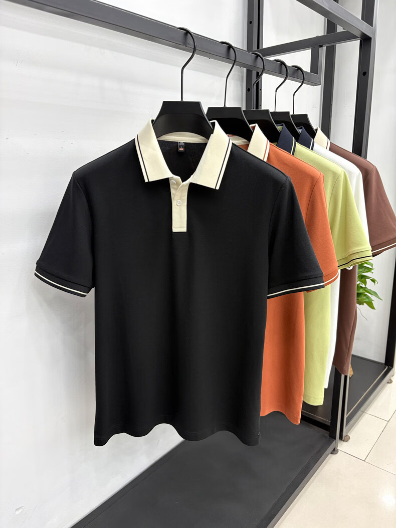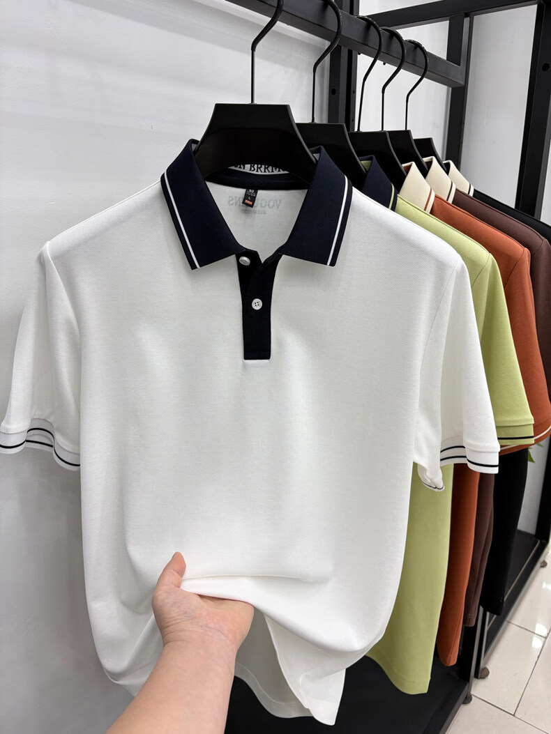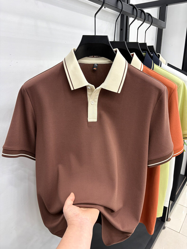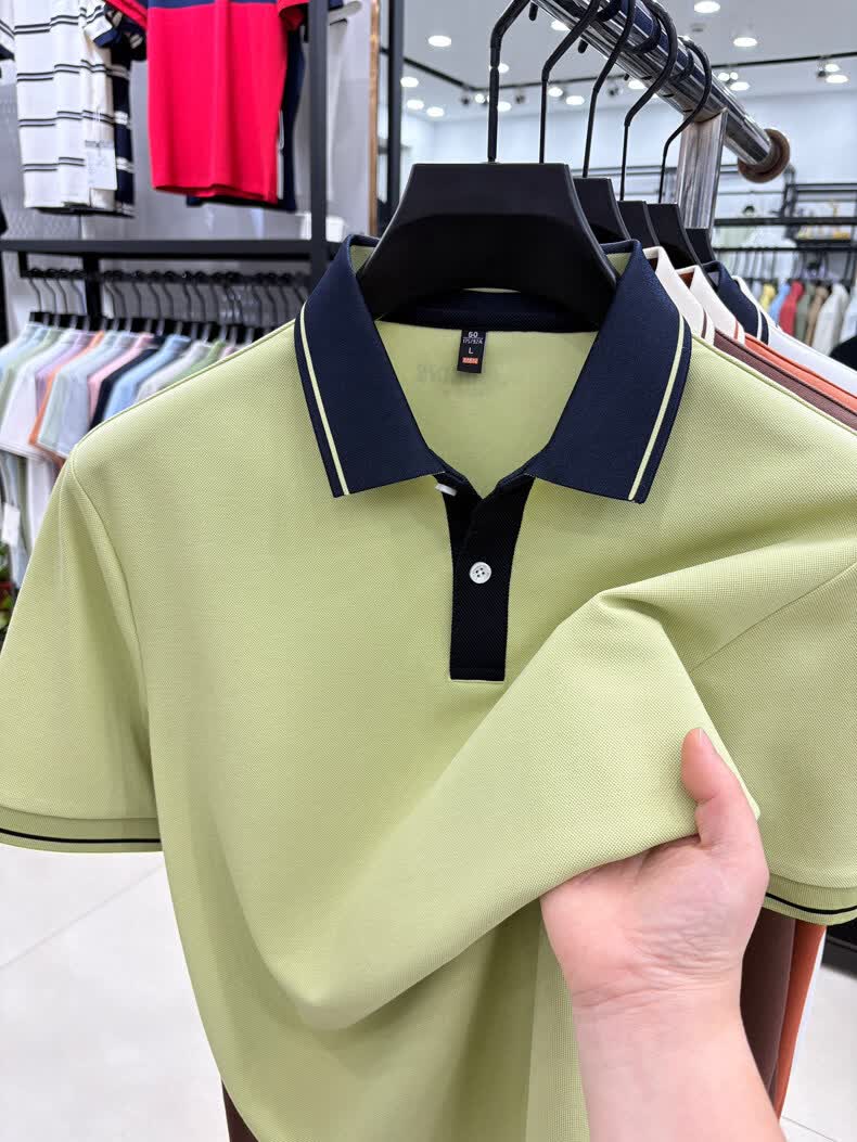 九牧王(JOEONE)短袖翻领POLO衫男夏季薄款透气商务休闲宽松打底衫爸爸T恤 绿色 L 175适合140-155斤