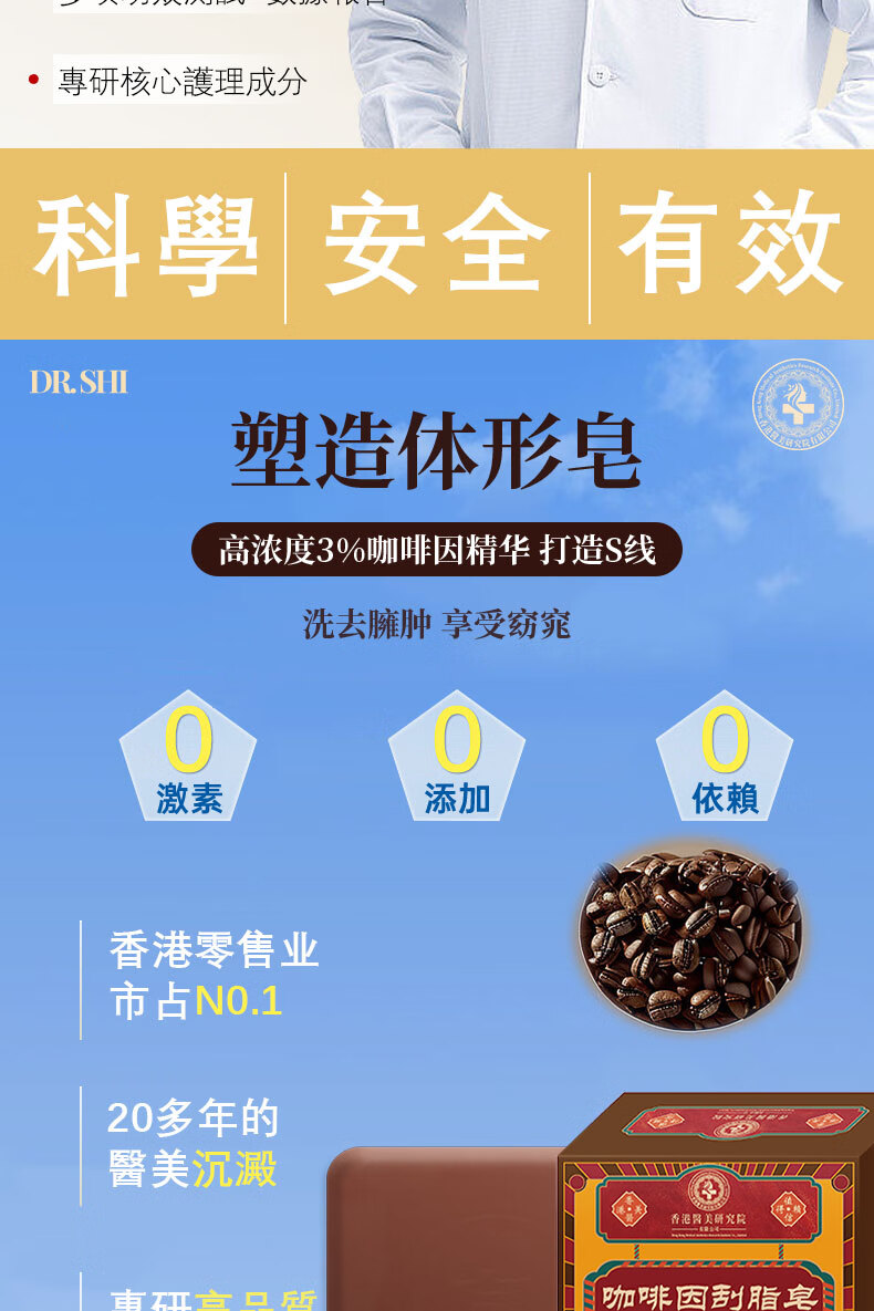 示博士【瘦身皂爆款】香港医美研究院咖啡因刮脂皂纤体轻身皂一洗刮脂 5盒装【明显显瘦】店长主推